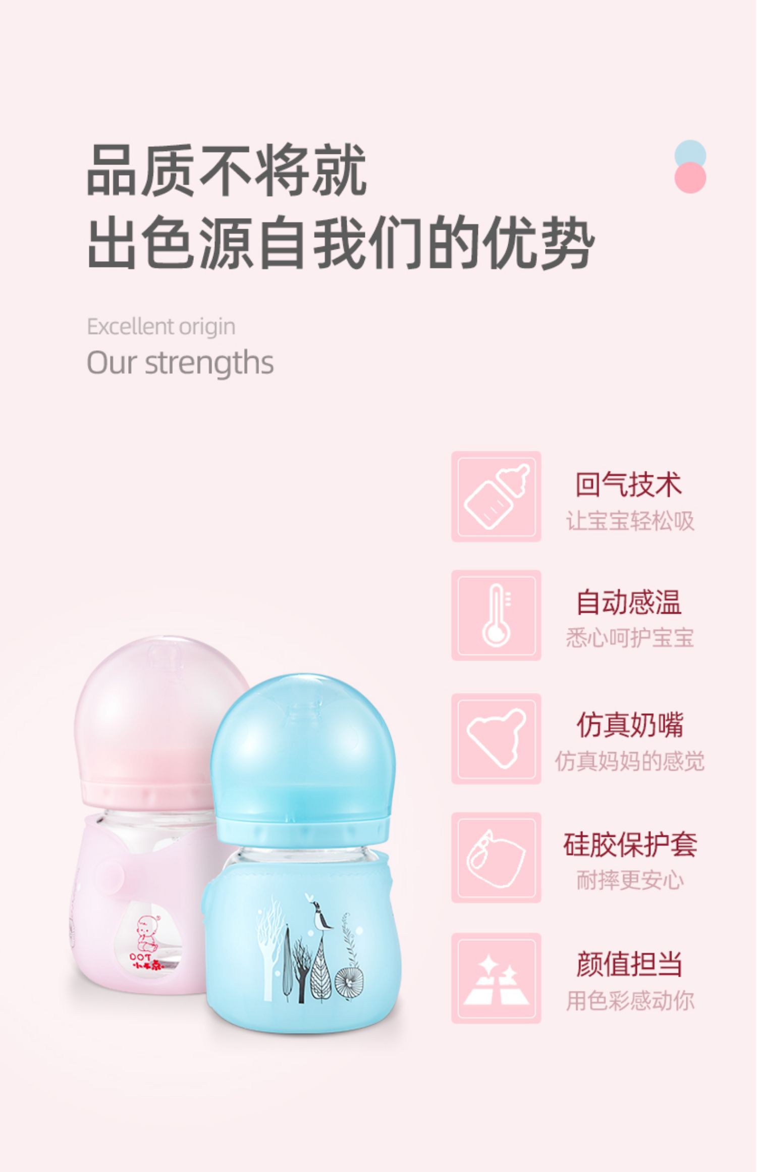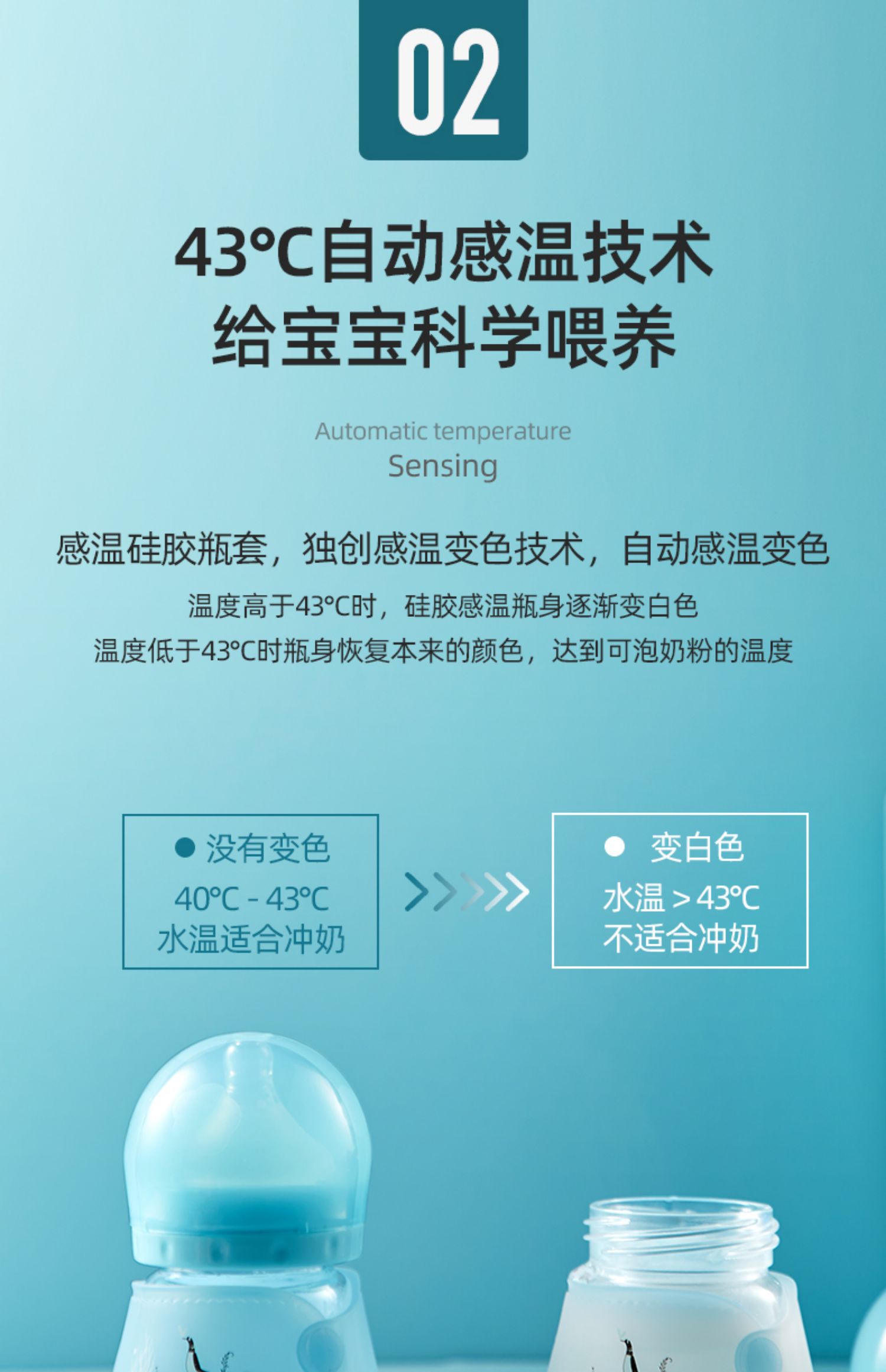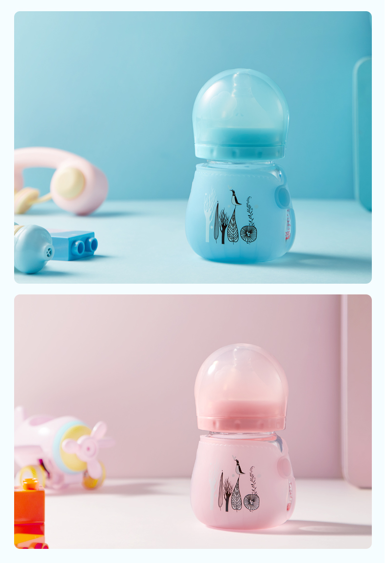 【送原装奶嘴+清洗三件套】10年母婴品牌,自动感温奶瓶,水温高于43℃奶瓶逐渐变白,中硼硅玻璃,快速传到奶水温度,实感母乳设计,让宝宝爱不释手口!