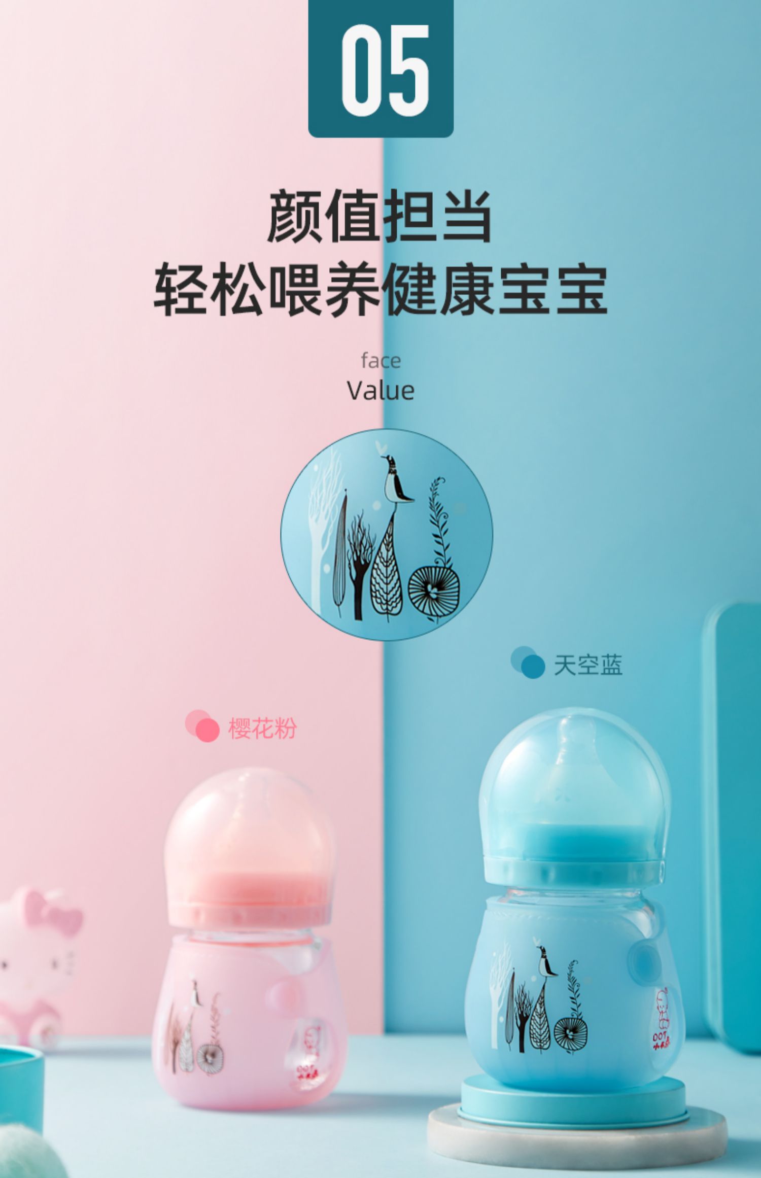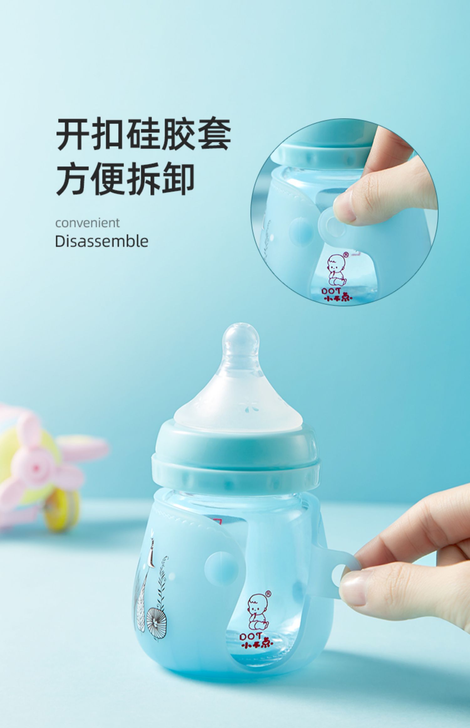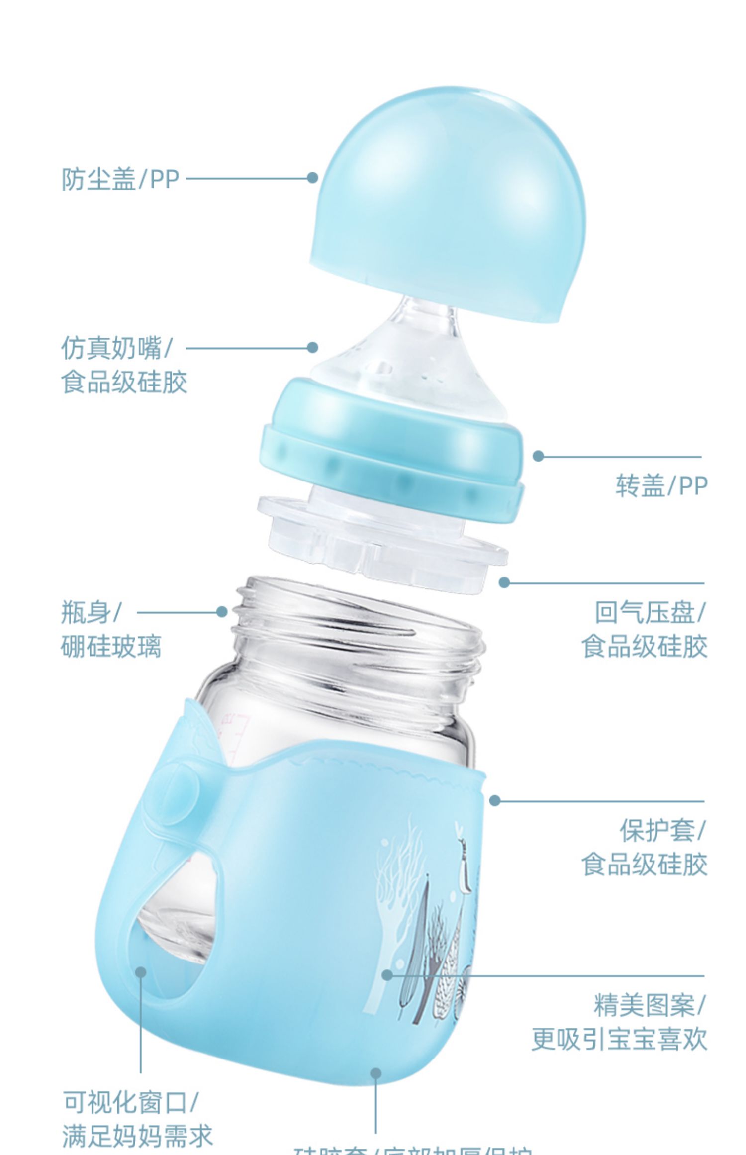 【送原装奶嘴+清洗三件套】10年母婴品牌,自动感温奶瓶,水温高于43℃奶瓶逐渐变白,中硼硅玻璃,快速传到奶水温度,实感母乳设计,让宝宝爱不释手口!
