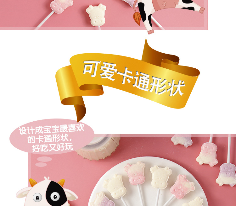 醇浓奶香的小秘密,设计成宝宝最喜欢的卡通形状,食品级纸浆制作而成的纸棒不伤宝贝的小嘴,儿时回忆,经典口味,好吃又好玩