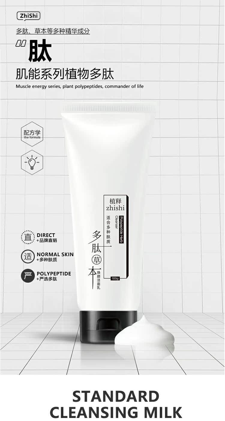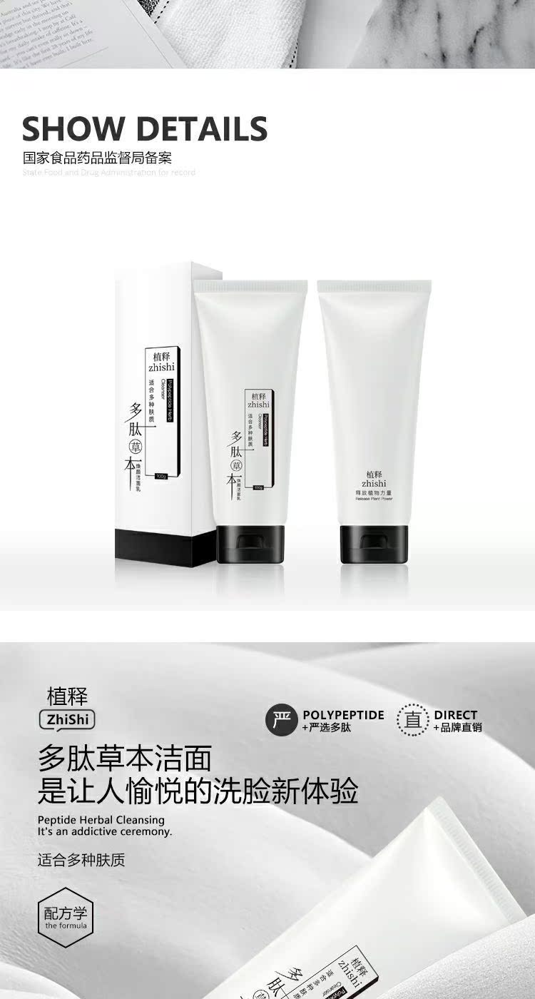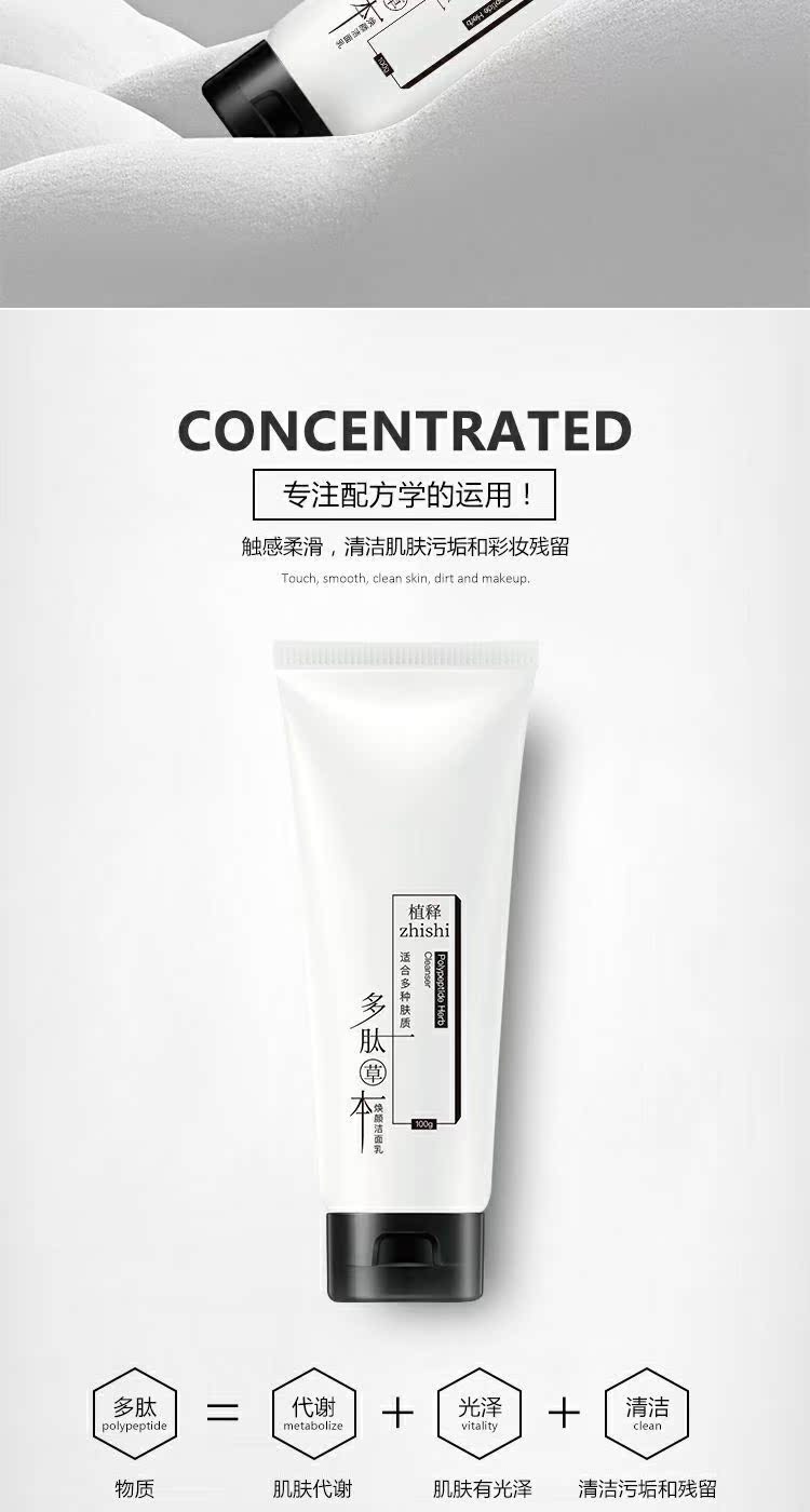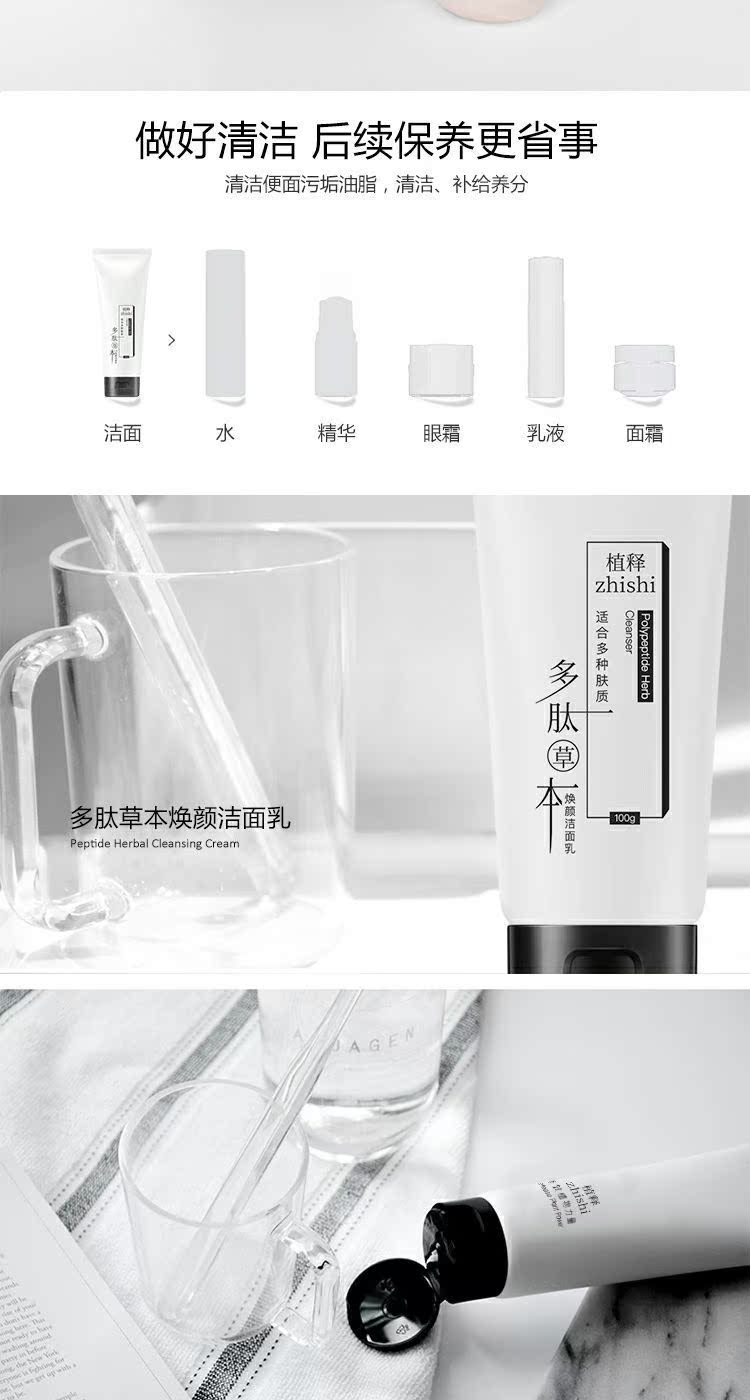 添加多肽草本植物精华,清肌净颜,深层清洁,加倍补水提亮肤色,长效保湿,纯净滋养,让你绽放透亮美肌