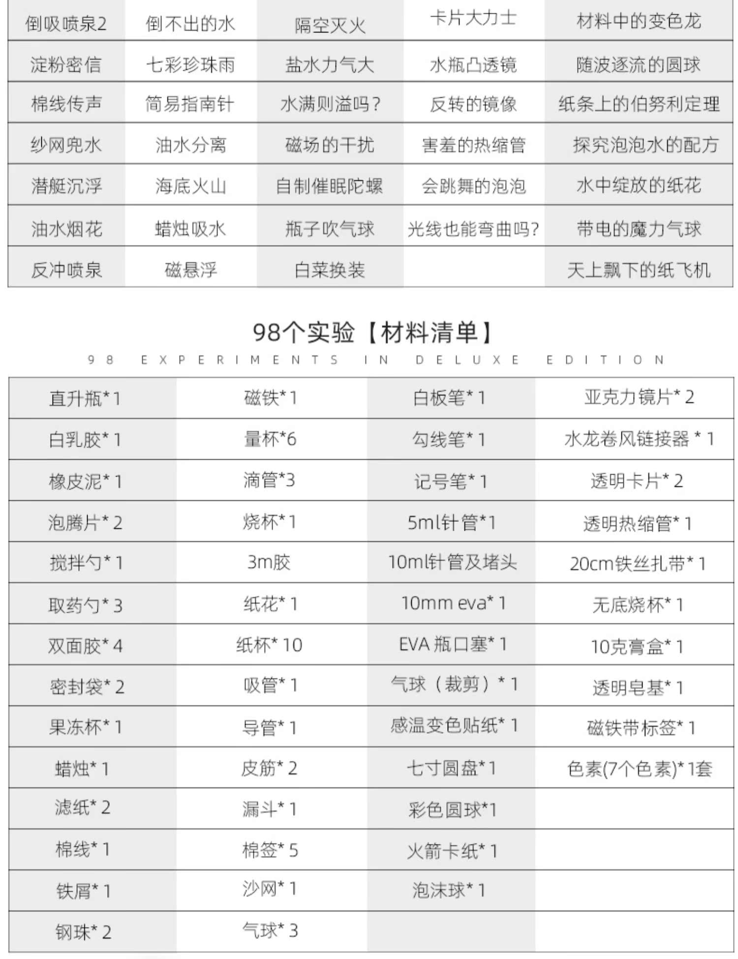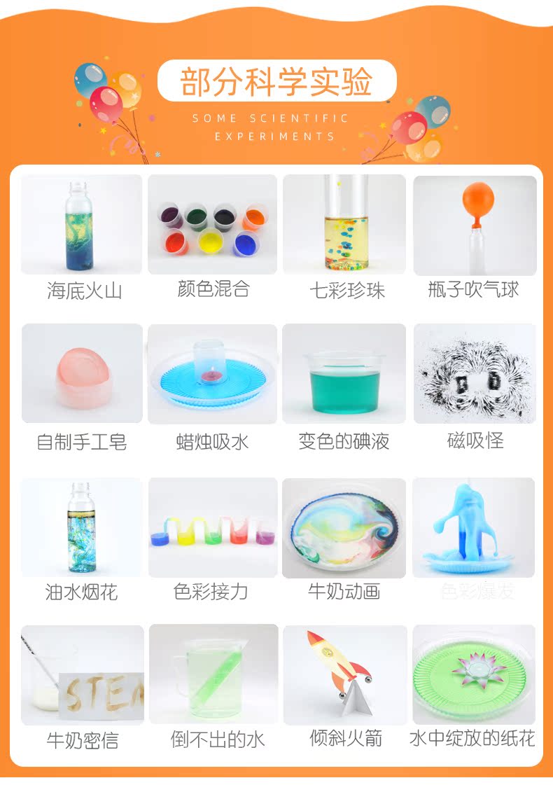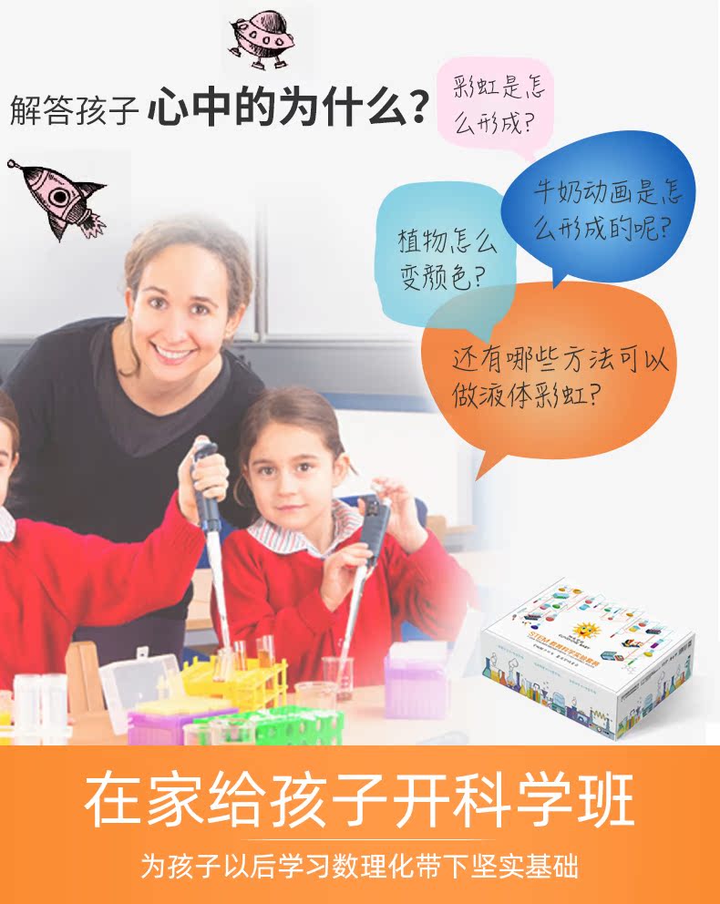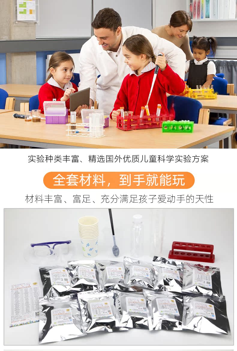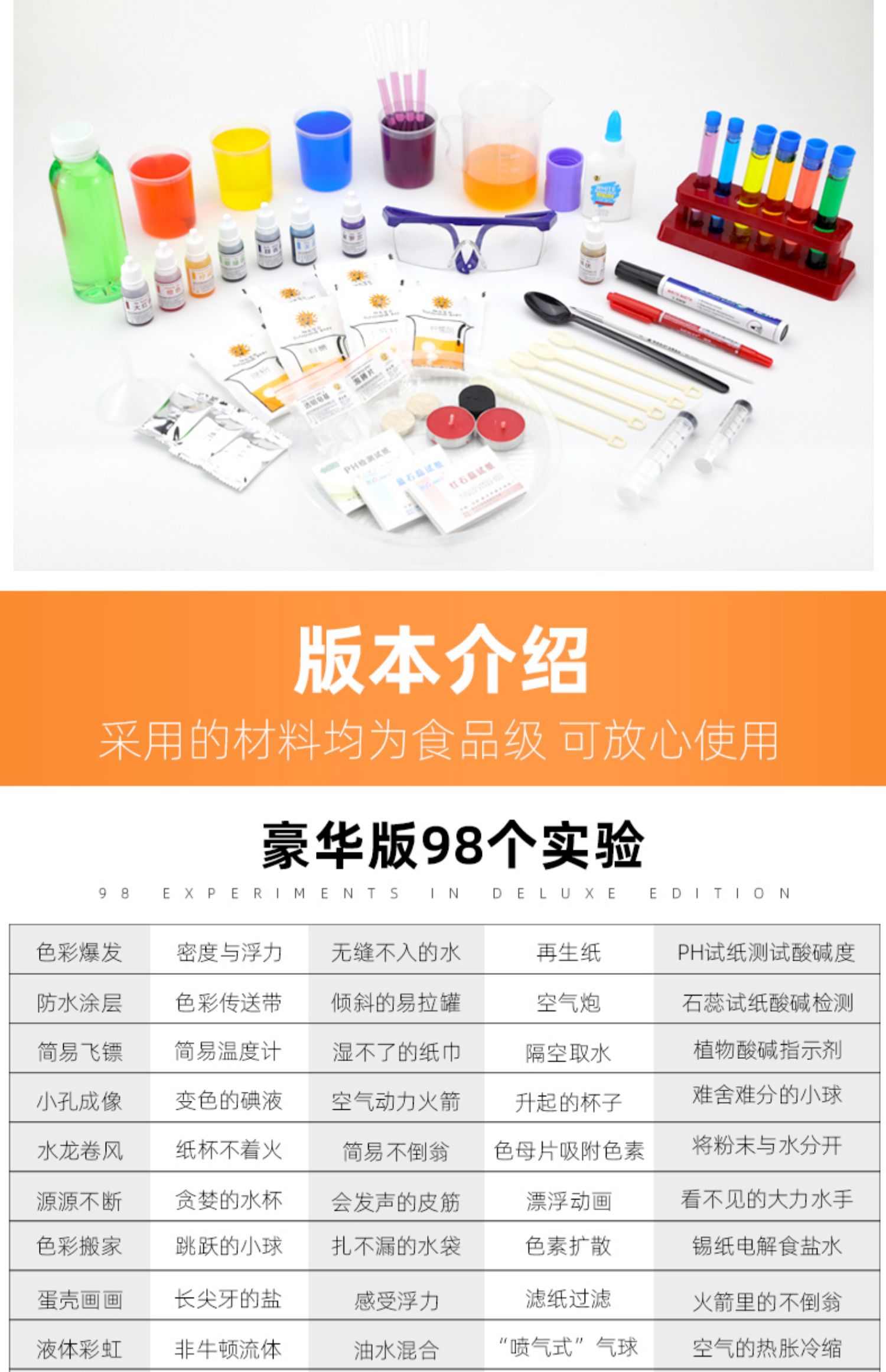 阳光宝贝~根据【小学科学新课标】设计,儿童科学实验套装,油水烟花、牛奶动画,色彩爆发,色彩接力,瓶子吹气,98种化学实验~激发孩子的兴趣爱好,引导孩子爱上科学,为物理/化学打基础~