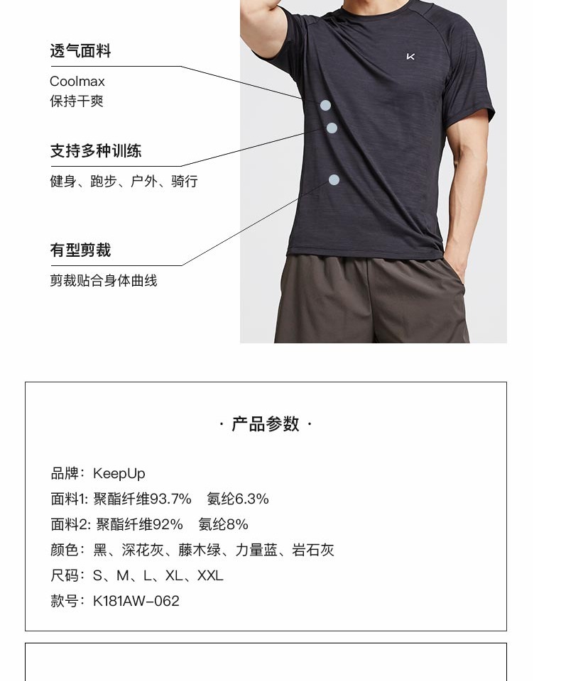 【Keep旗舰店】男子Coolmax速干短袖,透气面料,支持多种训练,立体剪裁,经典设计,让一切随我律动