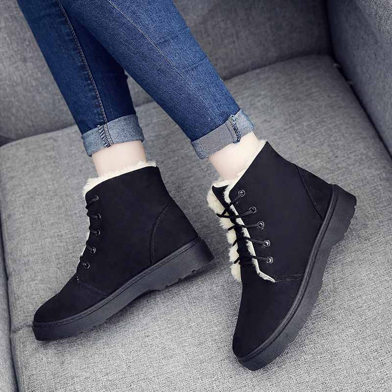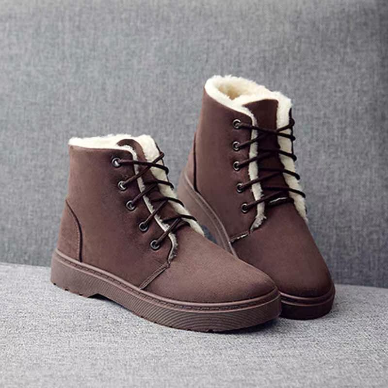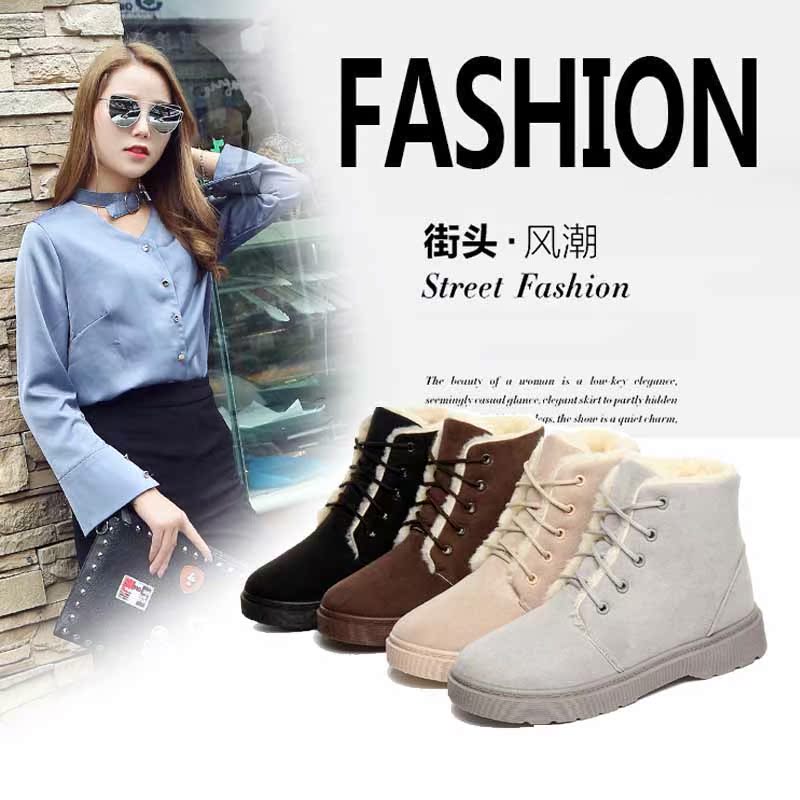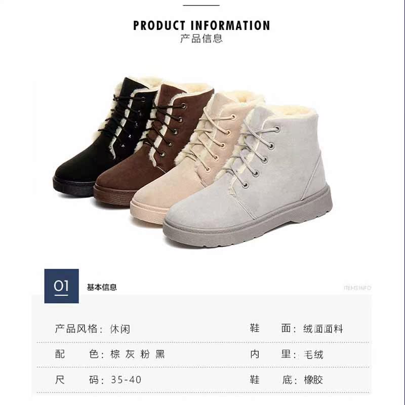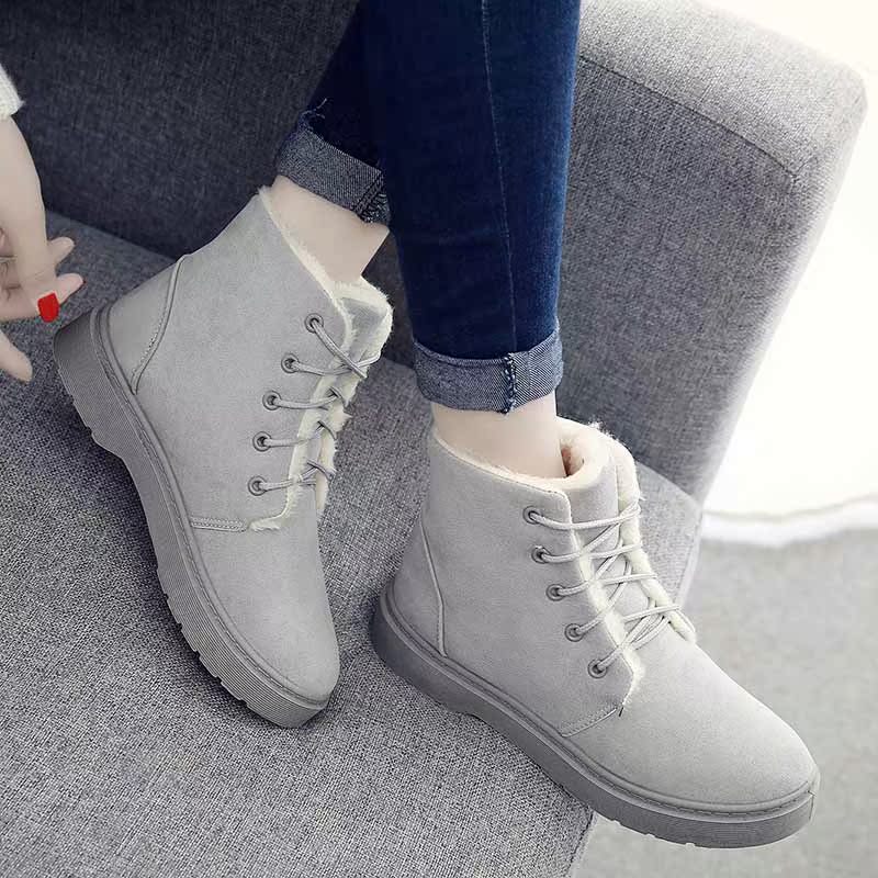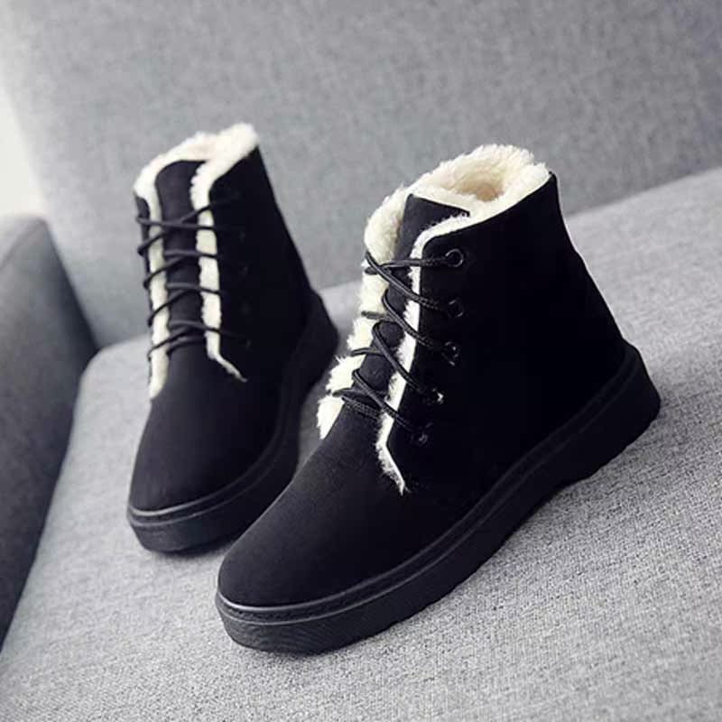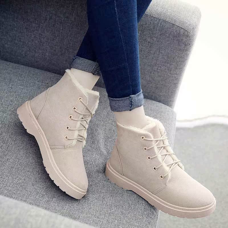 雪地靴女加绒系带平底学院风百搭显瘦靴子