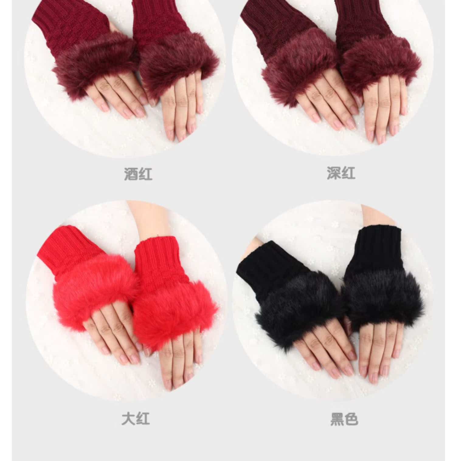 短款仿兔毛毛绒手套,优质面料,露指设计,手感舒适柔软,暖暖回呼吸的手套。