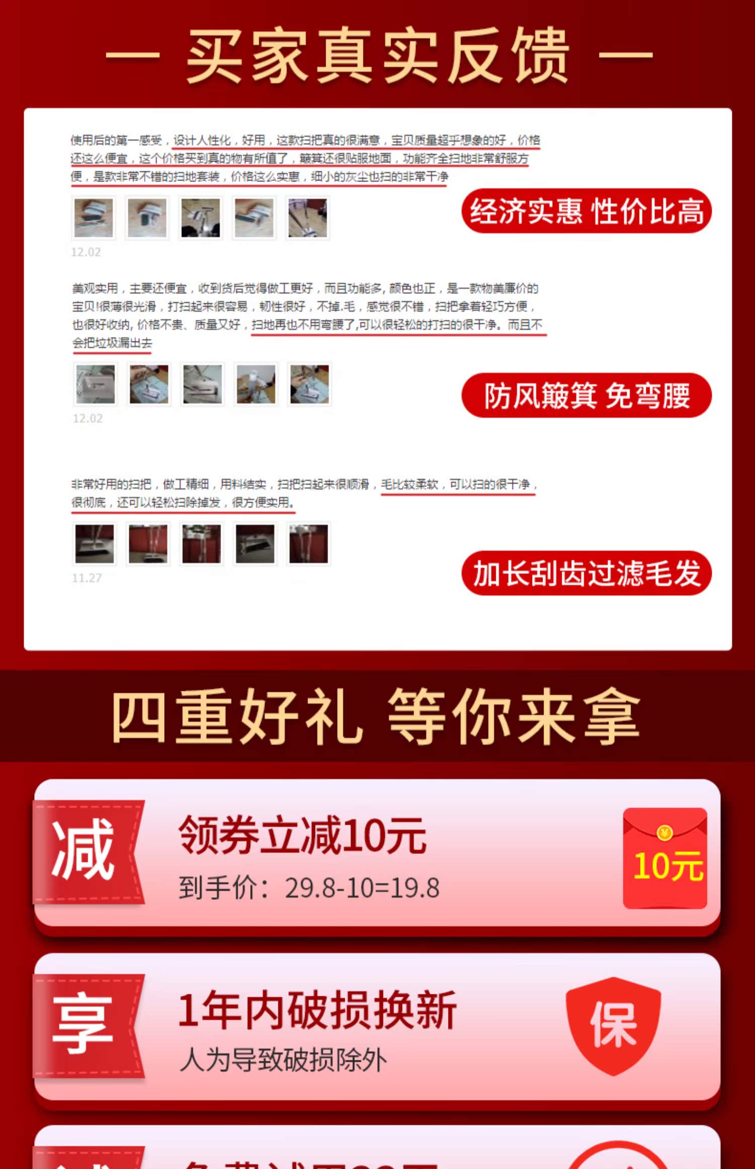 比超市便宜多了!汉世刘家扫把簸箕套装,一扫即净的扫把,加上无缝贴合地面的簸箕!扫地又快又干净,好用不贵,居家必囤!【破损包退】