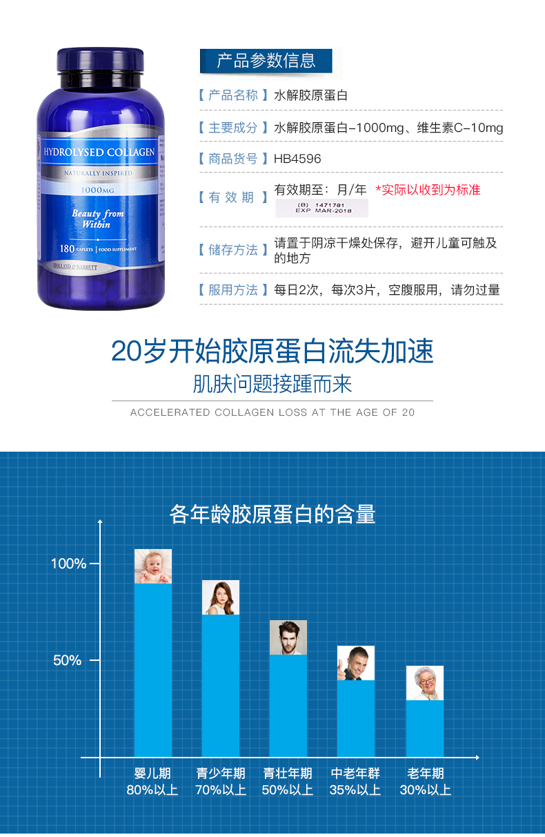 英国HB荷柏瑞水解胶原蛋白营养片180片,刷新颜值,缔造婴儿般肌肤,水解胶原蛋白,英国皇室选择,券后惊爆价只要73.2元哦~