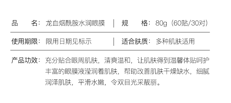 【买一送一,共120片!】龙血烟酰胺水润眼膜贴,淡化黑眼圈,改善眼袋,贴走细纹,修复眼周受损肌肤,抗氧化,超温和0刺激,补水保湿,拯救眼肌肤有一套它就够了