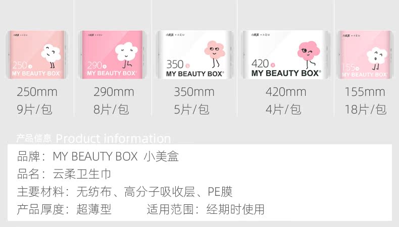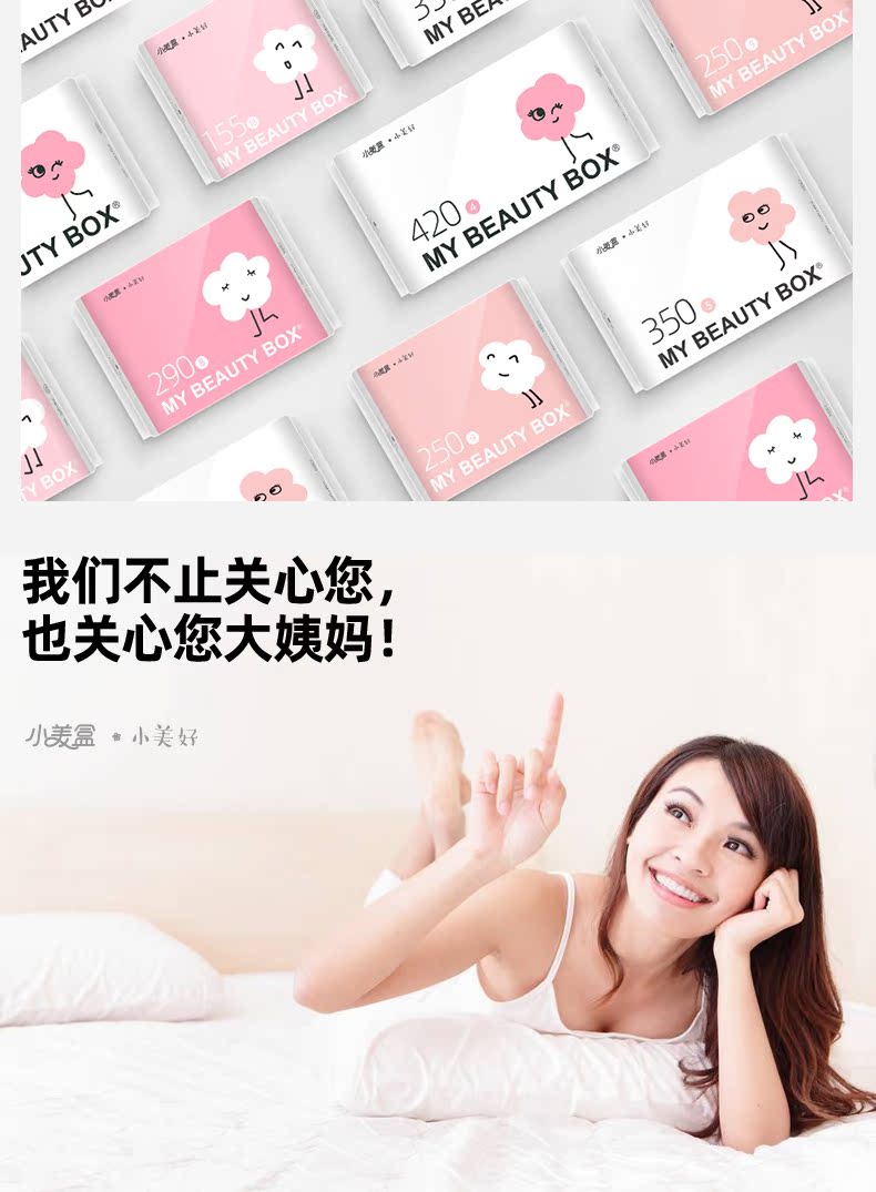 【小美盒买三免一】卫生巾日用夜用组合装,超薄透气,棉柔亲肤,五种规格任意搭配,无添加荧光剂!厚度低至0.1cm,方便随身携带!突然来了也不怕!海量瞬吸,高透底膜,告别烦闷~