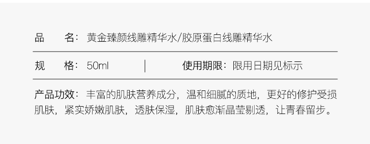 【赠运费险】【全国包邮】一定要拍2件,2件只要29.9!黄金胶原蛋白线雕精华!含金箔成分,紧致+嫩肤+淡细纹+提亮肌肤4效合一,每天在家做个SPA,让肌肤保持Q弹水润,重回年轻嫩滑肌!