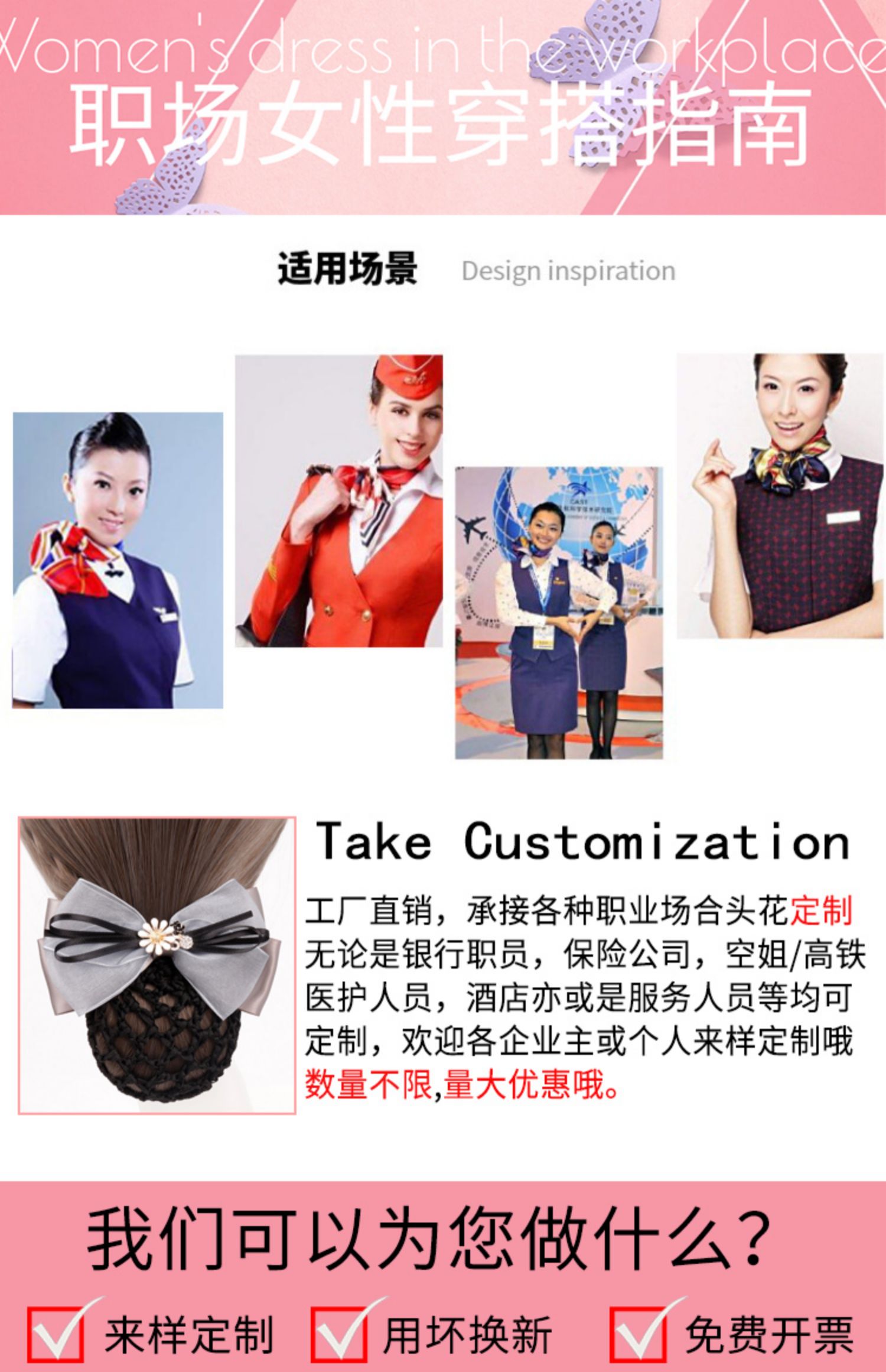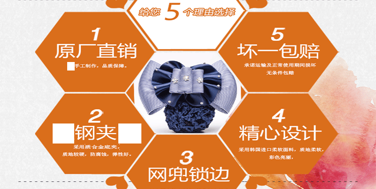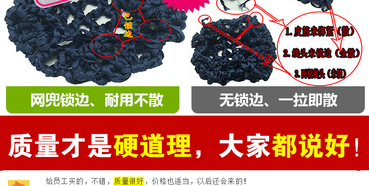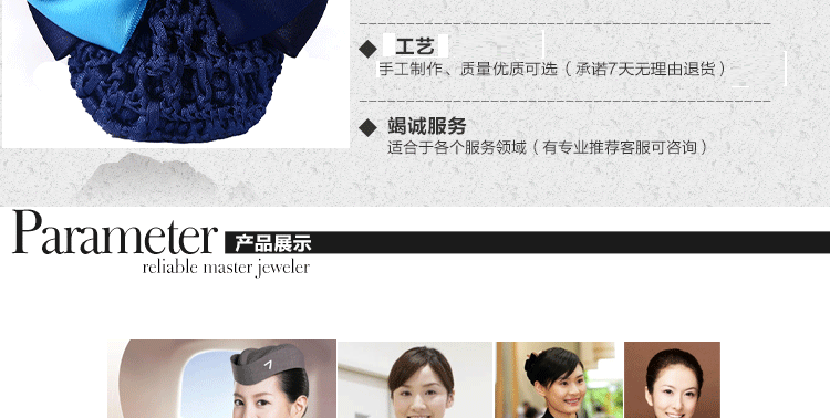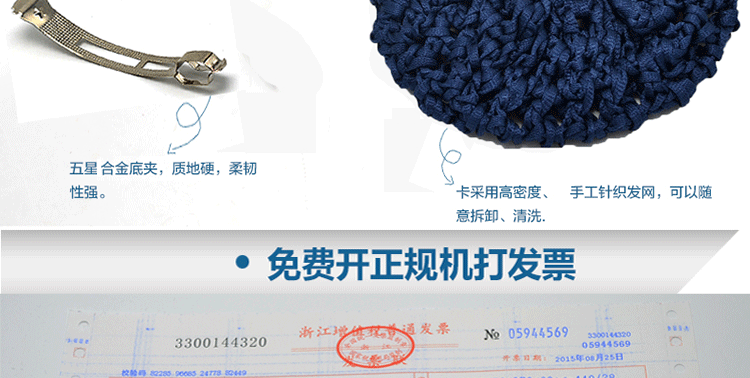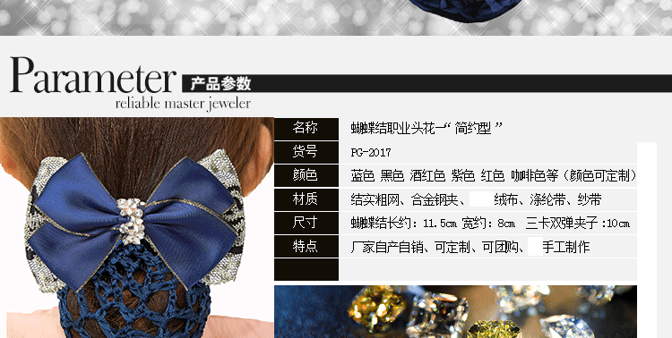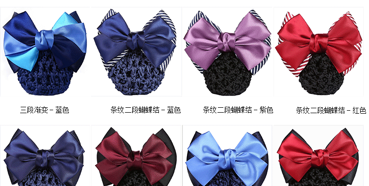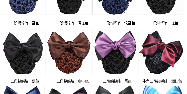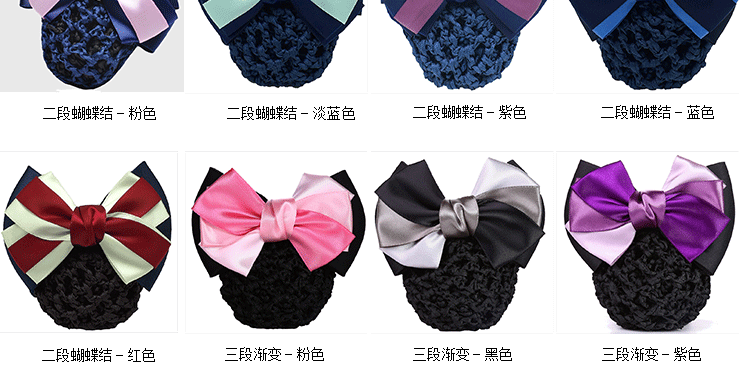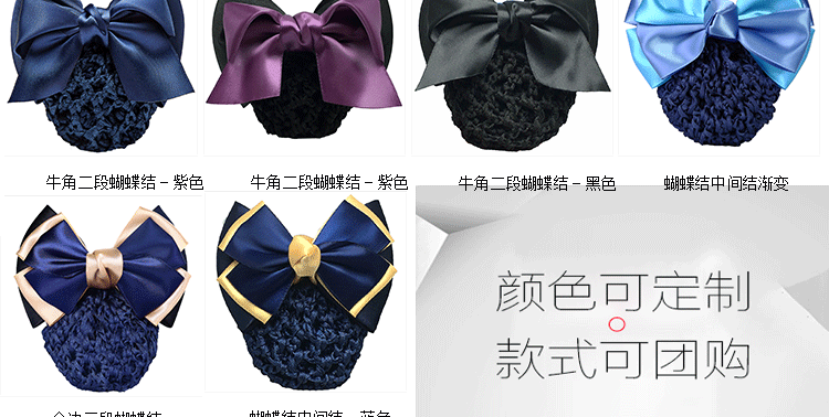 采用高弹尼龙密制网,蝴蝶结版型漂亮,弹性好,佩戴舒适,多色可选,简约实用款,个性精致!时尚百搭,立显气质,方便实用!