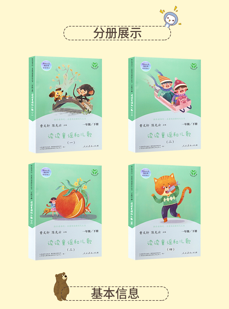 人民教育出版社出版,彩图注音儿歌童谣,快乐的童谣和儿歌,给孩子一个快乐美好的童年!生动可爱的插图,丰富又有趣,宝妈们抓紧囤啦!