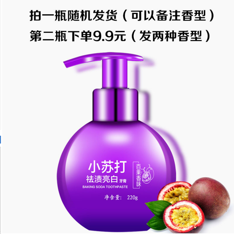 明星都在用的美白小苏打牙膏,大容量220g,够用好长时间哦,食品级的,大人小孩都可用,去黄去口臭,护龈美白,蓝莓/百香果2种香型可选,让你时刻展现迷人笑容!