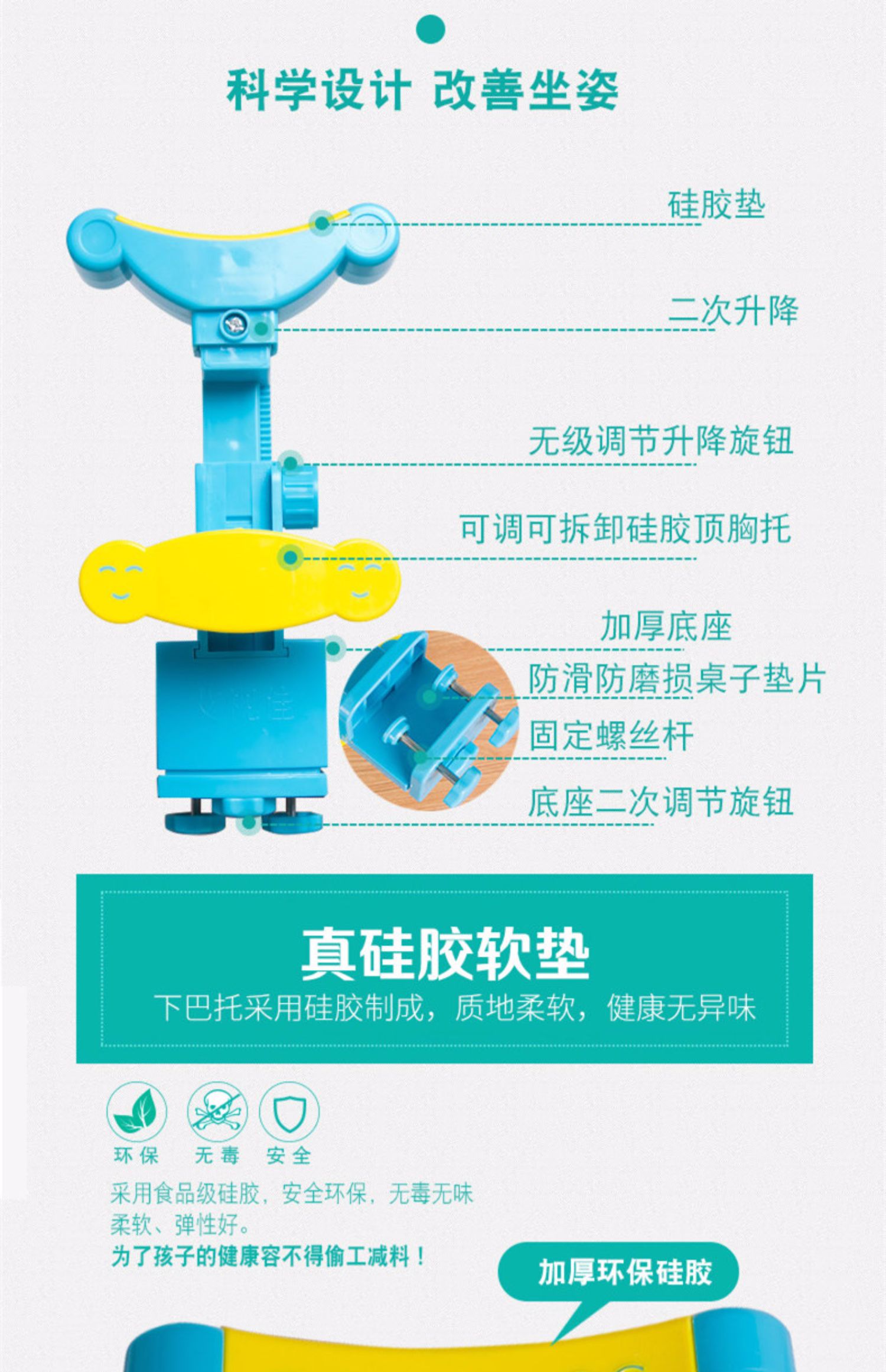 可以根据不同身高调节高度,有效防止孩子低头看书写字、身体靠在桌上!让宝宝远离近视!