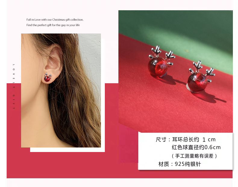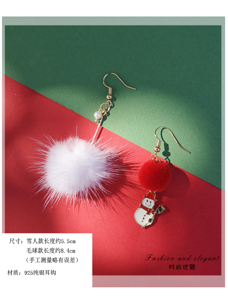 圣诞节冬季毛毛球纯银针耳环耳坠
