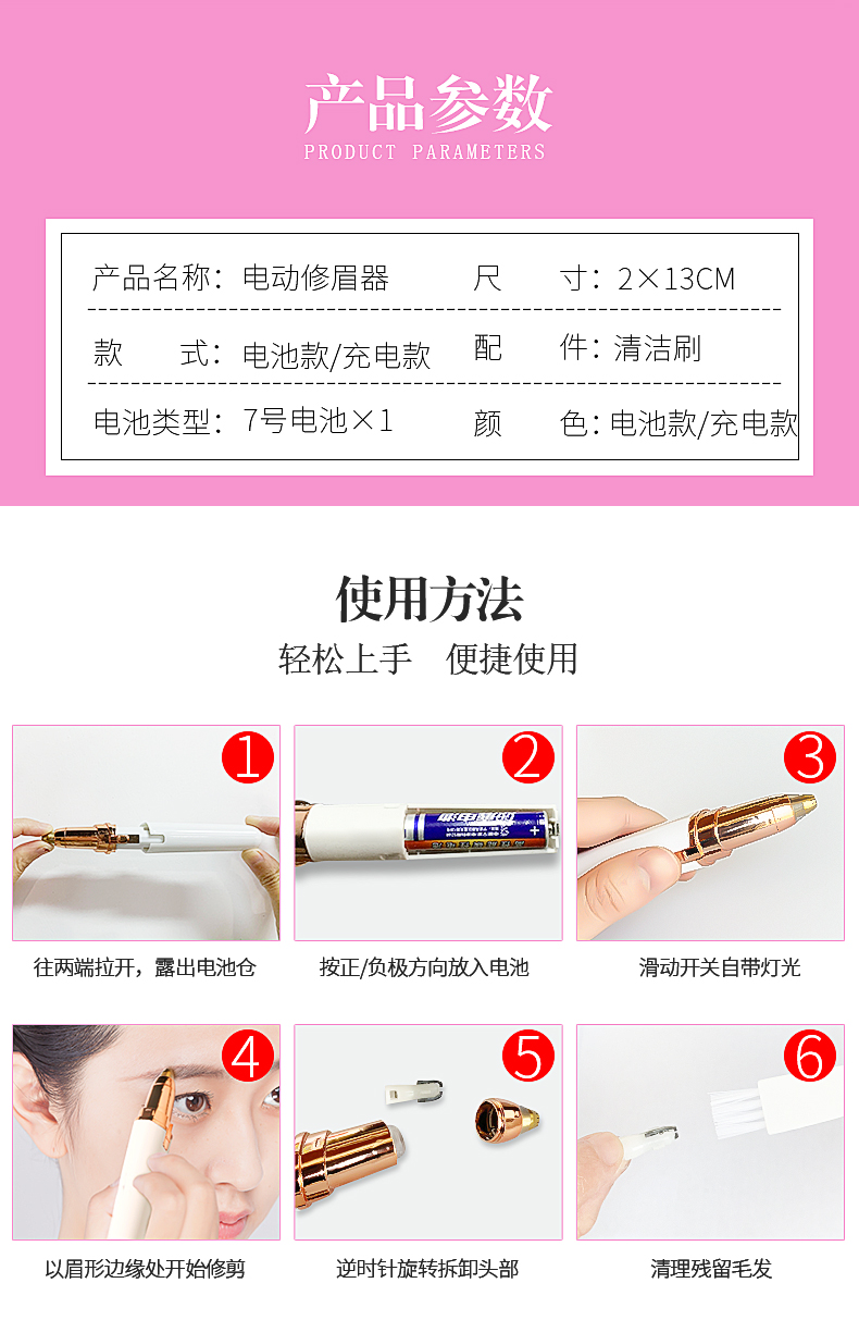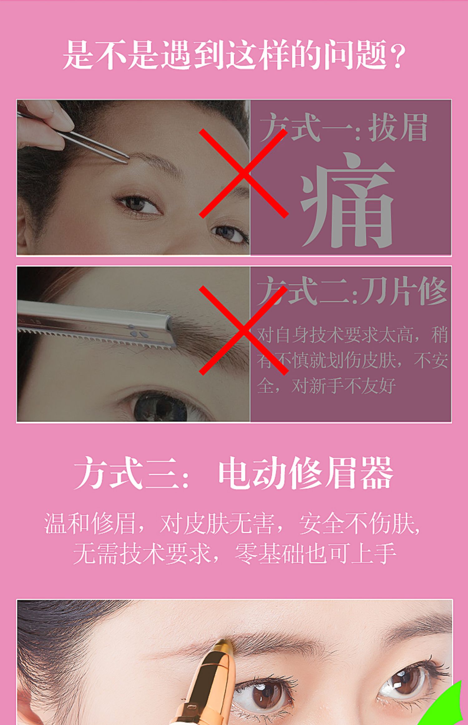 【抖音同款,手残党必备送电池!】女神专业电动修眉器,初学者懒人修眉,不伤皮肤,方便携带,使用简单,一笔成型,女神包包中必备之物!唇毛、腿毛都可以修!【赠运费险】