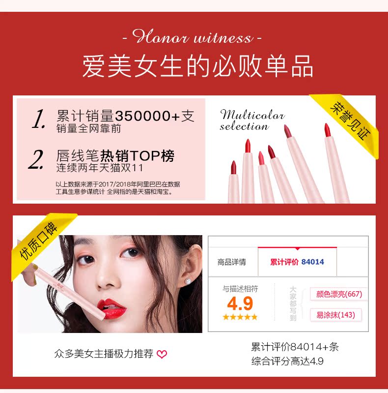 法国时装周秀御用品牌,【比聚划算更优惠】初学者新手画唇笔,一笔画出立体唇!还可以当口红,画眼影,真是一笔多用呢,滋润保湿,色彩饱满,易上色,持久防水,多色可选!【过敏包退】【破损包退】