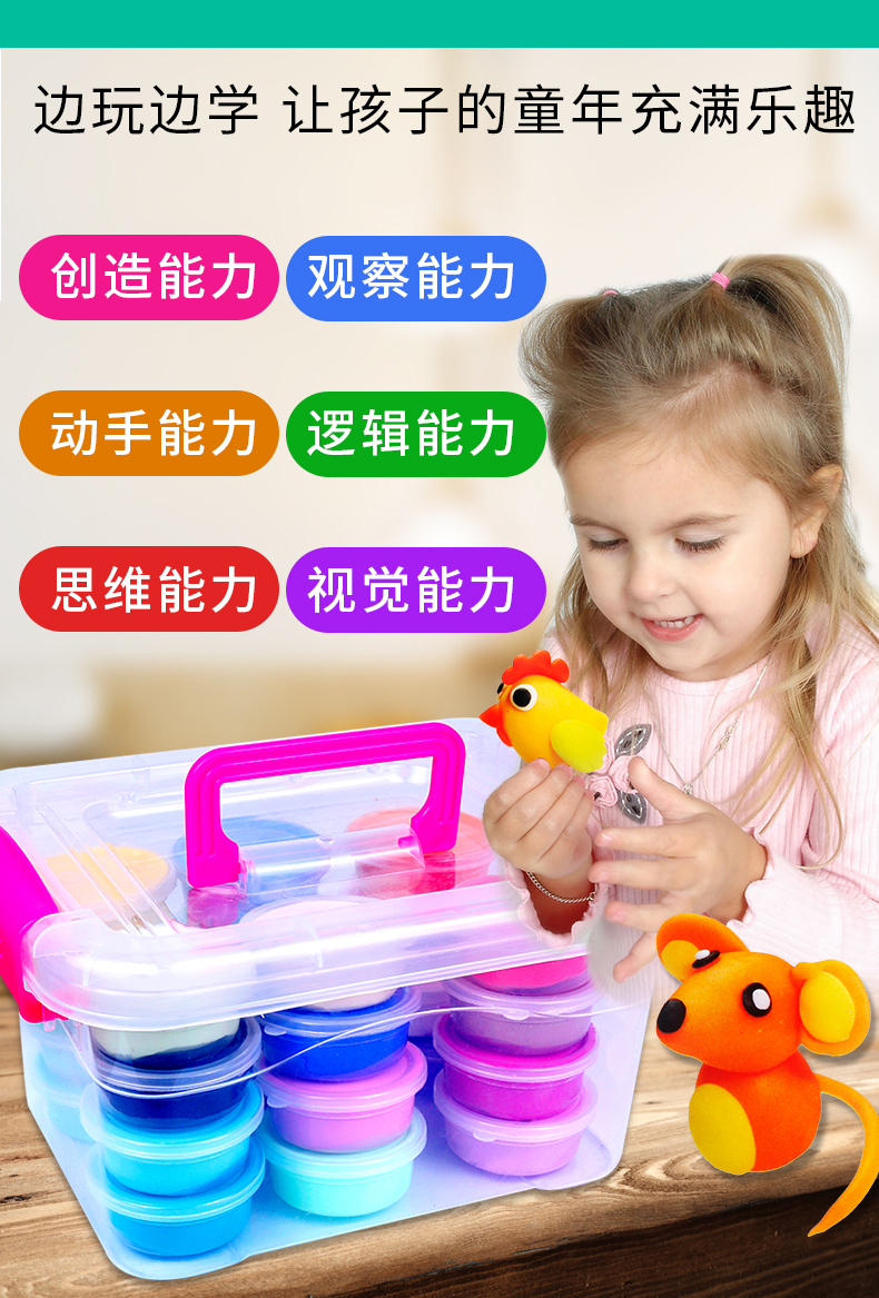 【送教程和工具,12色橡皮泥3C认证】安全无毒无味孩子玩得开心,家人更放心!每个孩子都是艺术家,有效培养儿童想象力,创造力,专注力,边玩边学让孩子的童年充满乐趣!【赠运费险】