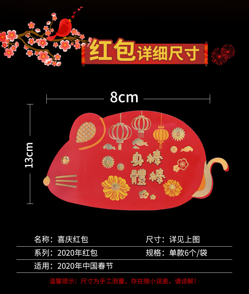 【限时秒杀!券后5.8元】2020年鼠年红包卡通创意红包,时尚超萌图案设计,烫金材质!加厚硬纸,硬壳红包。不容易破损,环保染印不掉色。新年婚庆佳品。多款可选【无理由退换货】