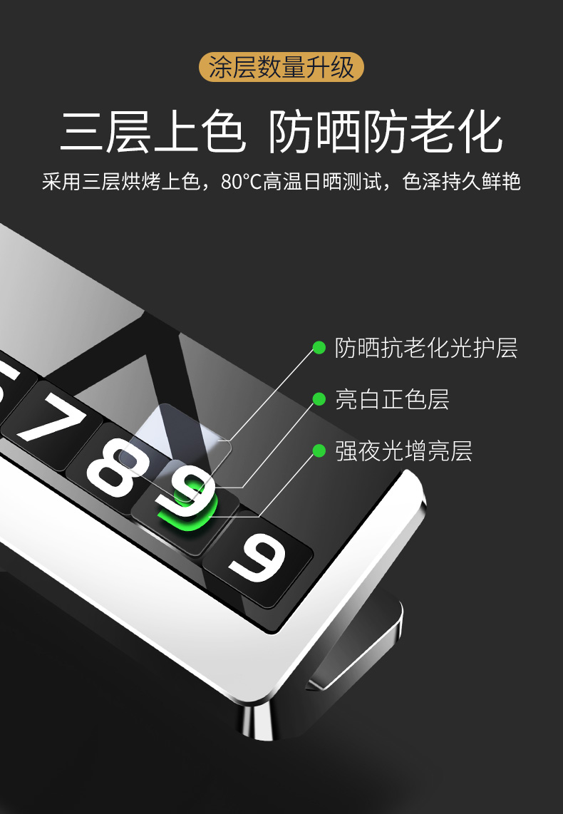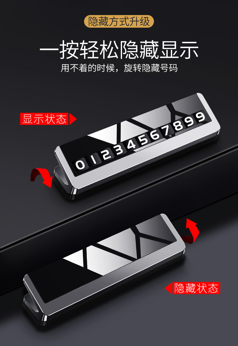 临时停车牌,防晒耐高温,夜间号码,清晰可见,可隐藏号码设计,轻松开合,一按隐藏,保护隐私,高颜值,小身材,大用处,爱车必备的装饰品,心情真的是美美哒。