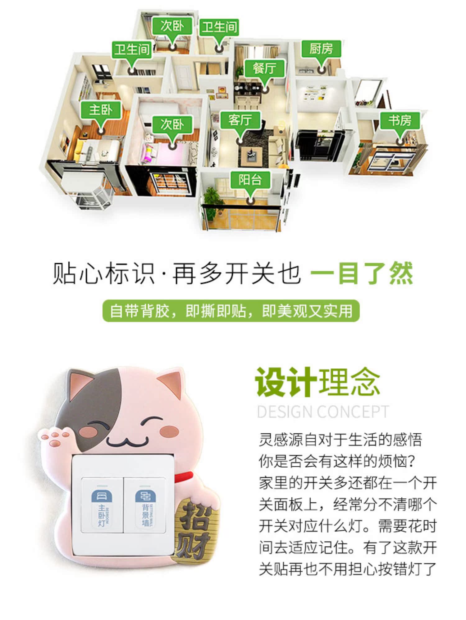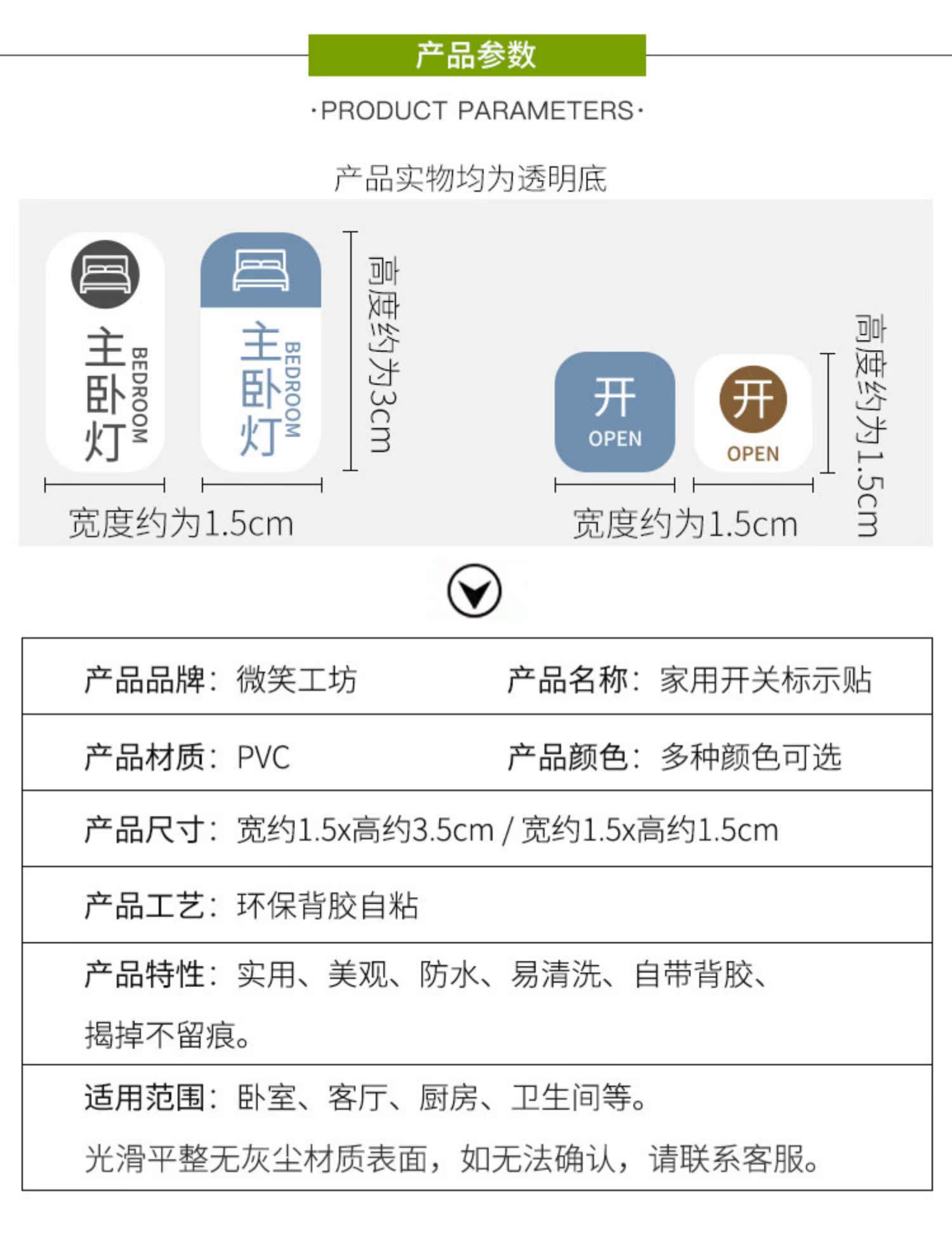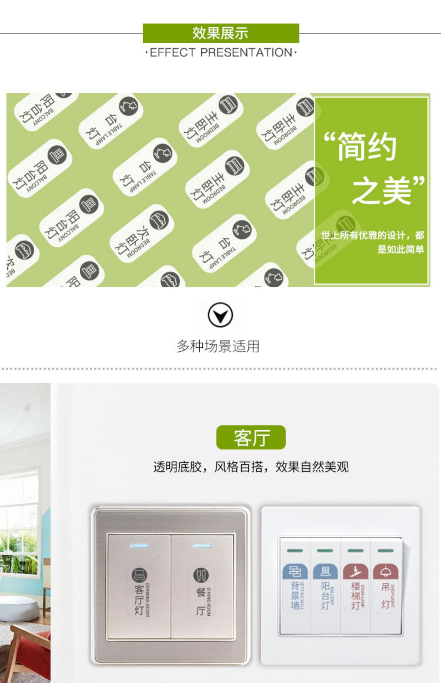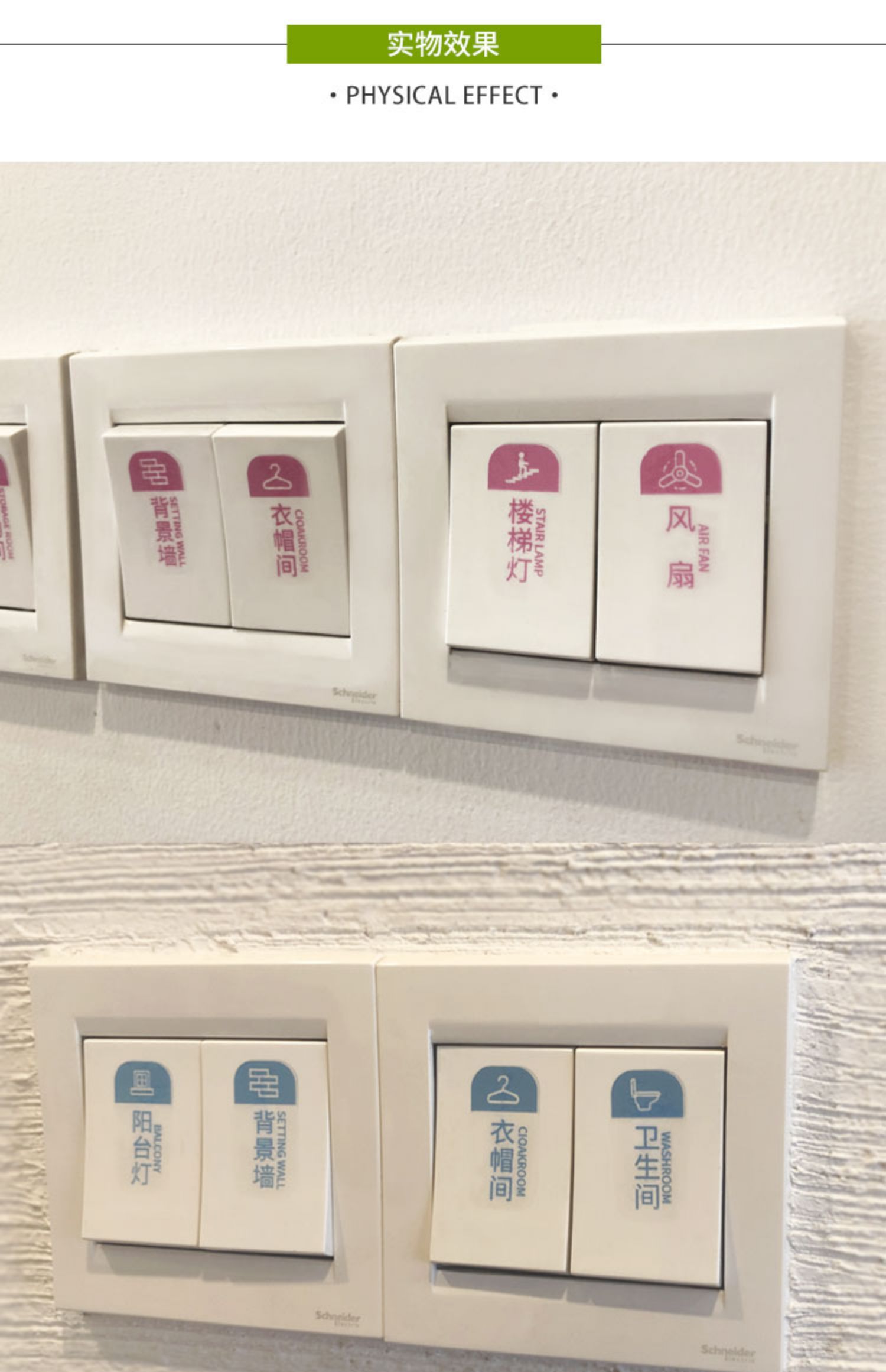 防水,可移除,夜光,即撕即贴,方便快捷,你还烦恼老是开错灯吗?贴心标识,再多的开关,也一目了然呢。