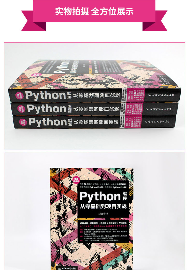 python书籍同步视频教学,从零基础入门到项目实战,100集视频讲解,33个实用案例,181个检验习题,31个上机体验,这不仅仅是一本书!而是一套完整的python语言学习方案和资源!