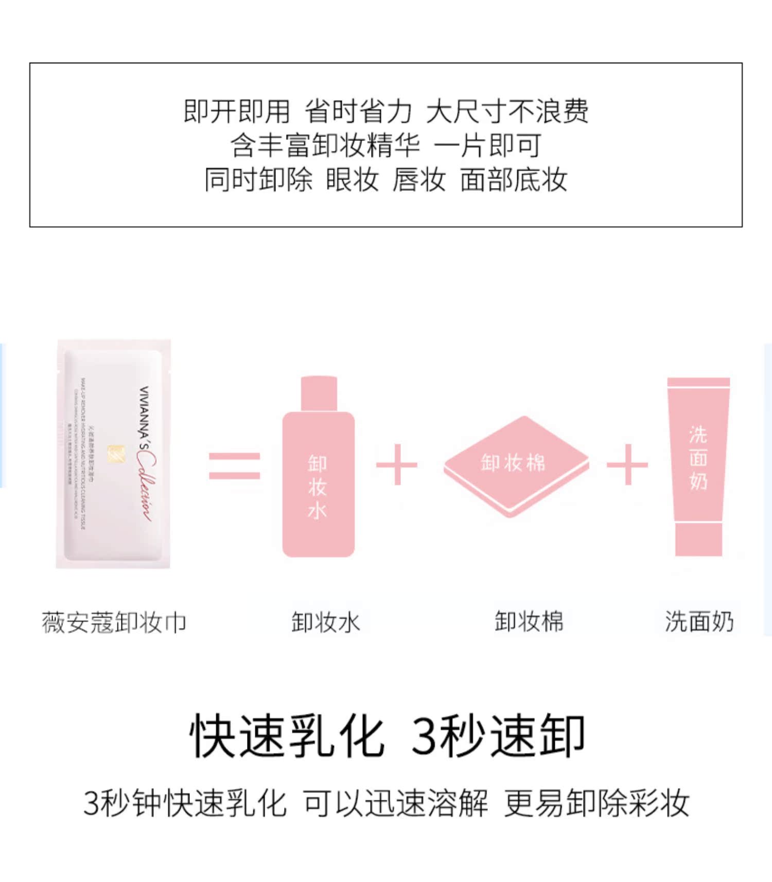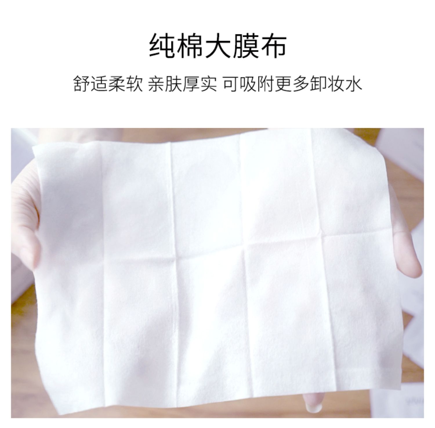 精选天然好棉,亲肤不掉絮!补水保湿护肤配方,深层洁净,3秒快速卸妆新体验,各种彩妆一抹搞定~卸出白皙水嫩肌!