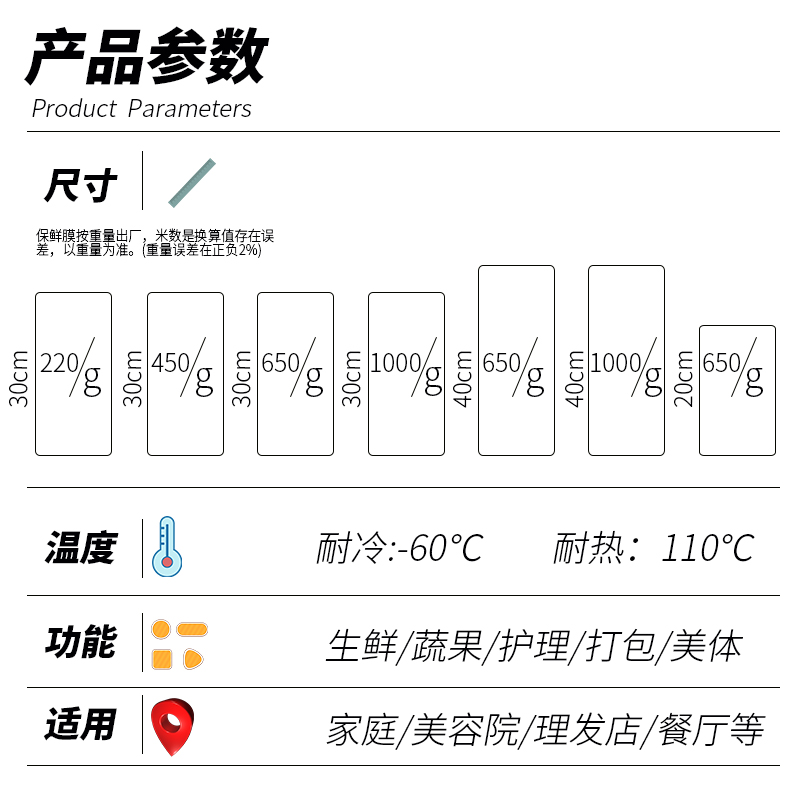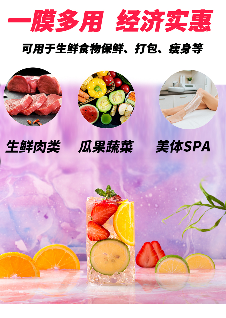 新时代,新材料,优质pe保鲜膜,安全健康,美容院专用,粘性好,韧性强,不易破,耐高温,密封性好,一膜多用,居家必备!多规格组合,每天保持新鲜!