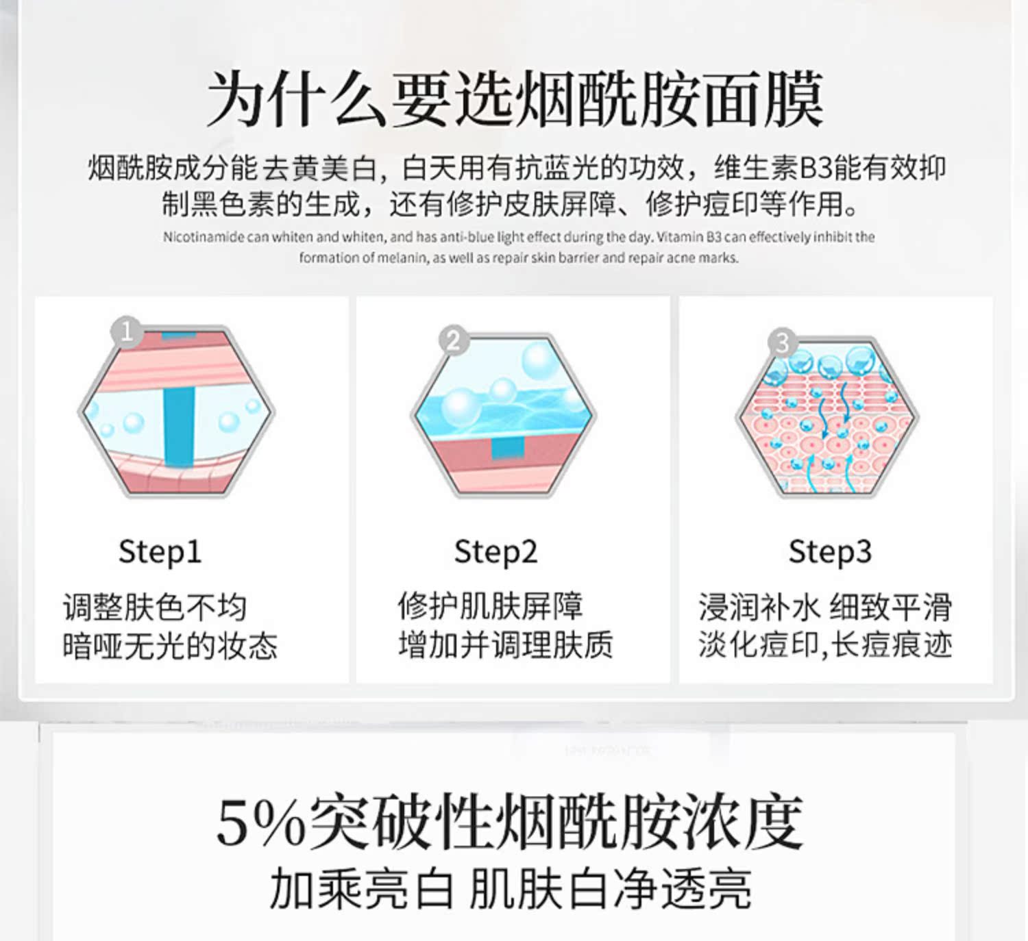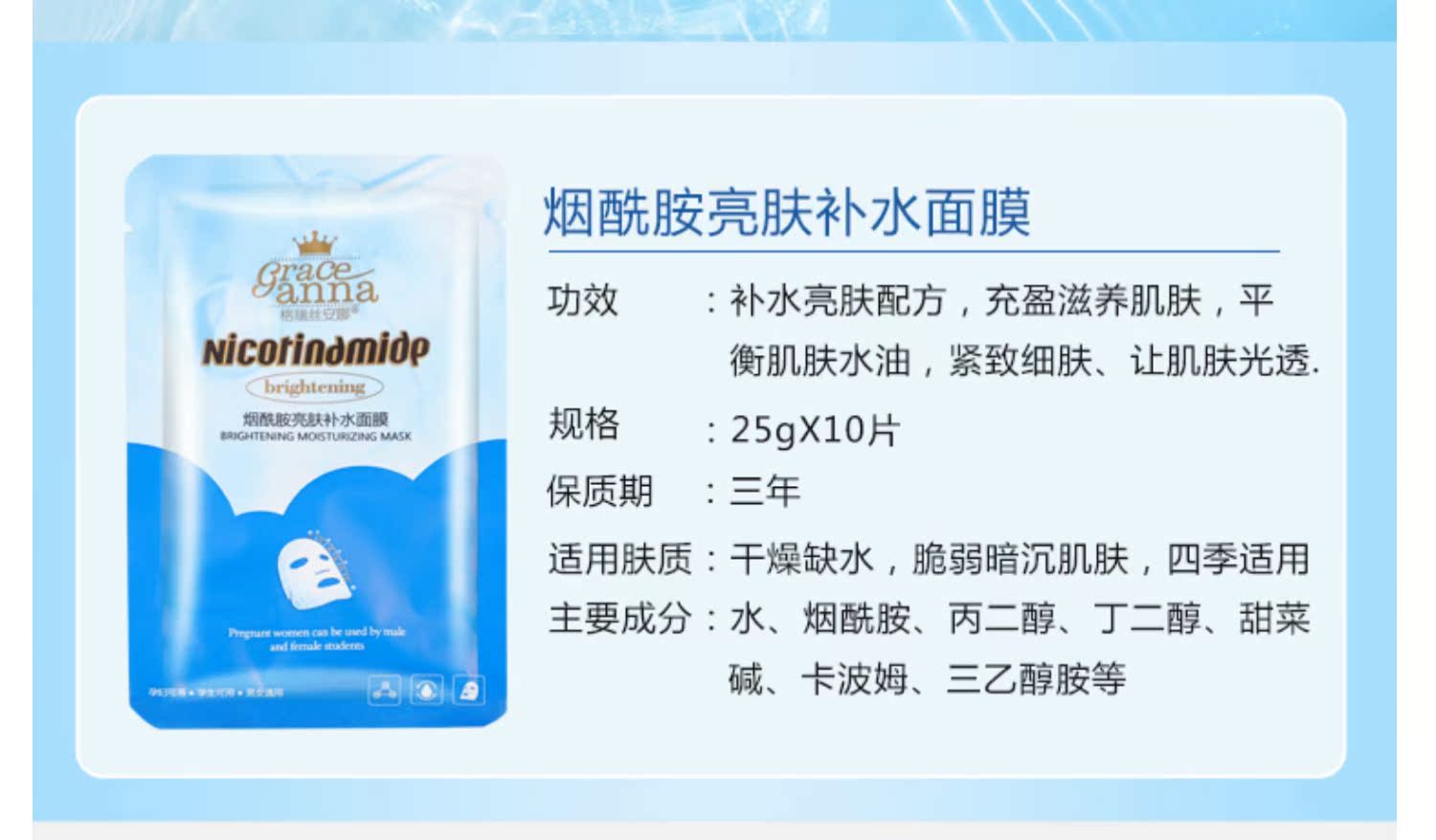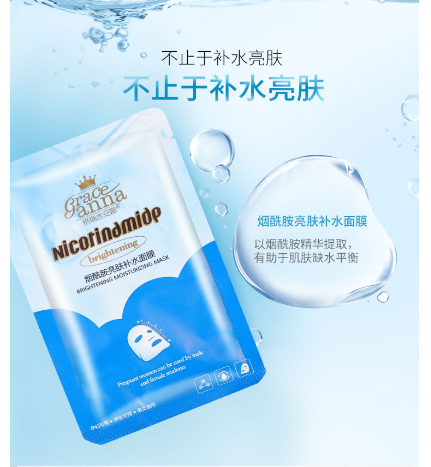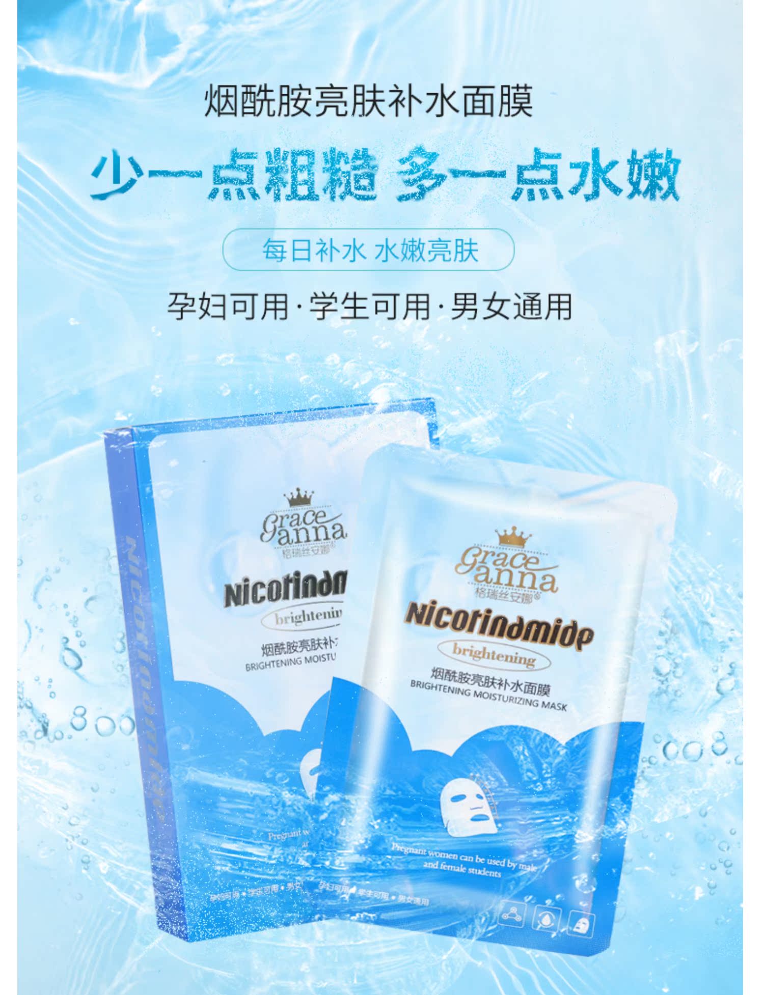 【拍2件】格瑞丝安娜烟酰胺面膜20片装,亮肤补水,丰富精华液,贴合肌肤补水,充盈滋养肌肤,平衡肌肤水油,紧致细肤,多一点水嫩。【赠运费险】