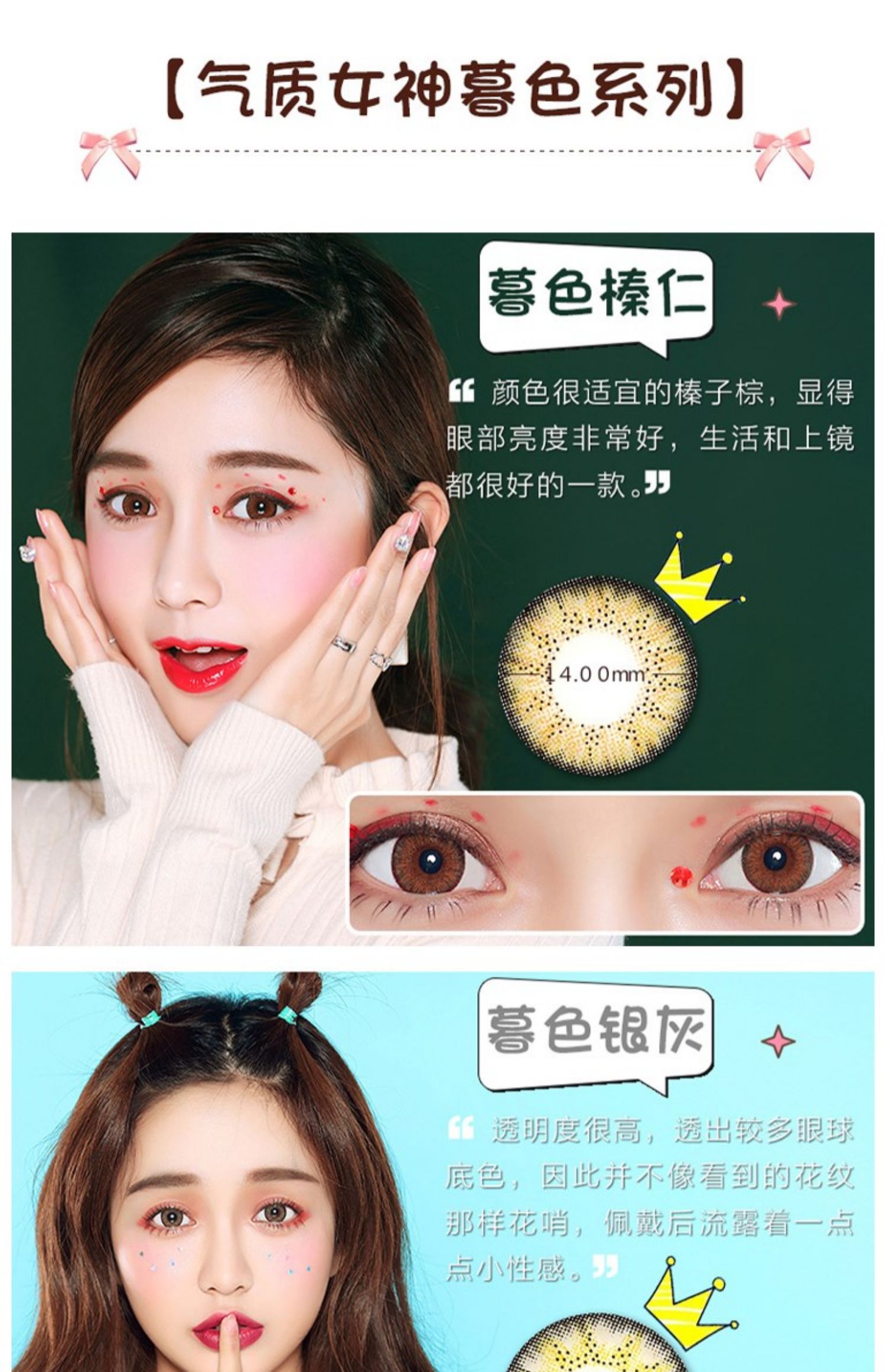 【拍两件29.9第二件0元,送护理液伴侣盒Q萌贴纸】韩国进口彩色半年抛,三明治夹色工艺,含保湿因子,防滑服帖,保持眼睛长时间湿润,超强锁水,超多款随意挑配有度数,任何场合都能完美。