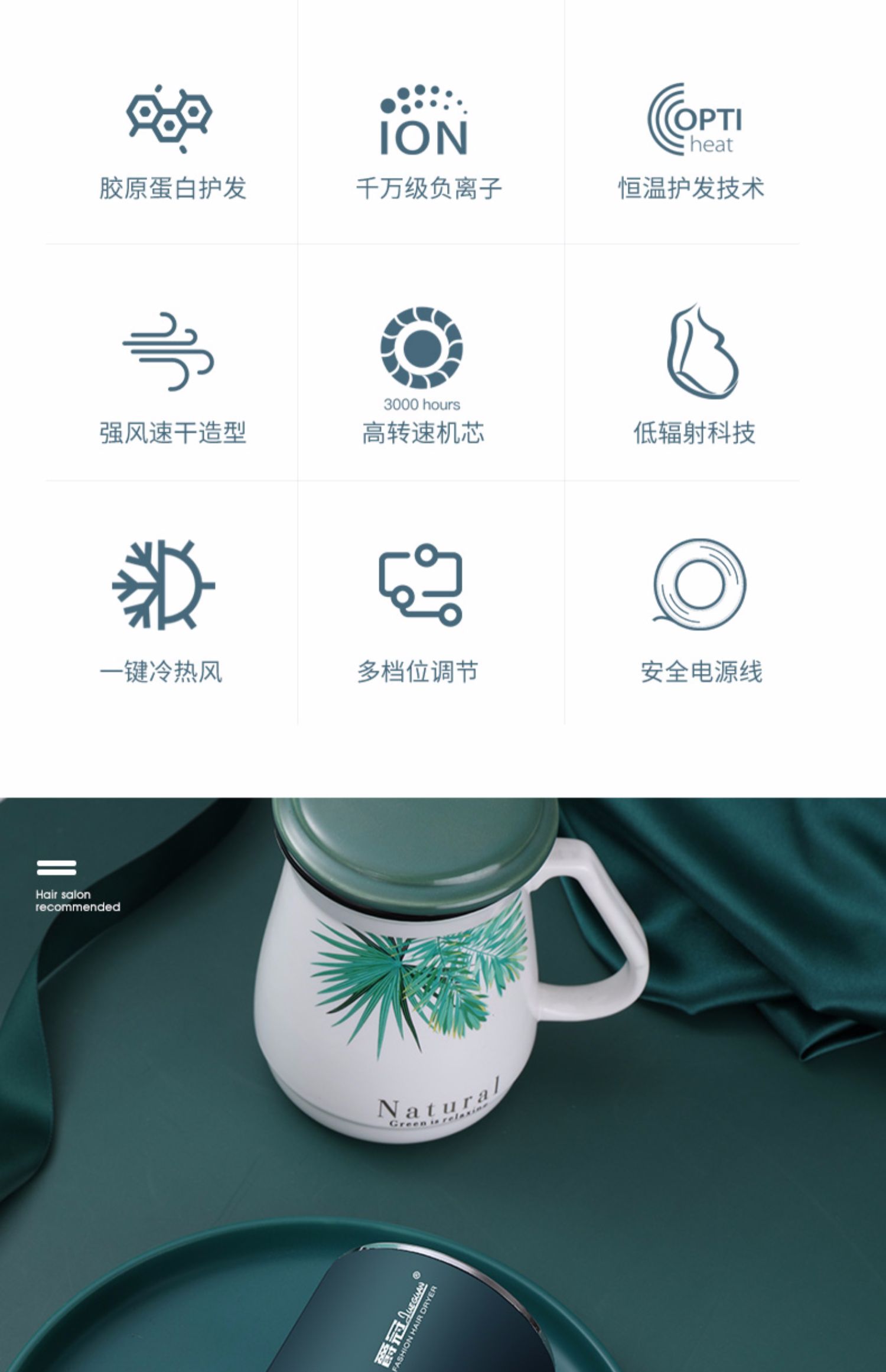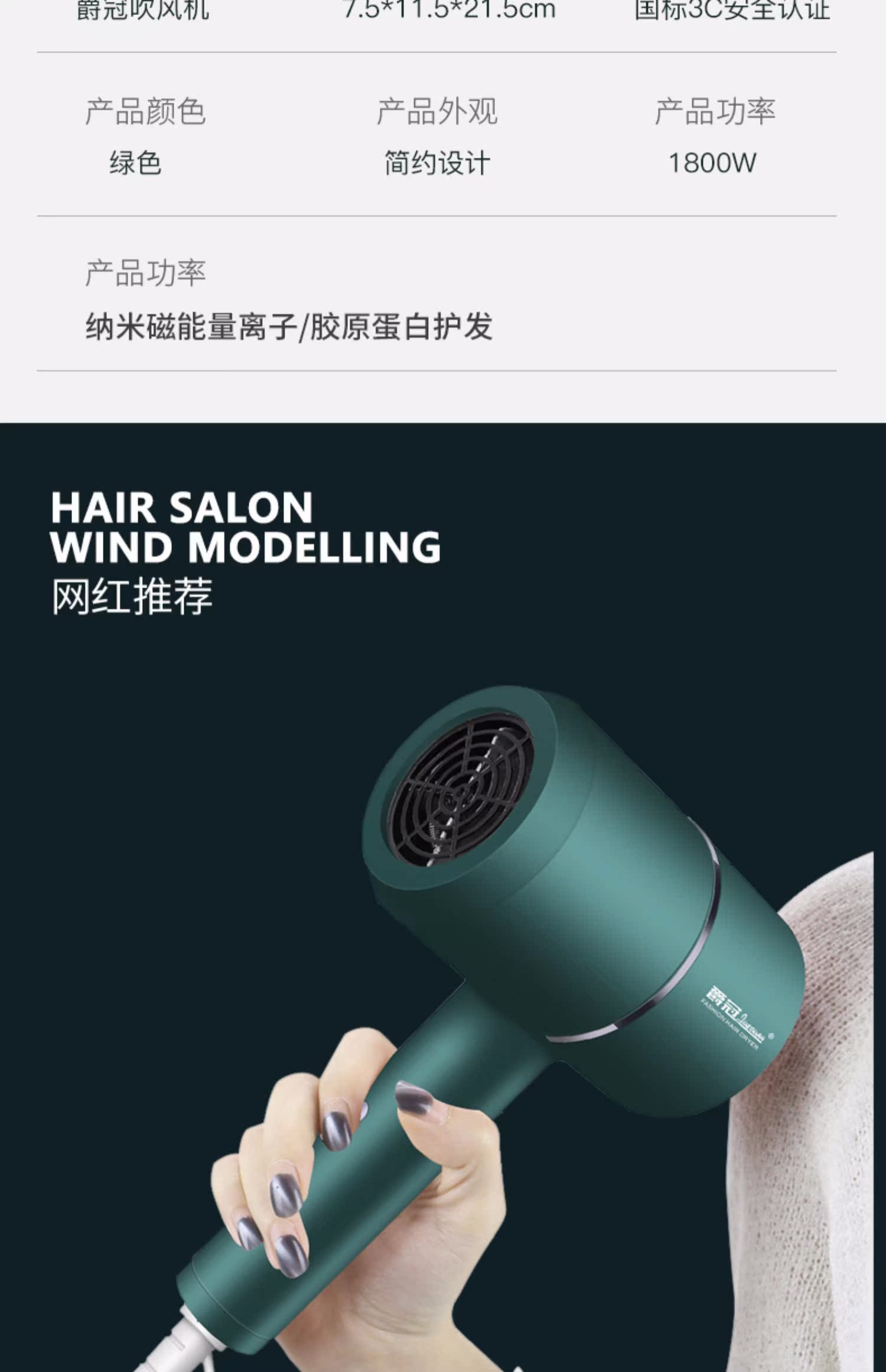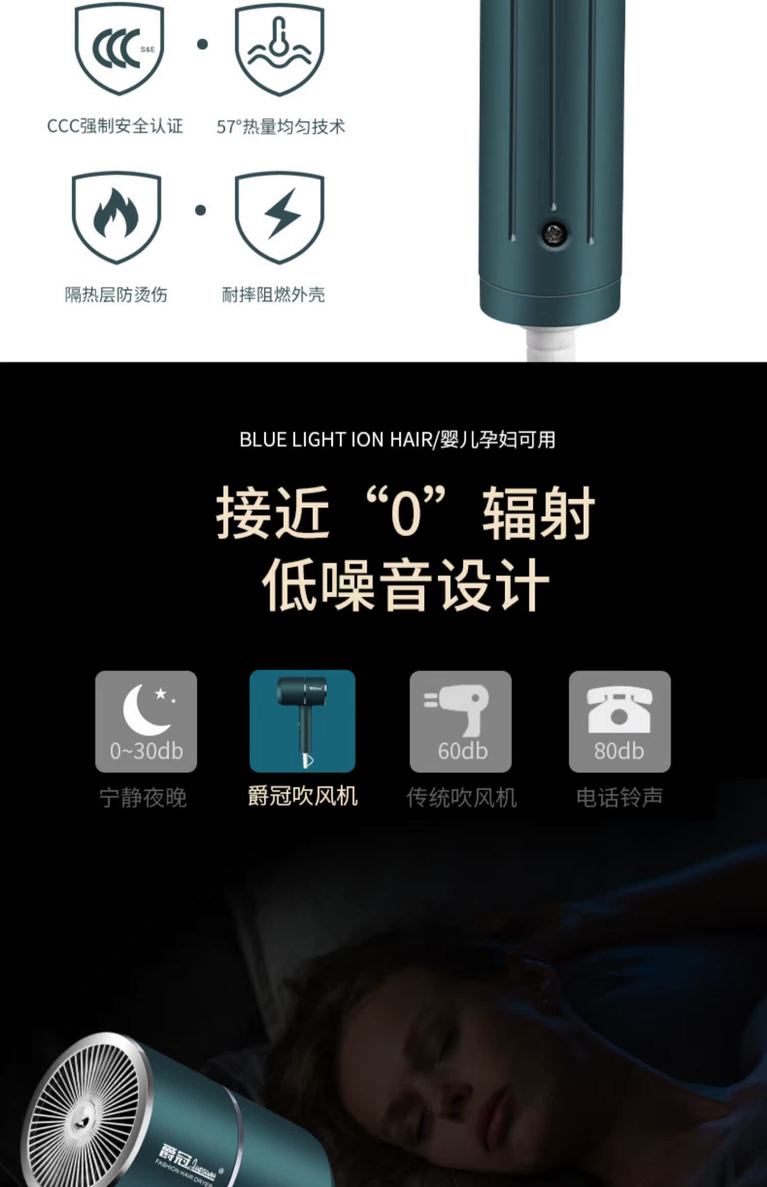 【送造型聚风嘴】意大利米兰设计之风格,家用冷热风大功率不伤发吹风机,蓝光水润负离子护发,6档调节,家用大风力,家居必备之选~【赠送运费险】