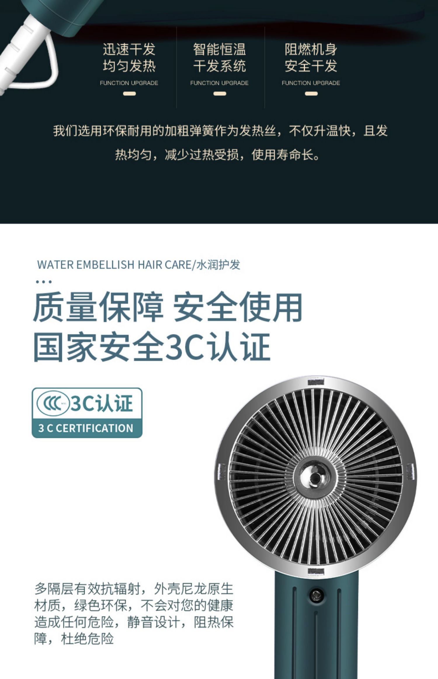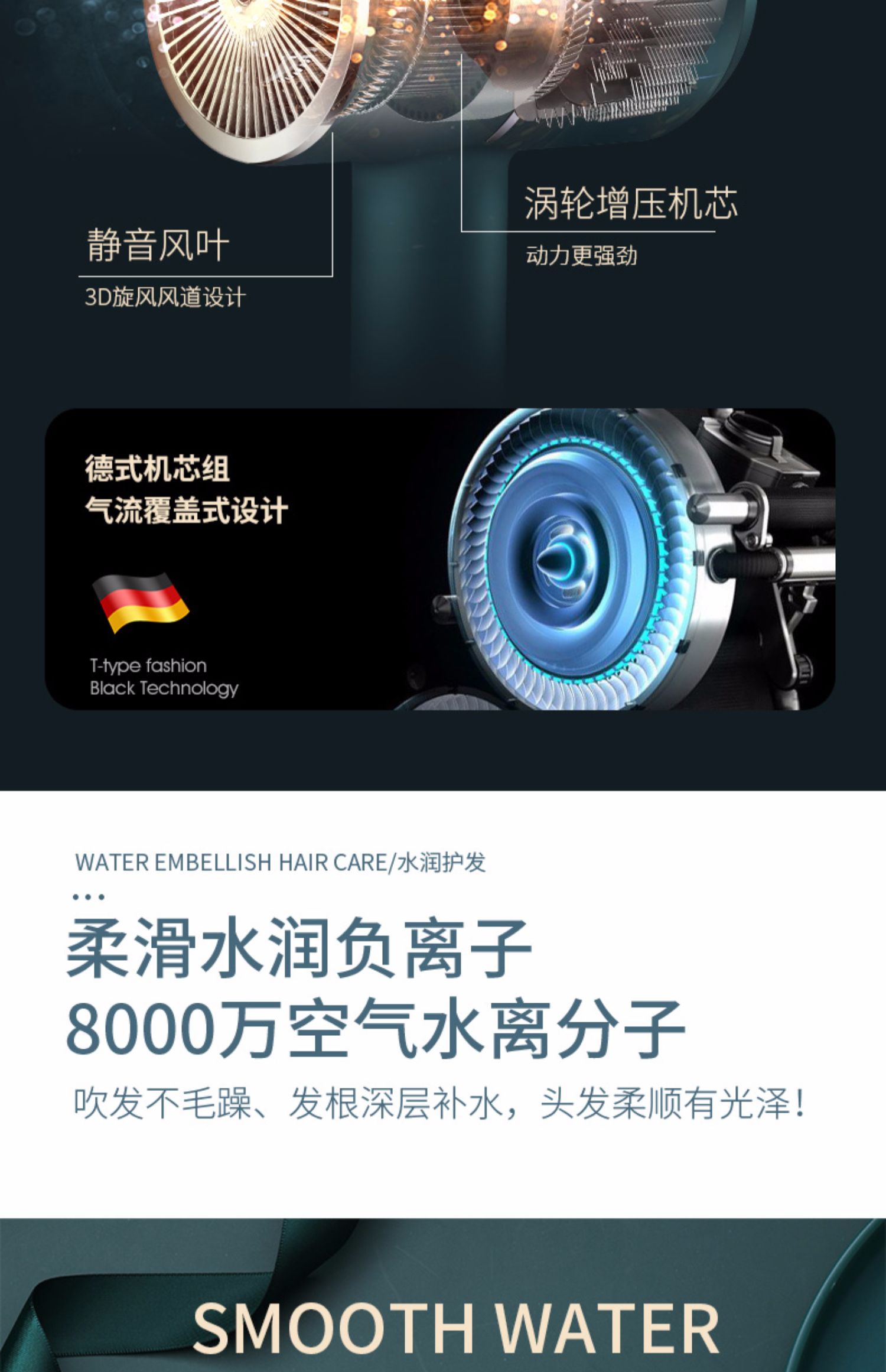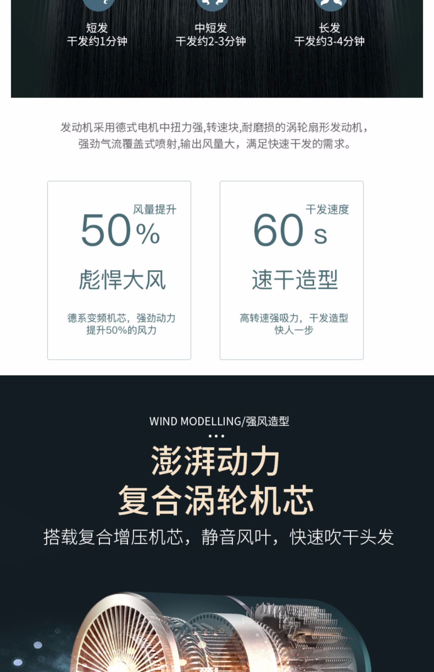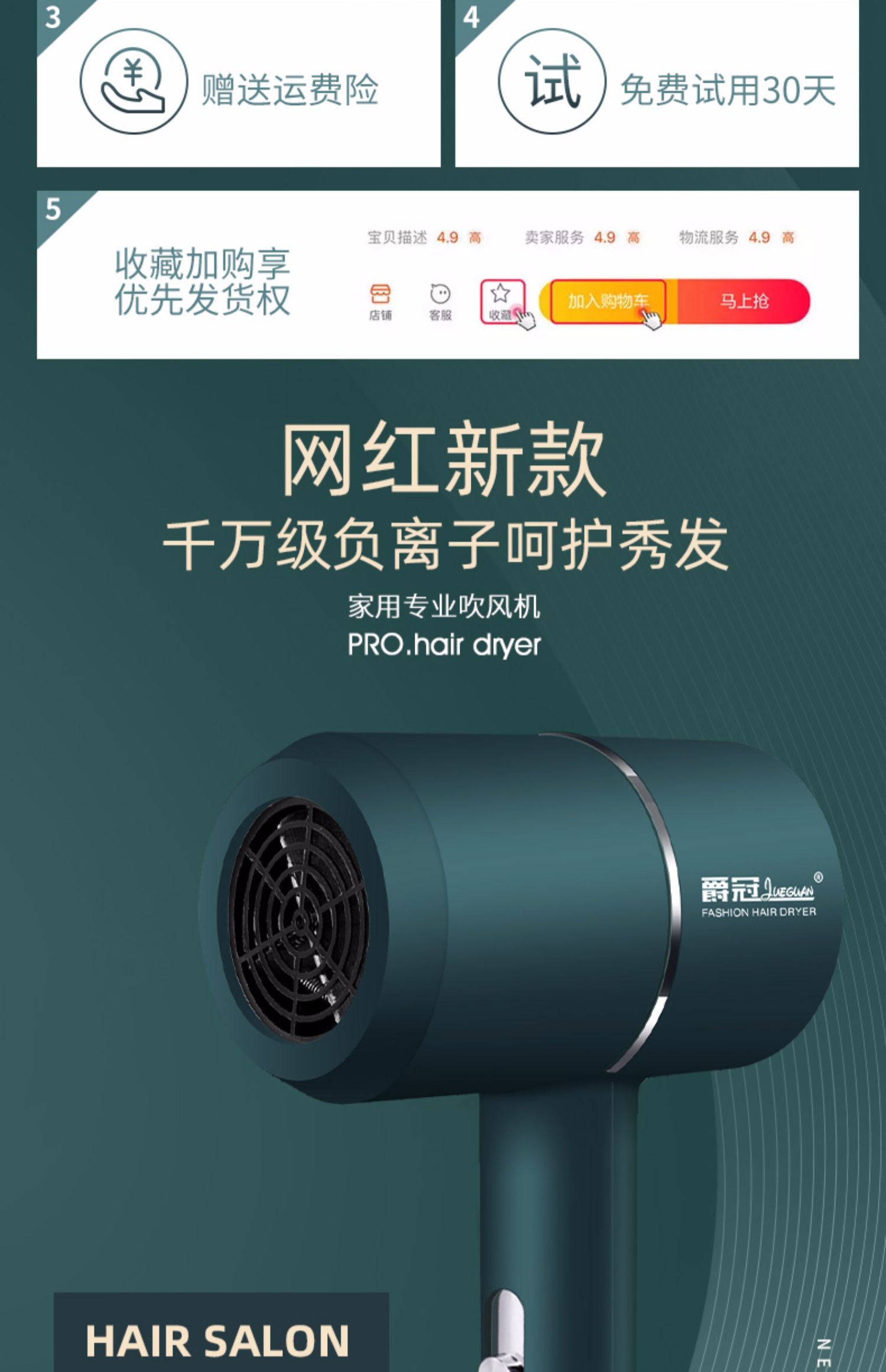 【送造型聚风嘴】意大利米兰设计之风格,家用冷热风大功率不伤发吹风机,蓝光水润负离子护发,6档调节,家用大风力,家居必备之选~【赠送运费险】