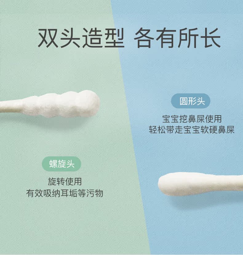 【买二发三~圆头+螺旋头纸轴两用棉签】卫消证字安全用,新生婴儿宝宝专用,柔软不含荧光剂,双头清洁,优选脱脂棉紧致不脱落,原浆纸质签棒光滑不伤娇嫩皮肤,高韧不易折轻松护理【赠运费险】