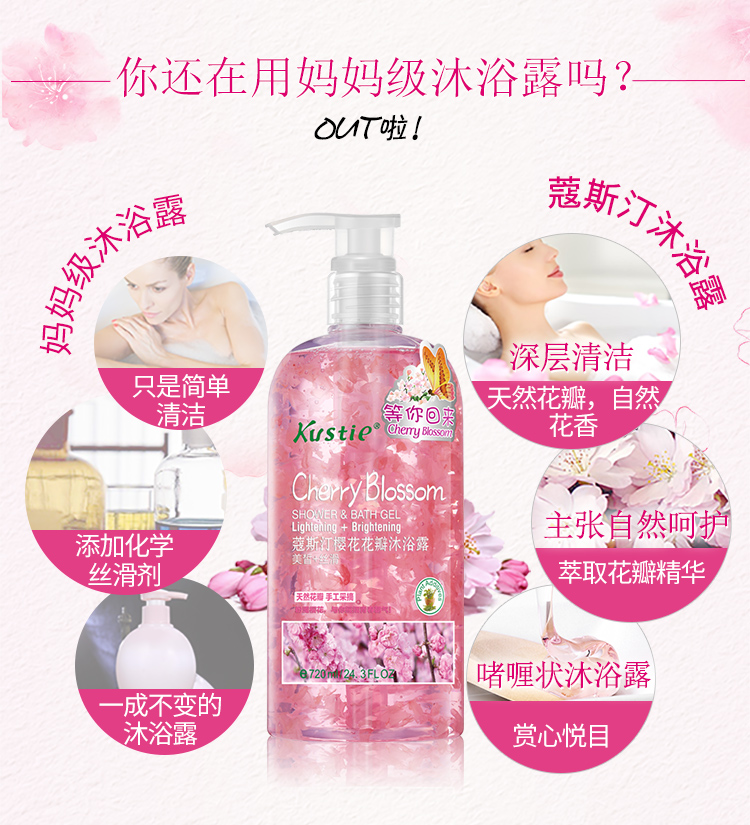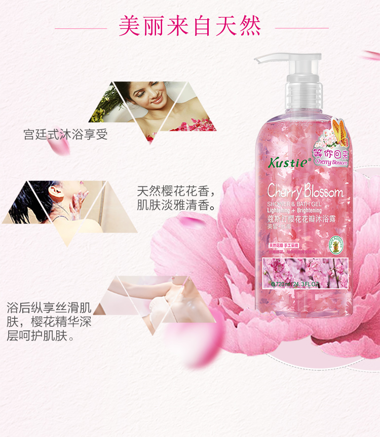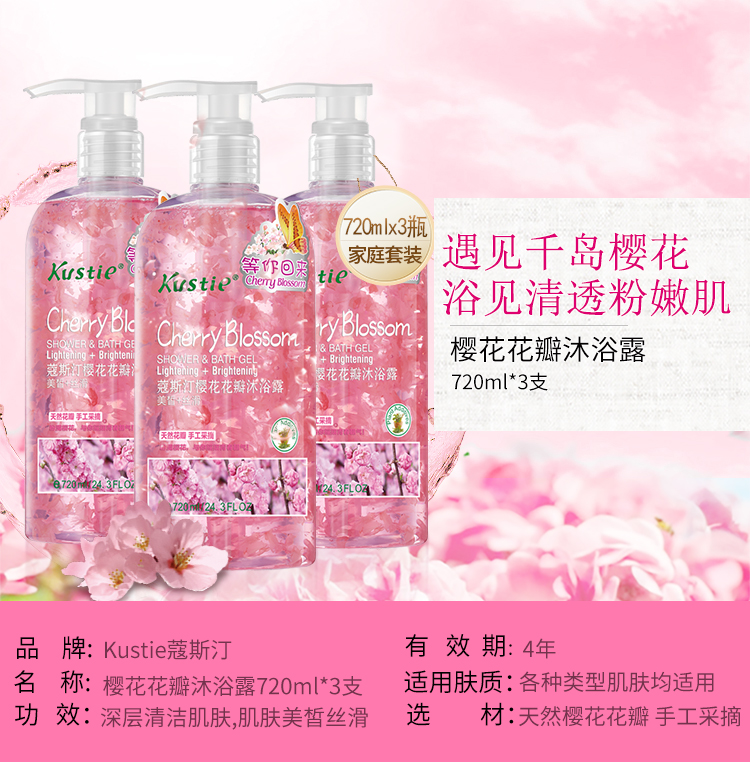 【kustie蔻斯汀正品旗舰店】超天然护肤,泡沫丰富,容易冲洗,蔻斯汀海外畅销商品,全身补水保湿,美丽天然花香,到更呵护肌肤,超值大容量720ml×3瓶,按压式更方便!