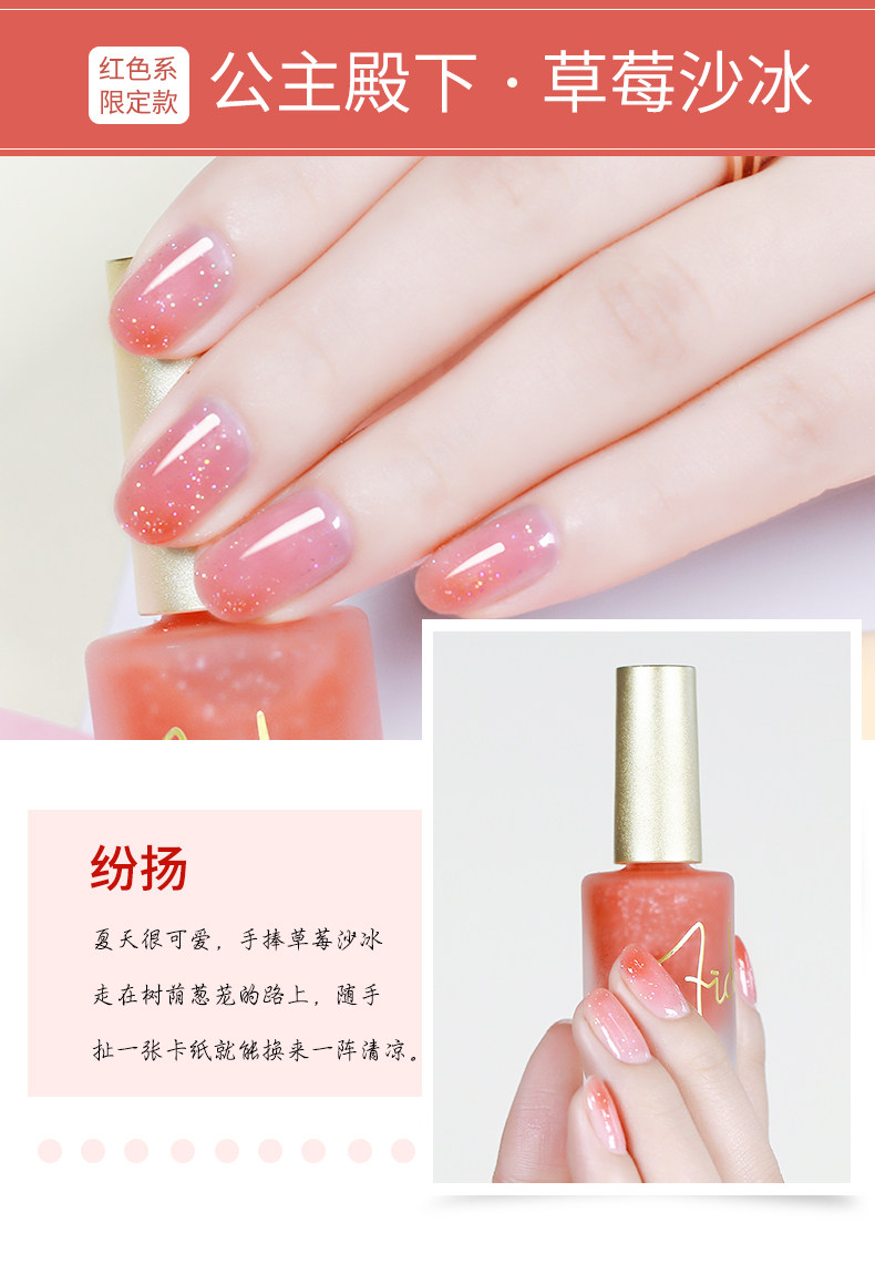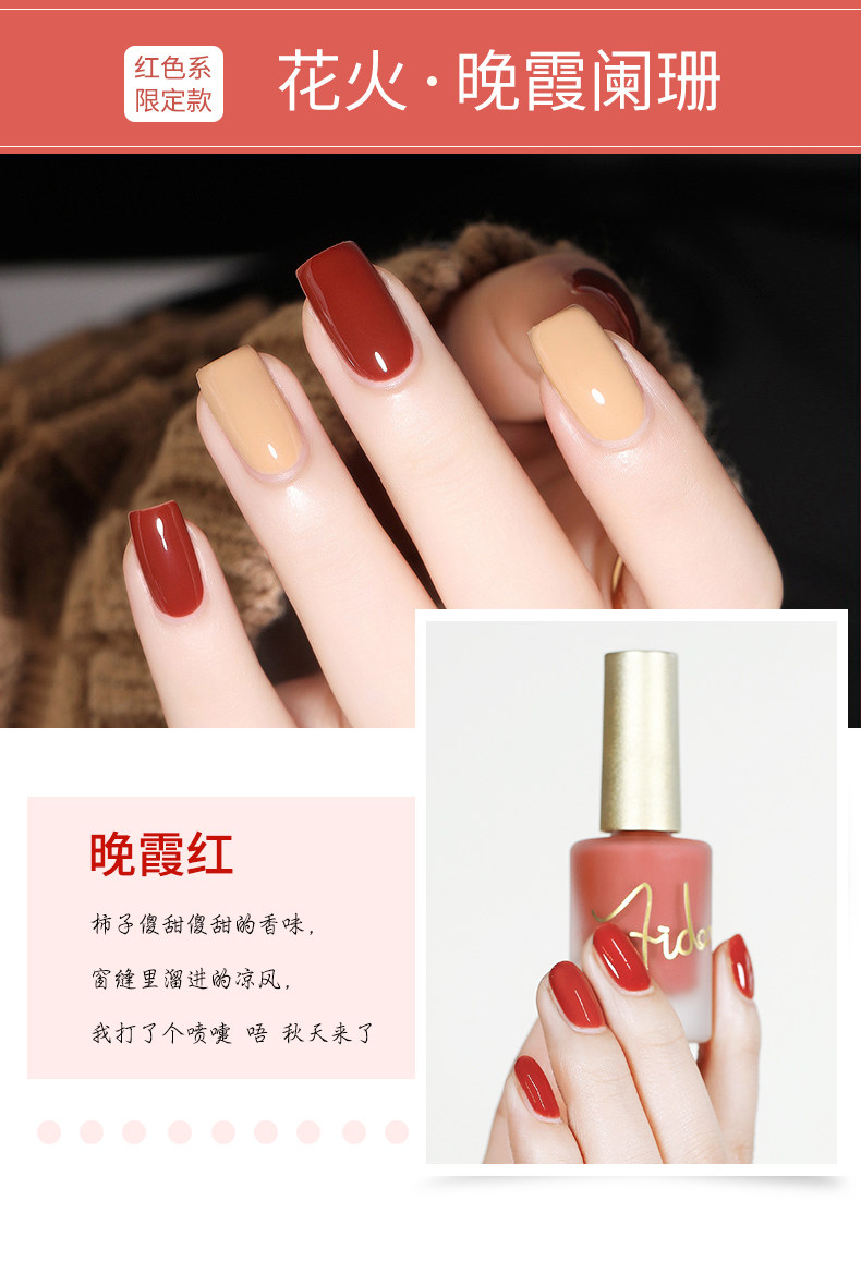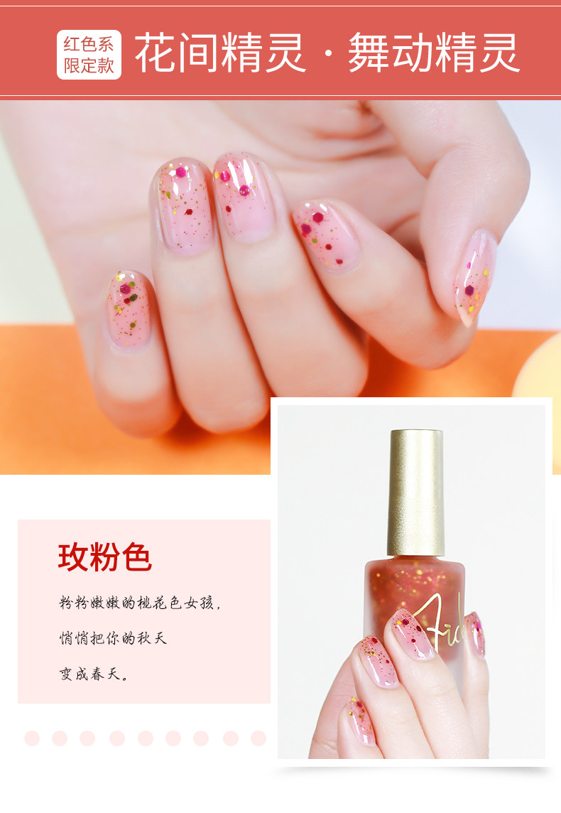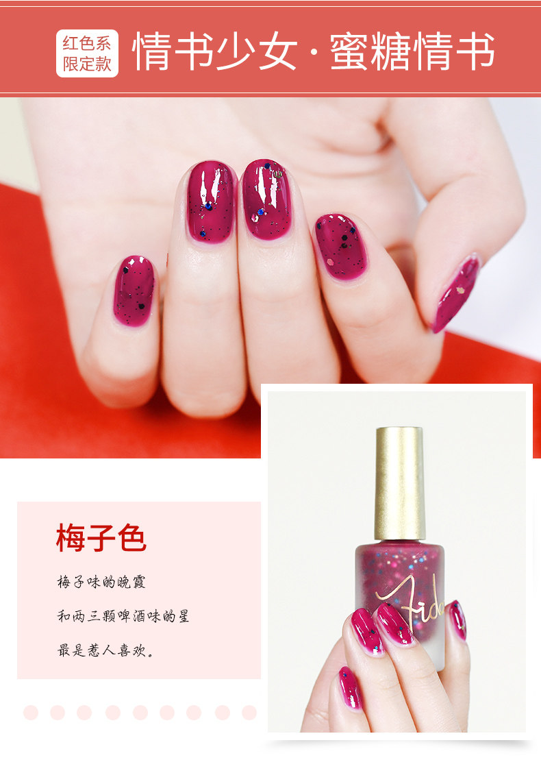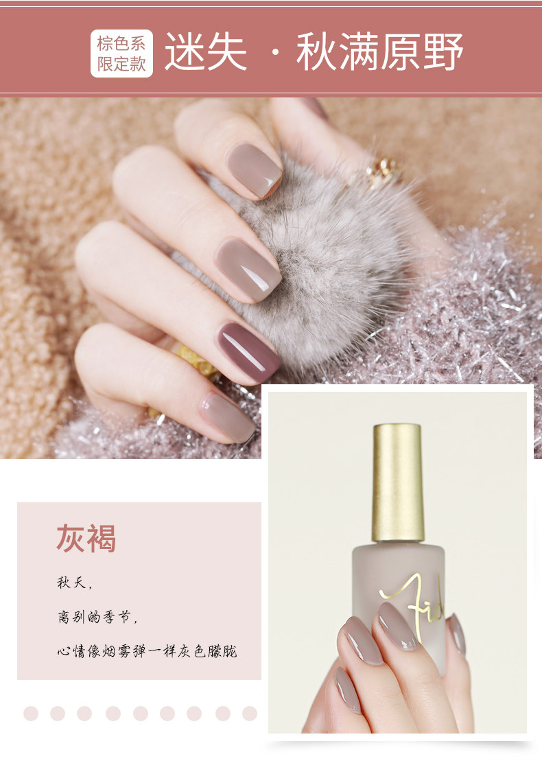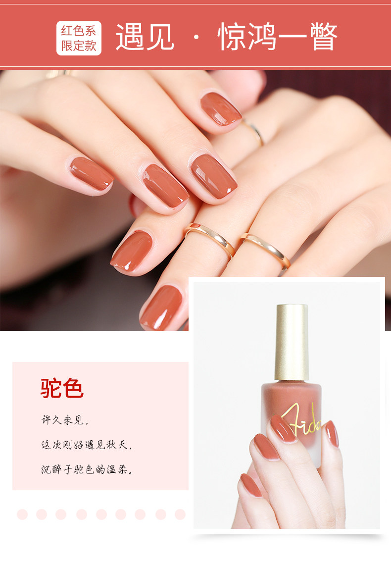 小仙女们种草啦~持久强韧养护,牢固透亮,防刮花,安全无毒,质量保证,放心选购,秋冬流行色,孕妇宝妈都可用,轻松卸一剥即可,速度抢购!!