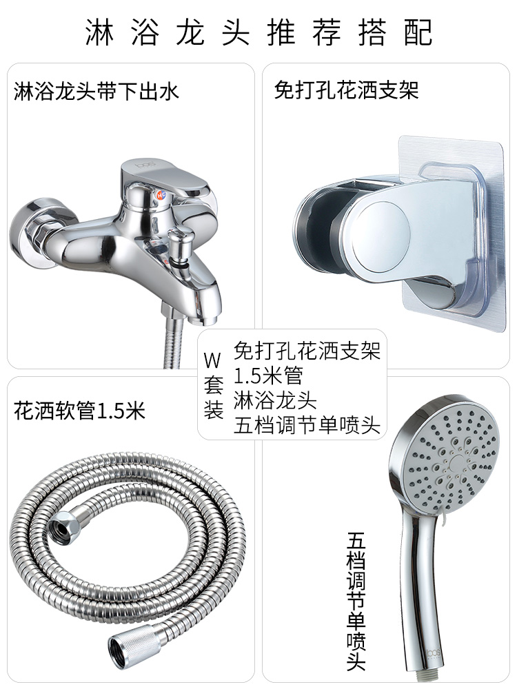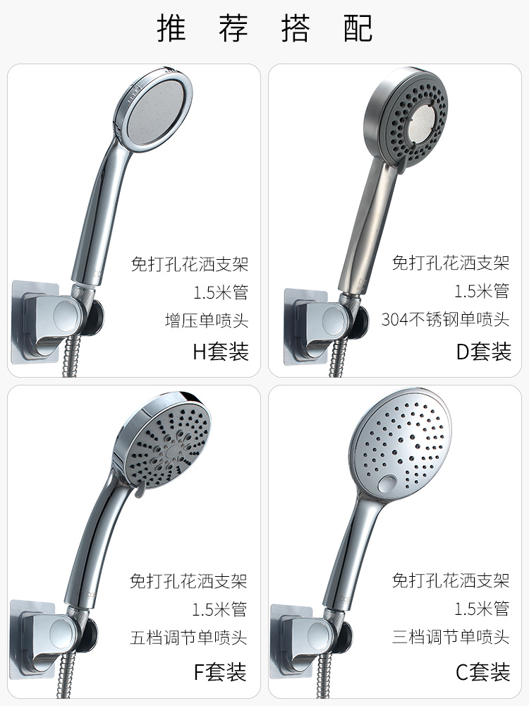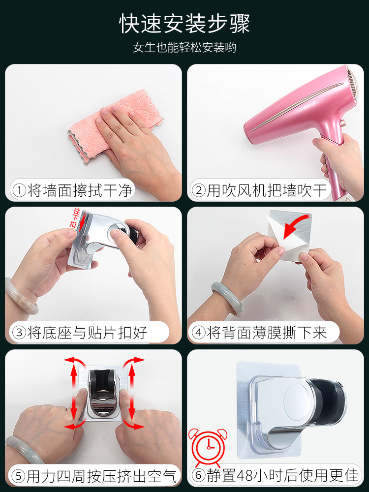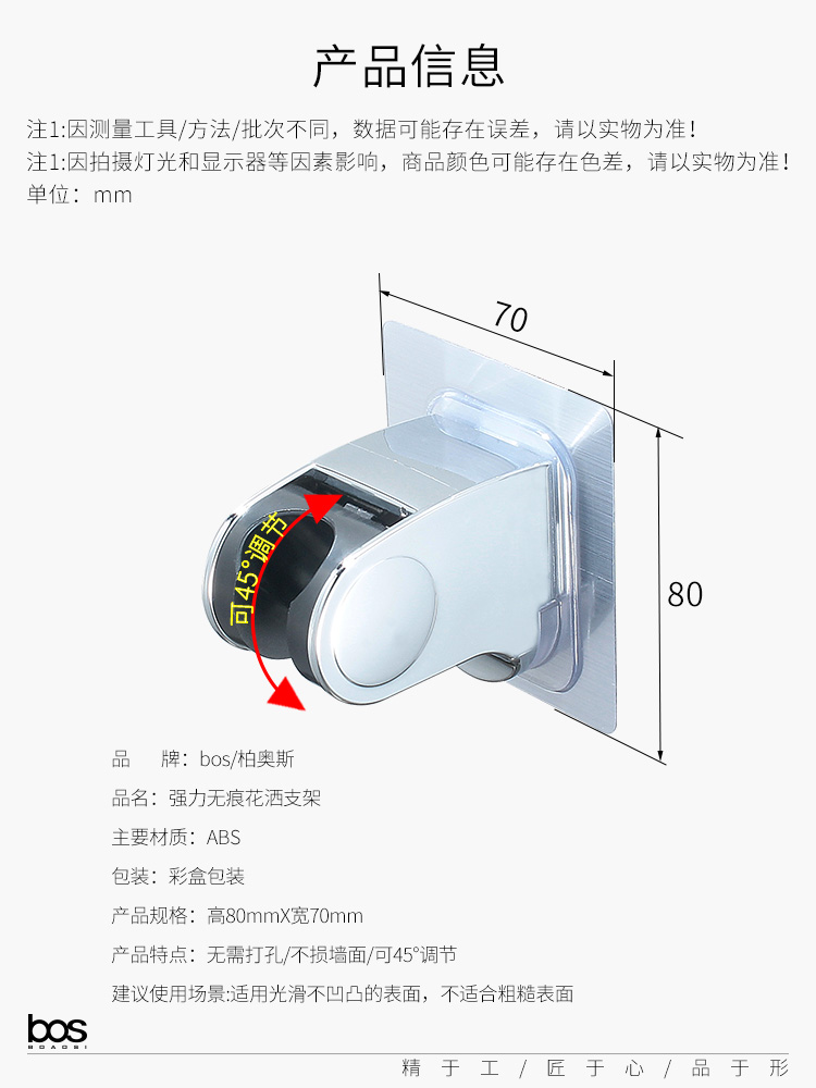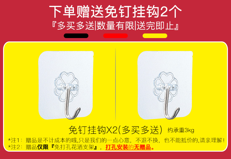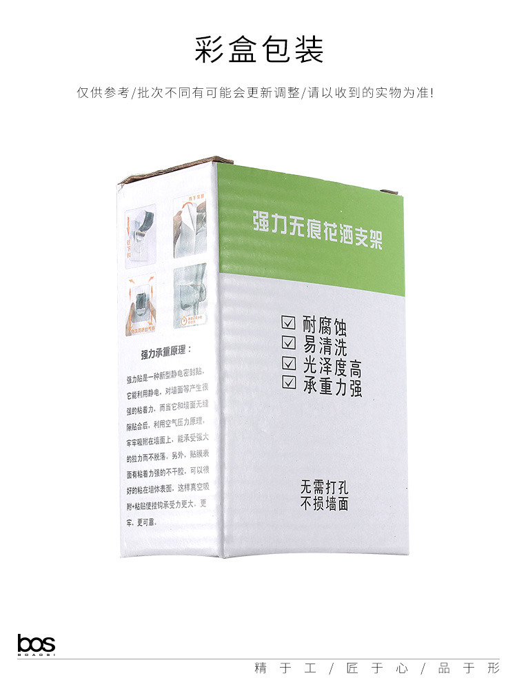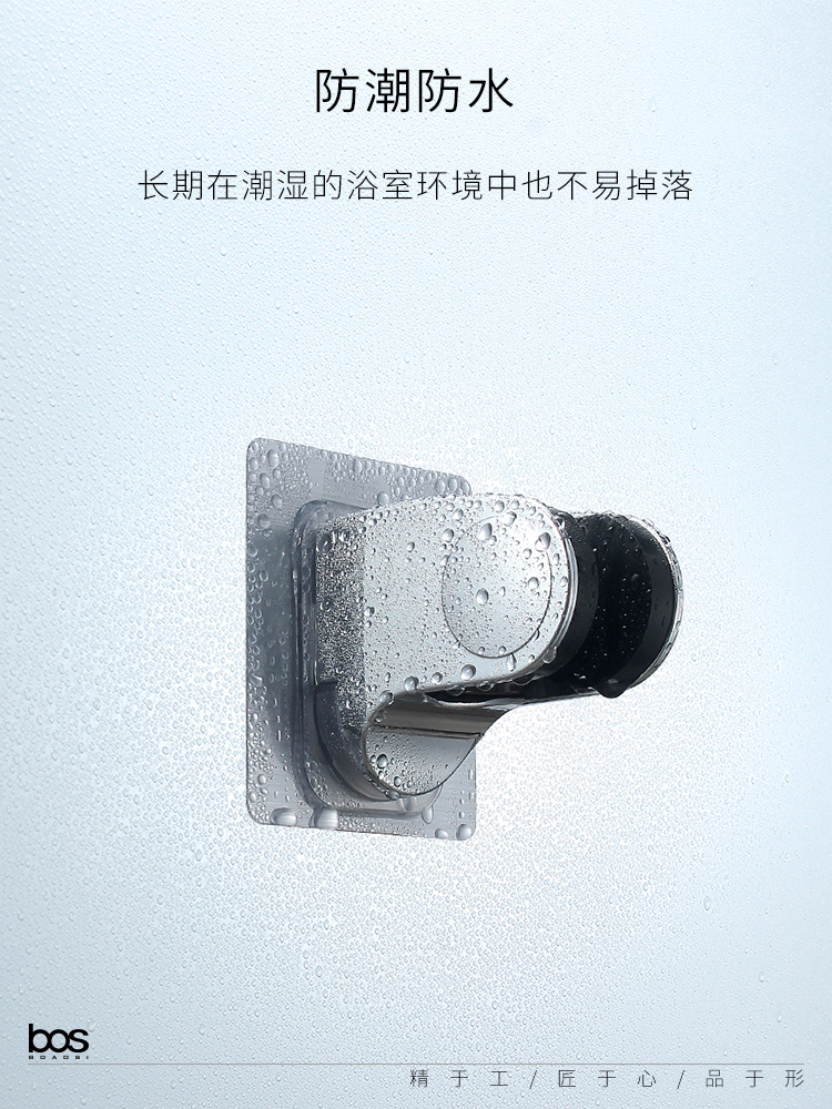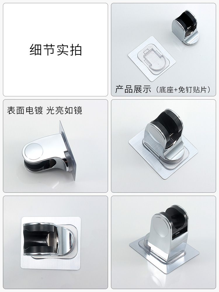 免打孔花洒支架,无需打孔,不损墙面,承重力强,防水防潮,表面电镀镜面,历久弥新,耐温易洁,畅享沐浴。