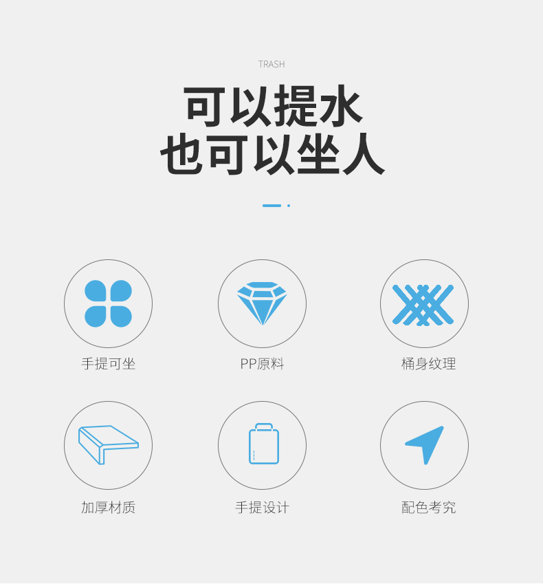 【抢新价】多功能水桶凳,居家洗澡储物皆可,便携手提,落座稳固,可承重200斤。全新PP原料制作,健康无异味。压紧式防尘盖,扣紧不掉落,密封性能好。郊游洗车钓鱼好帮手【赠运费险】