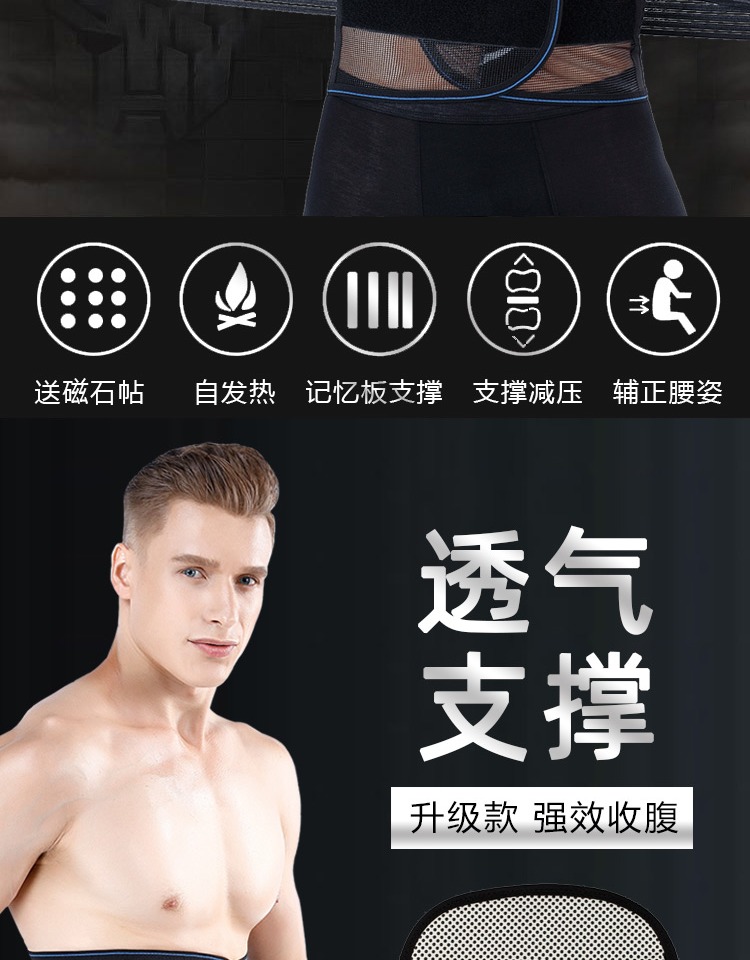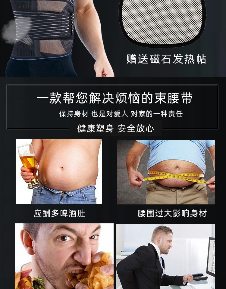 轻薄舒适透气不变形,加强无痕压力收腹束腰;强烈粘贴,自由调节,秒变型男;运动健身,一件解决你的塑身难题,男女四季通用!