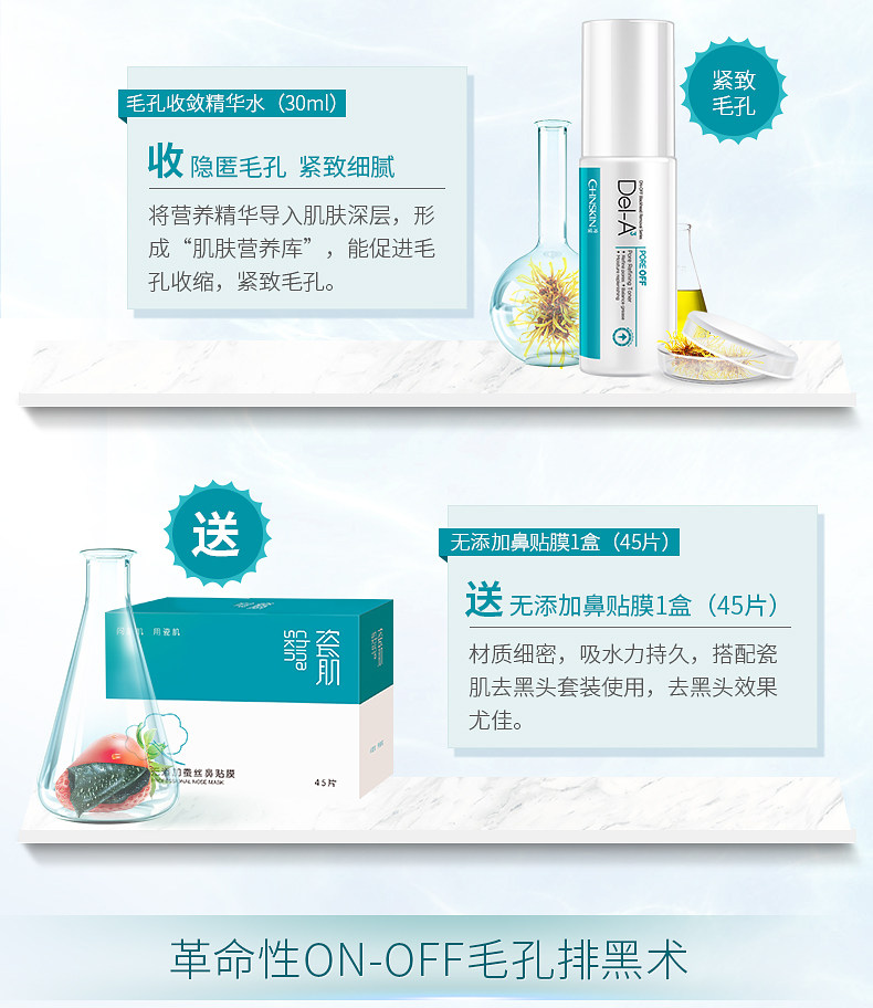 热销10w件!【内含黑头导出液,收敛精华水,无添加鼻贴膜一盒】深吸黑头,精致毛孔,远离尴尬,一套瓷肌搞定!【赠运费险】