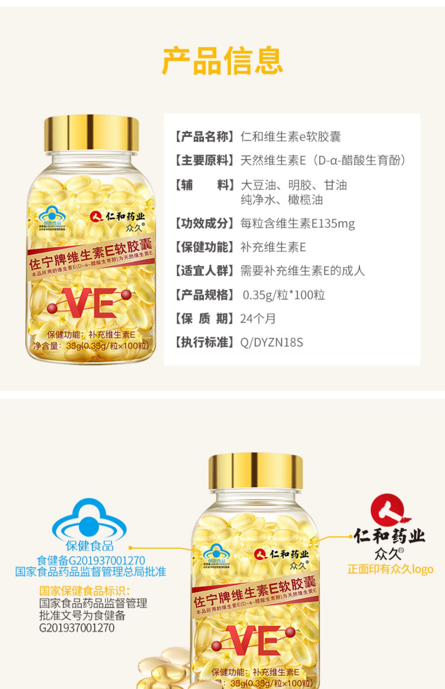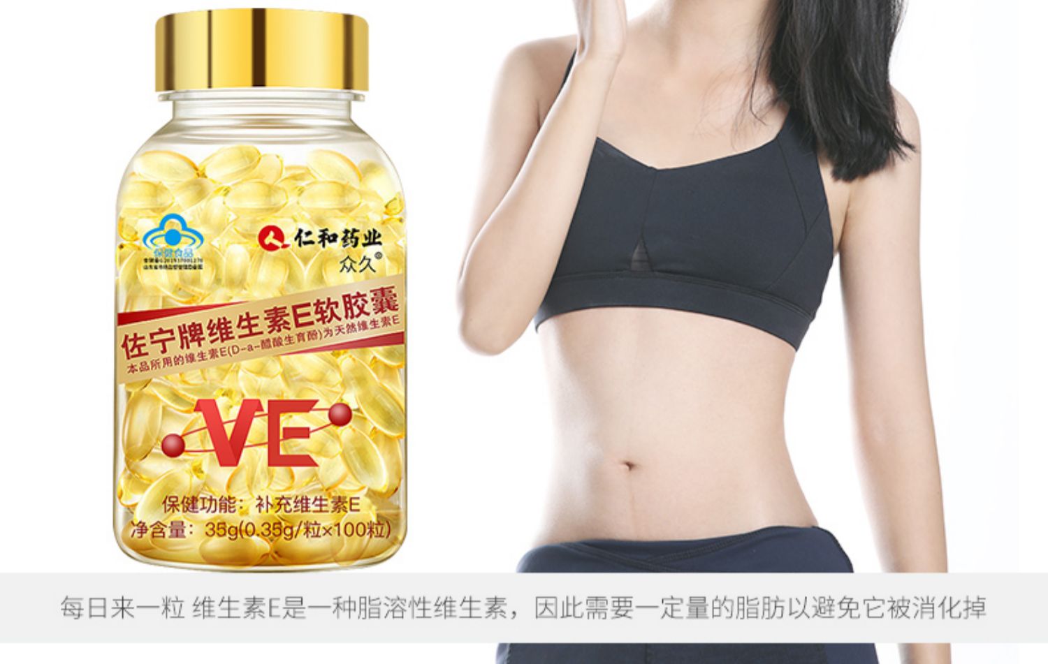 仙女们,吃了让你变得更迷人的维生素E软胶囊哇!仁和品牌,蓝帽子认证!高含量VE,内服1粒,外敷1粒,有抗氧化,美容养颜,美白淡斑等效果,每天2粒,让你青春永驻!