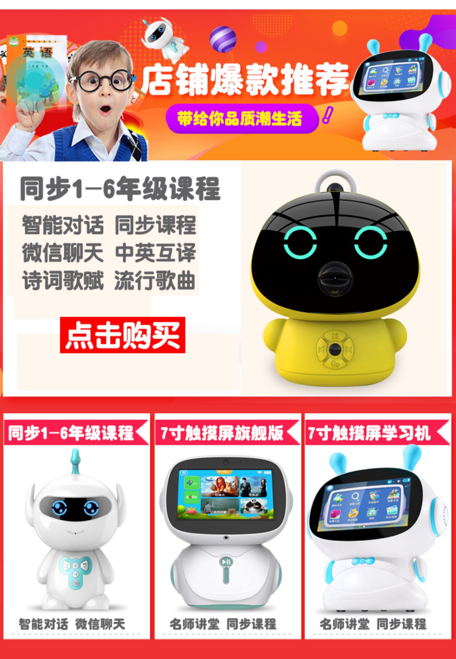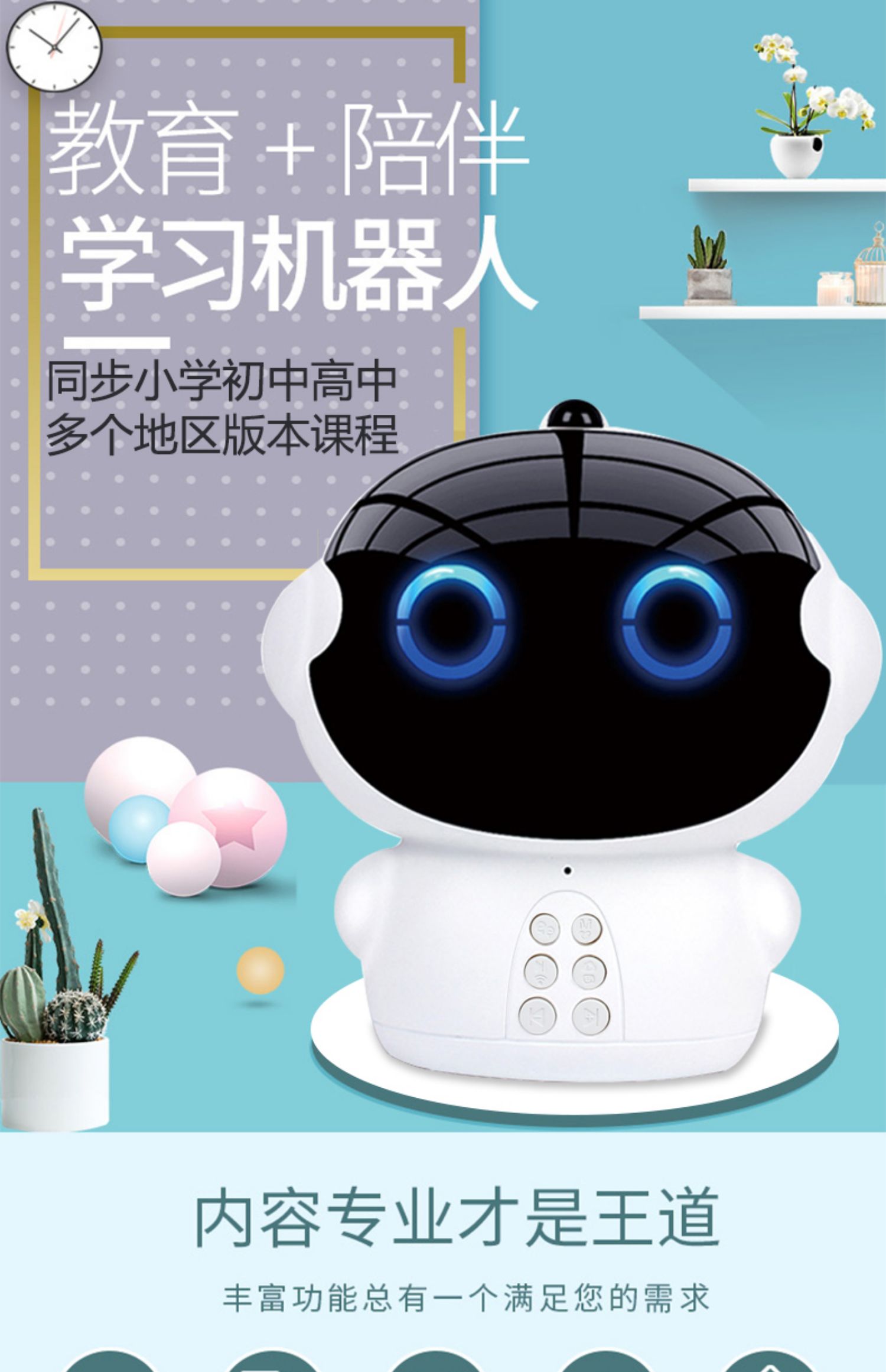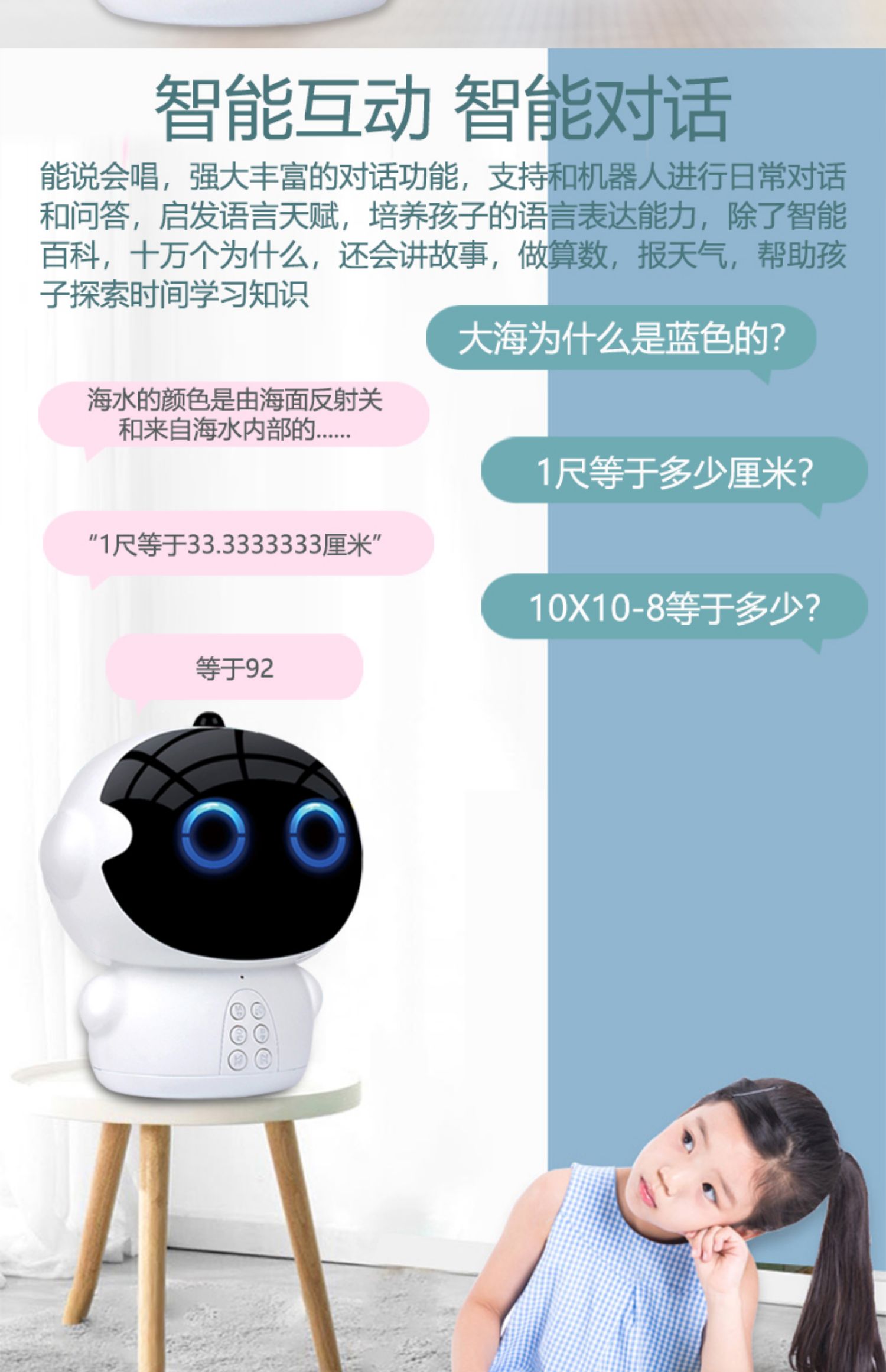 【热销二十万台】智能网红机器人反场!AI升级版专利,精选环保ABS材质,耐磨耐摔,智能陪伴,算术解答,百科故事,英语翻译,丰富早教内容,高保真纯正音质,同步小学1-6年课程,做孩子的辅导老师。