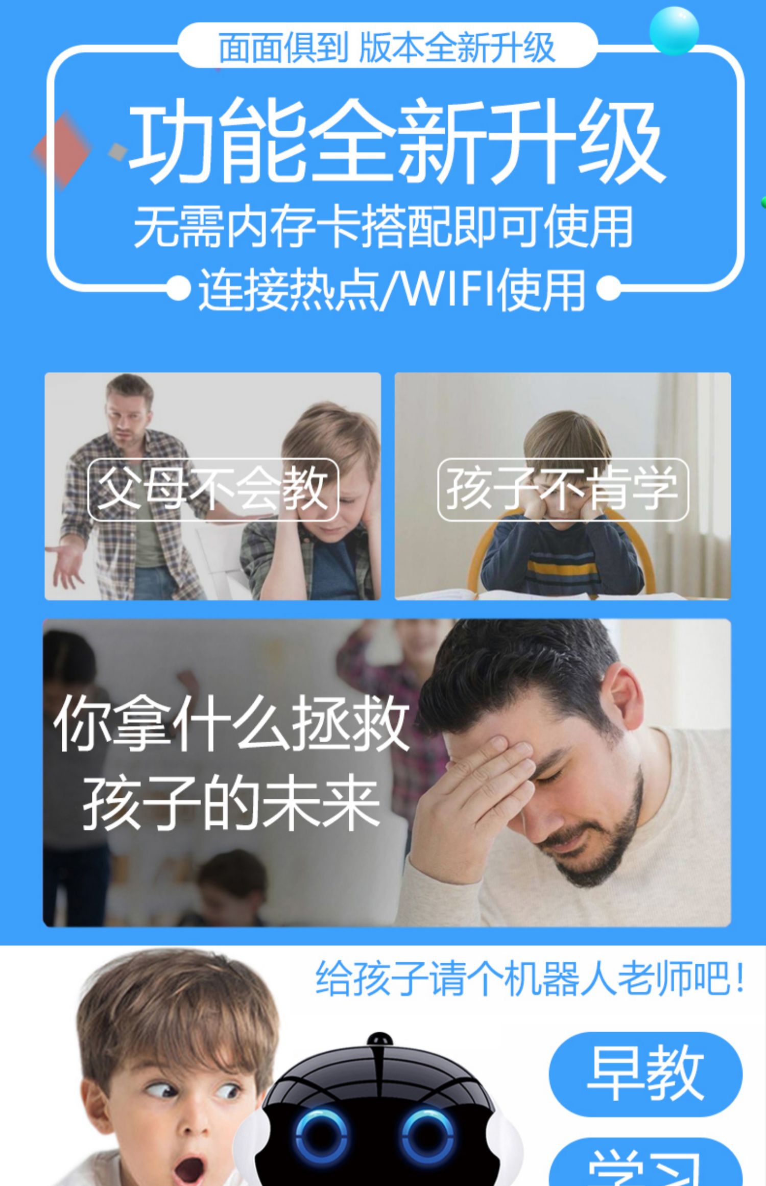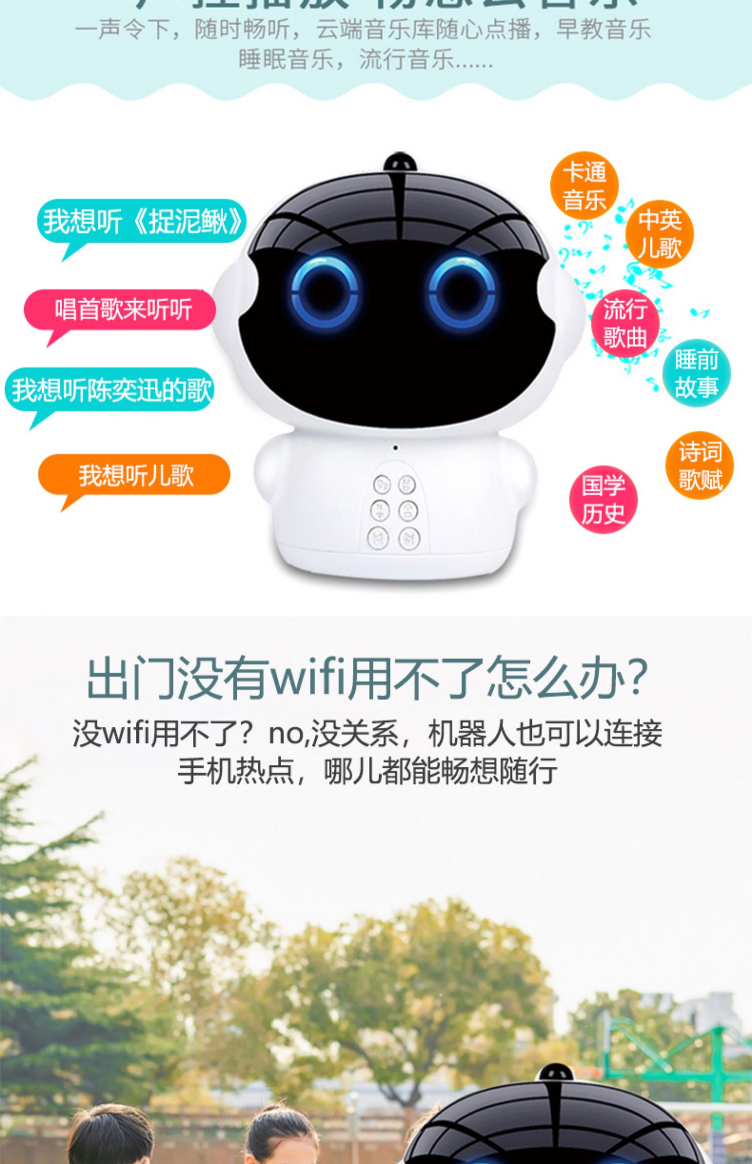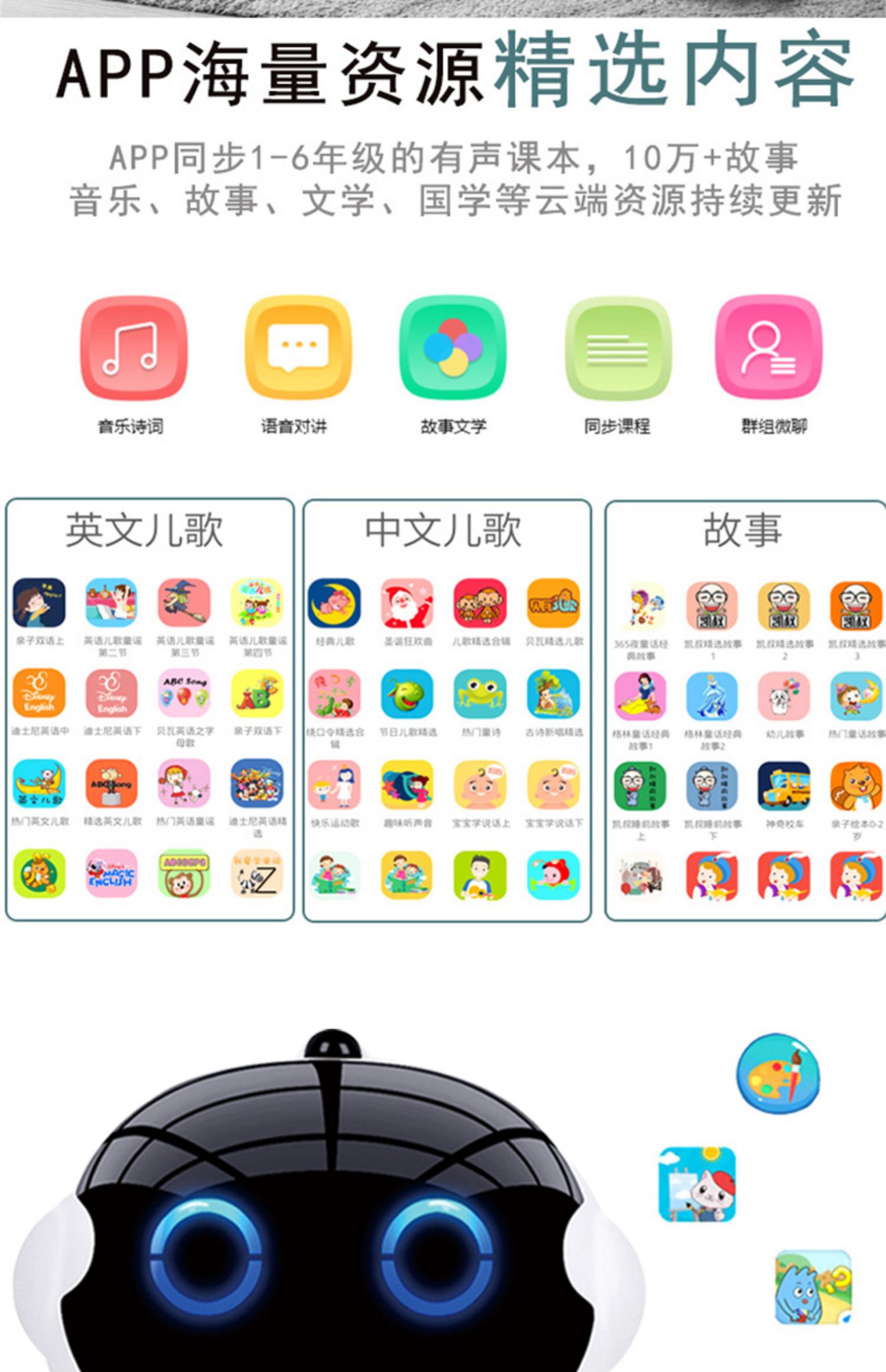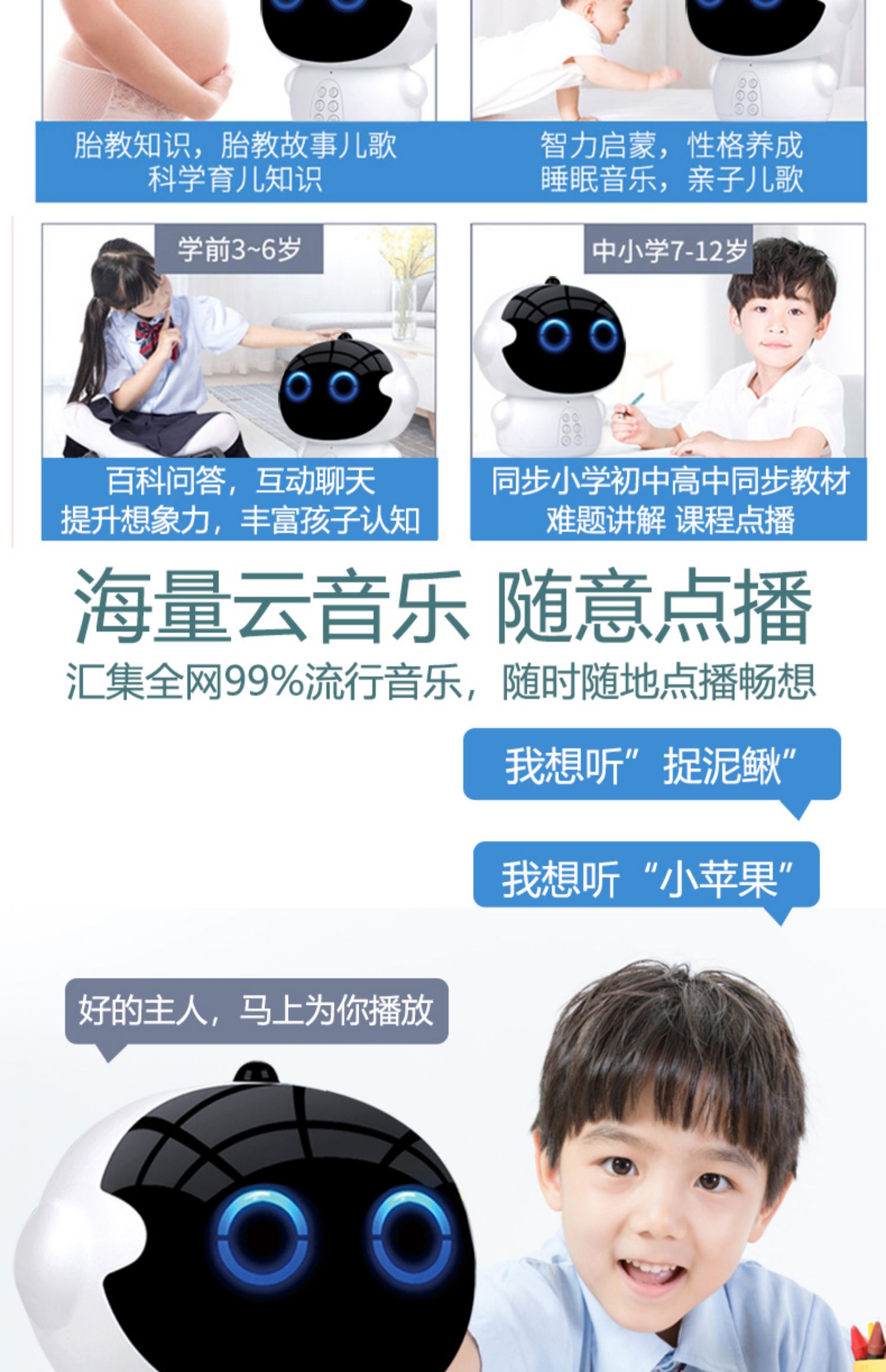 【热销二十万台】智能网红机器人反场!AI升级版专利,精选环保ABS材质,耐磨耐摔,智能陪伴,算术解答,百科故事,英语翻译,丰富早教内容,高保真纯正音质,同步小学1-6年课程,做孩子的辅导老师。