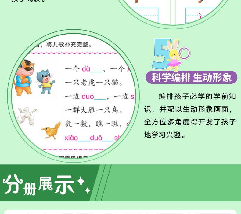 幼升小必备,数学+拼音+识字练习册,彩色版,精美插图,由易到难,名师点评,循序渐进,多元智能,轻松掌握,让孩子赢在起跑线!