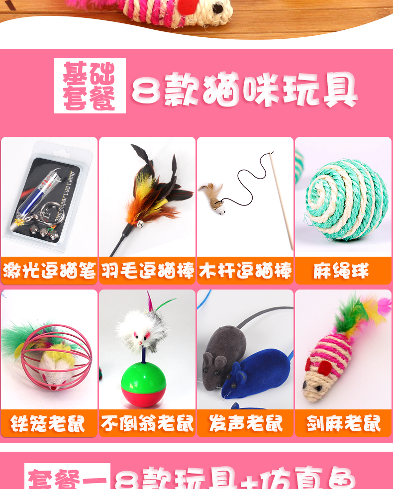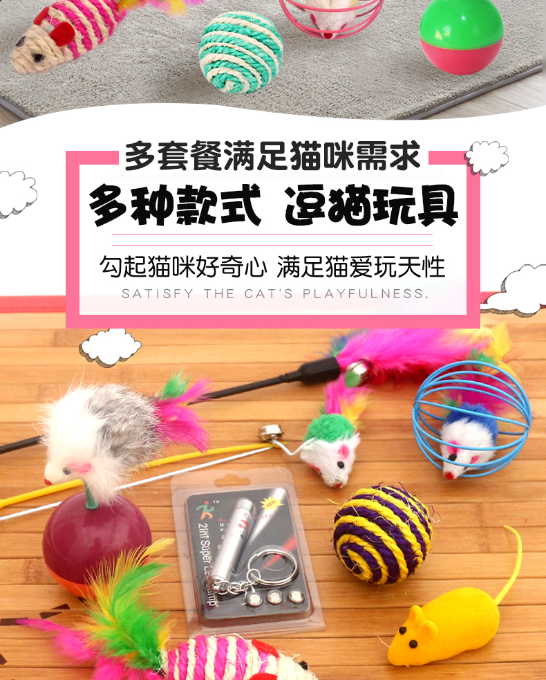 宠物猫咪玩具,四件套、六件套、八件套、九件套,内含逗猫棒,薄荷鱼,老鼠,不倒翁,绳球等等,每天不重样,天天好心情!宠物用品。