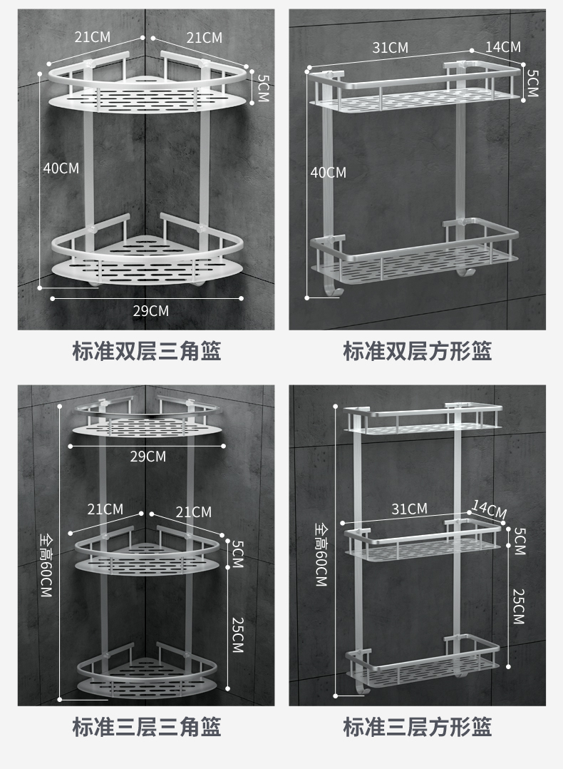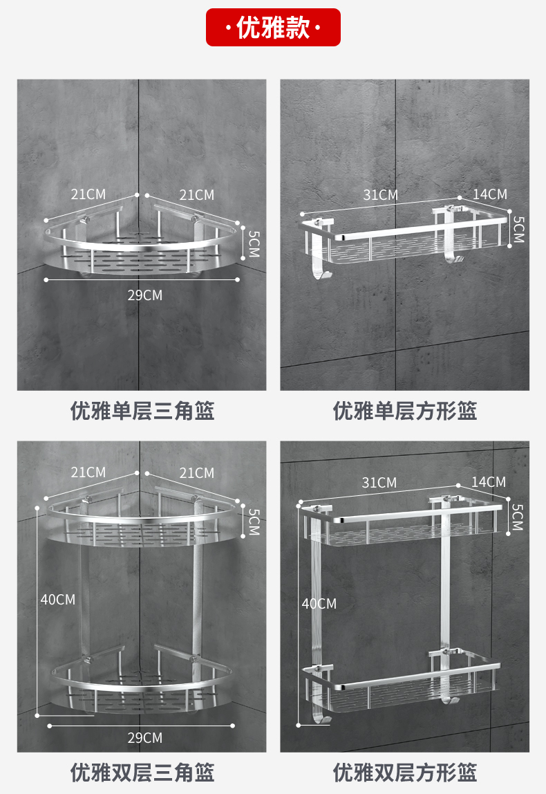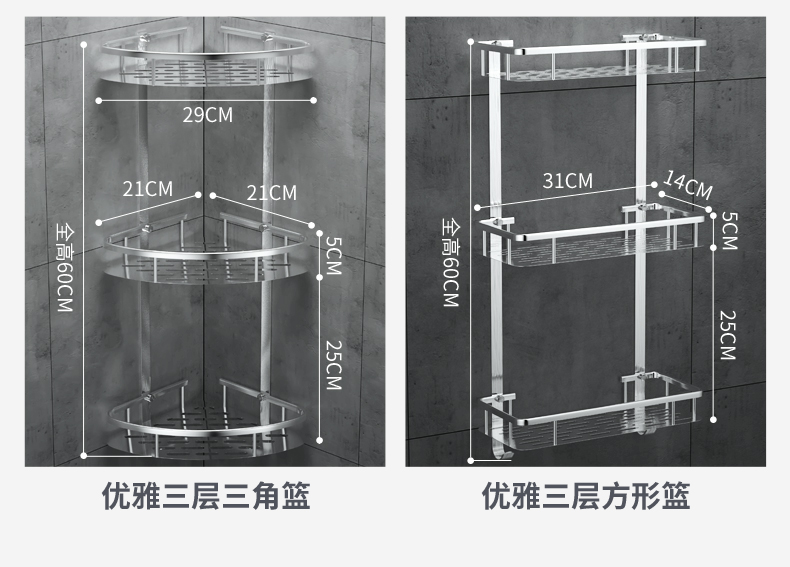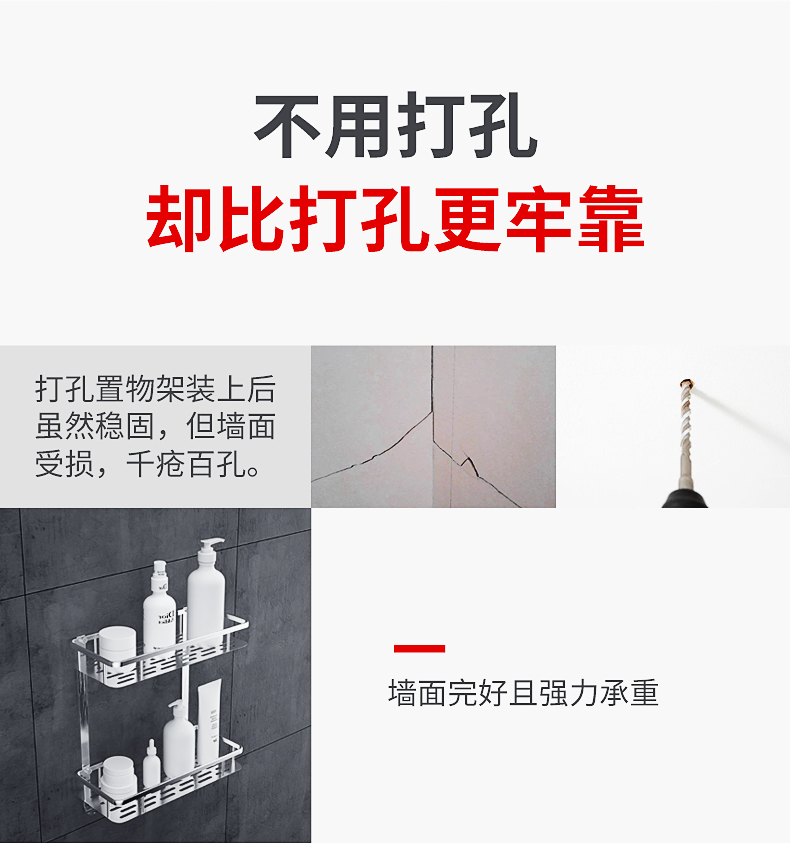 家居必备~实心加厚,承重强,抗腐蚀,优质不锈钢,耐用不生锈,免打孔,解决浴室杂乱,轻松hold住50斤的重量,适用各种墙面,安装简单!【赠运费险】