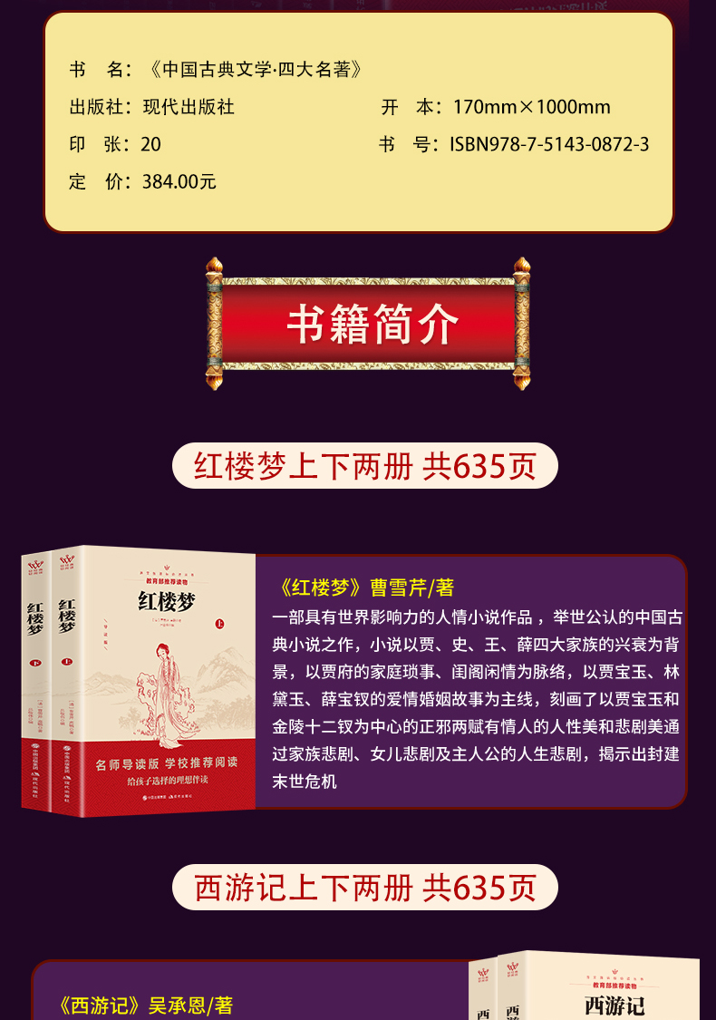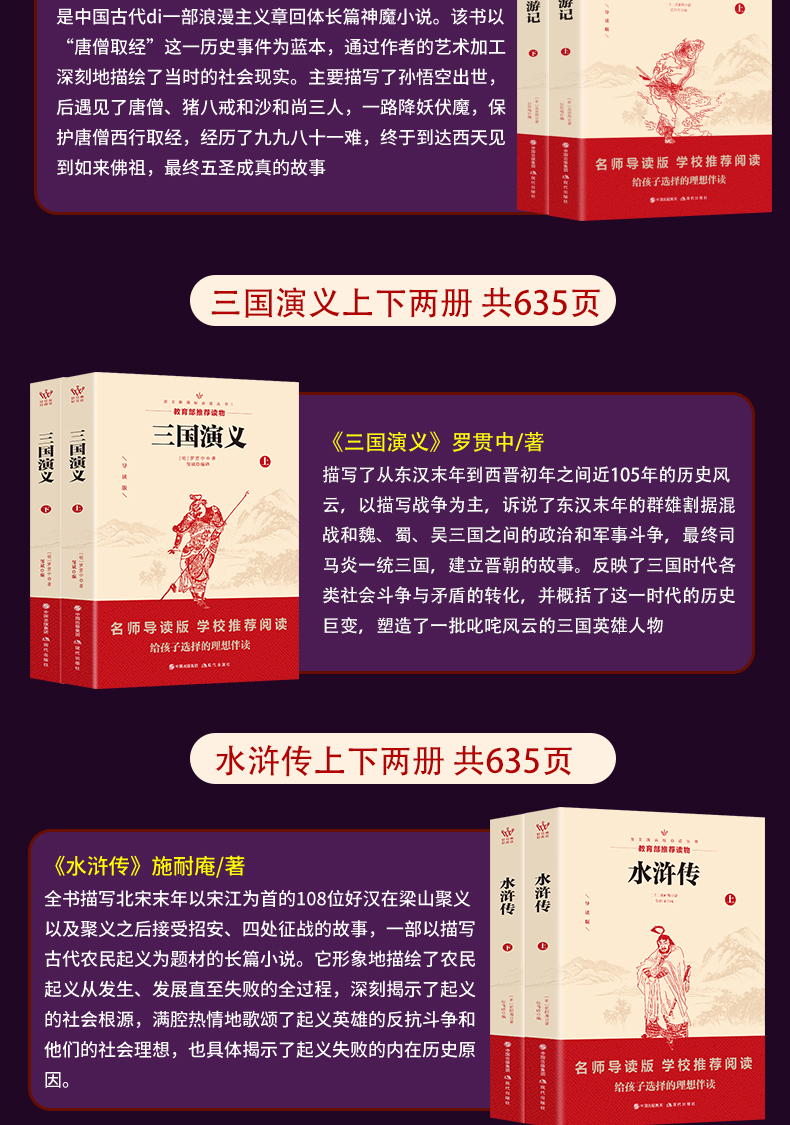 【四大名著四套共八本!】每套完整635页!教育部指定,学校推荐,经典文学名著,名师导读,增长文学知识,提高文学修养,这个暑假,孩子的理想伴读!