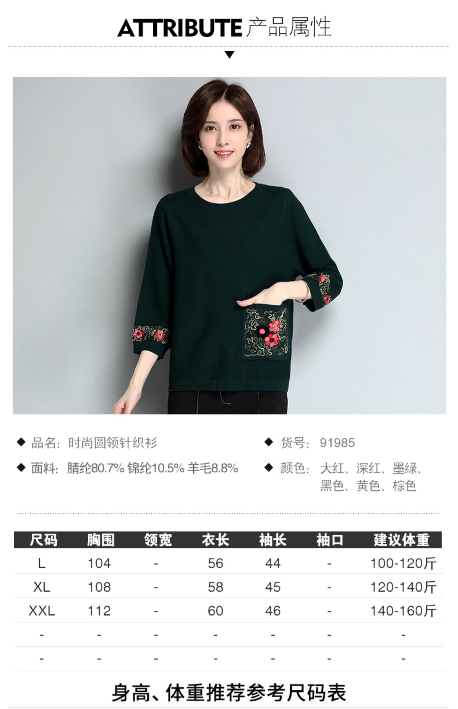 【线下品牌,A类产品】时尚百搭针织衫,360度立体剪裁,遮肉显瘦,灯笼袖设计,精美绣花,时尚洋气款式,优质面料,高弹力不变形,细腻柔软,高品质,好色彩,让生活更出彩!【赠运费险】