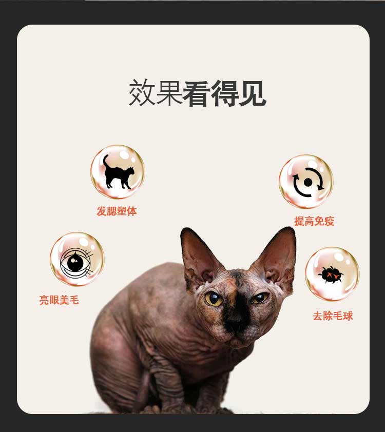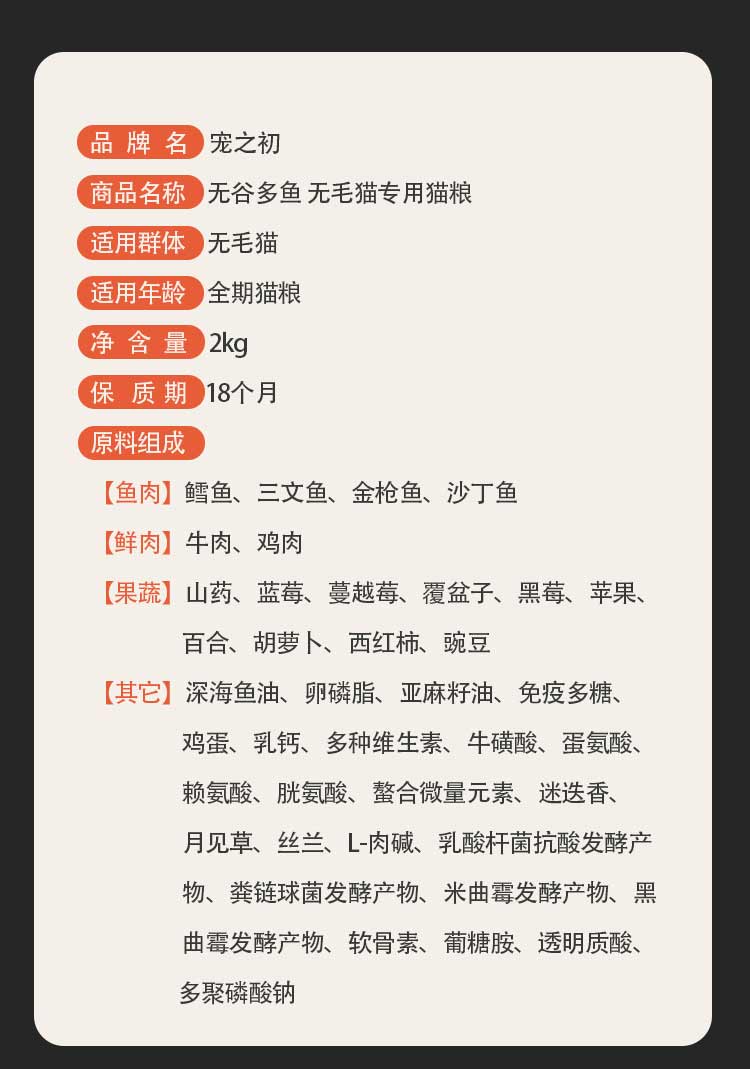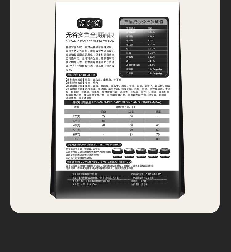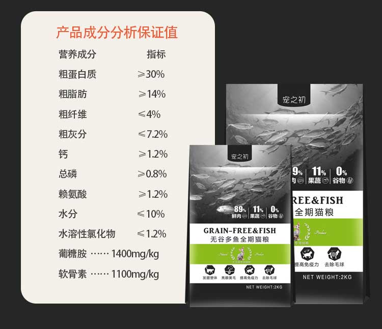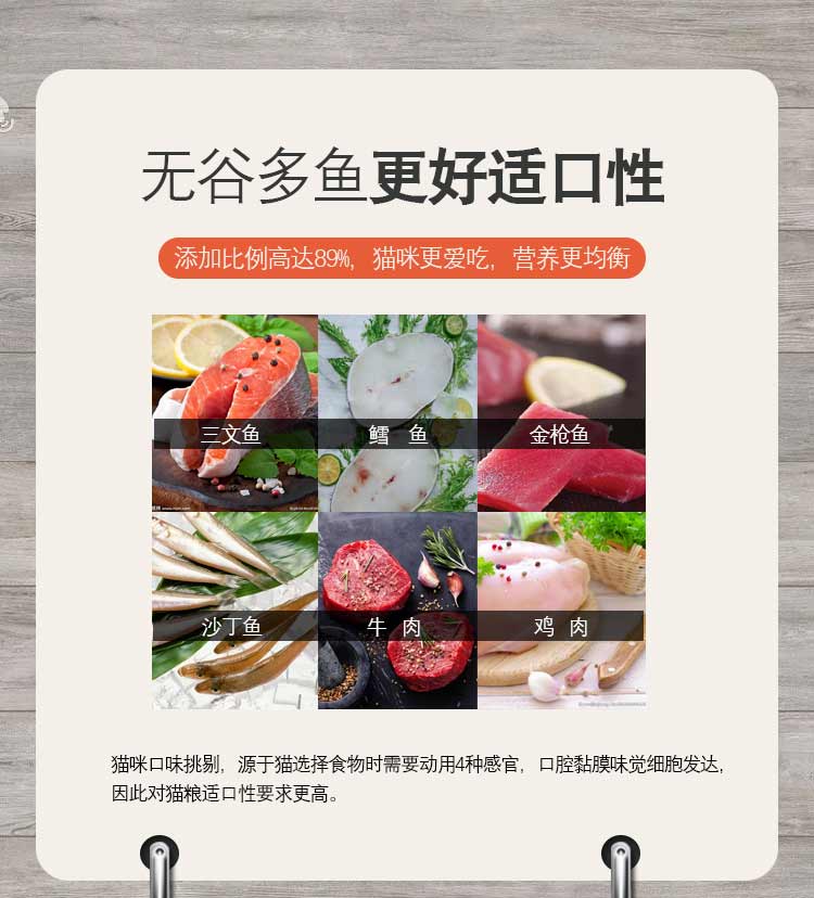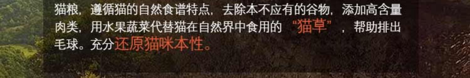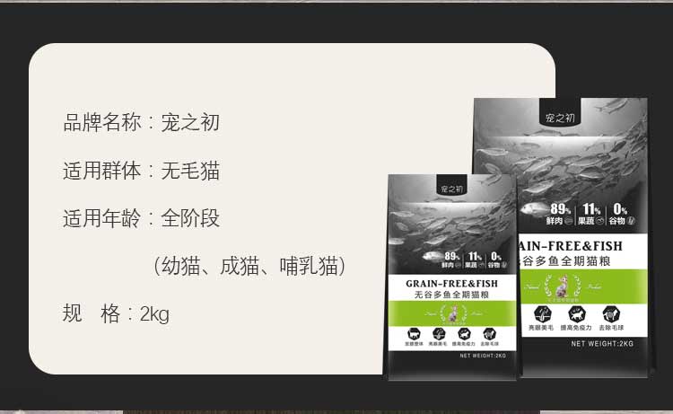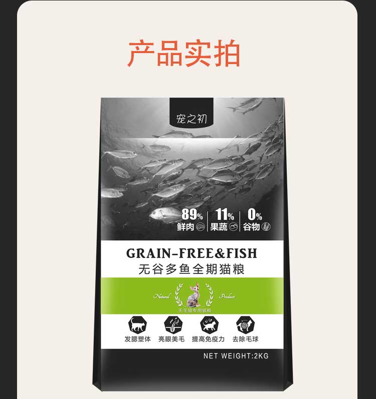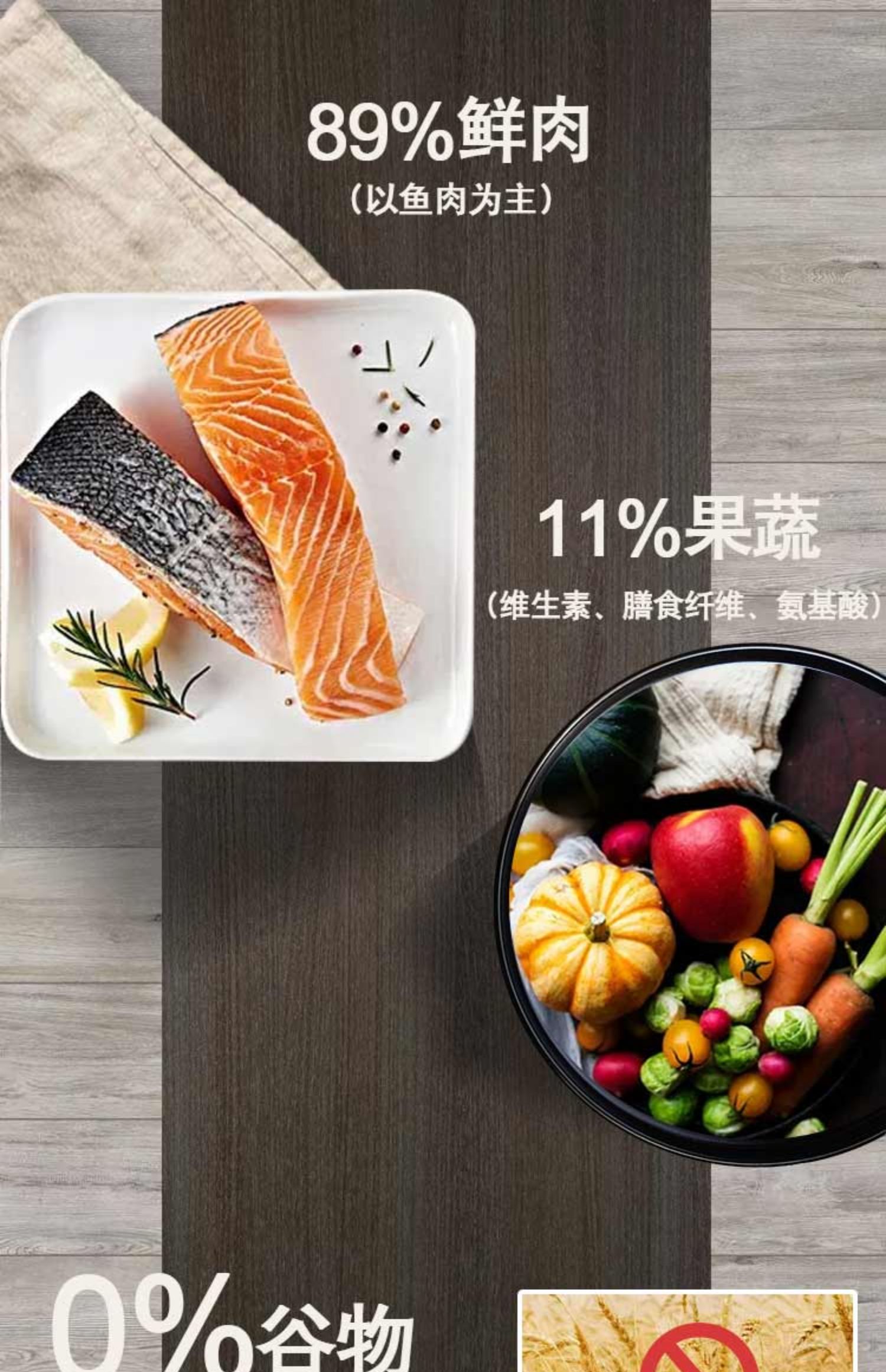 无谷多鱼,更好适口性,更易吸收。89%鲜肉,11%果蔬,0%谷物。猫咪专属小颗粒,真正的全期猫粮。发腮塑体,提高免疫,亮眼美毛,去除毛球!