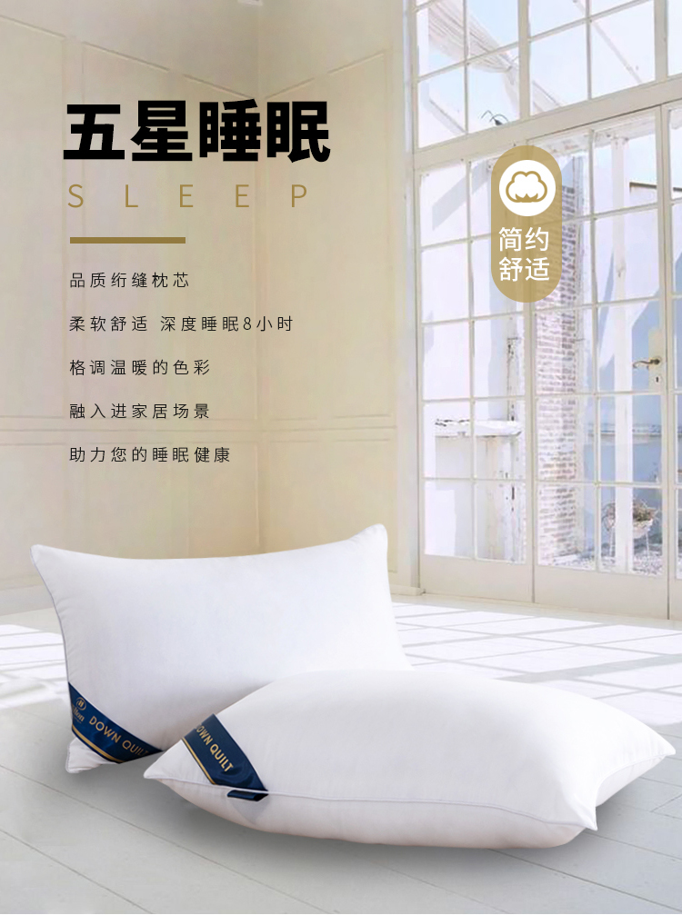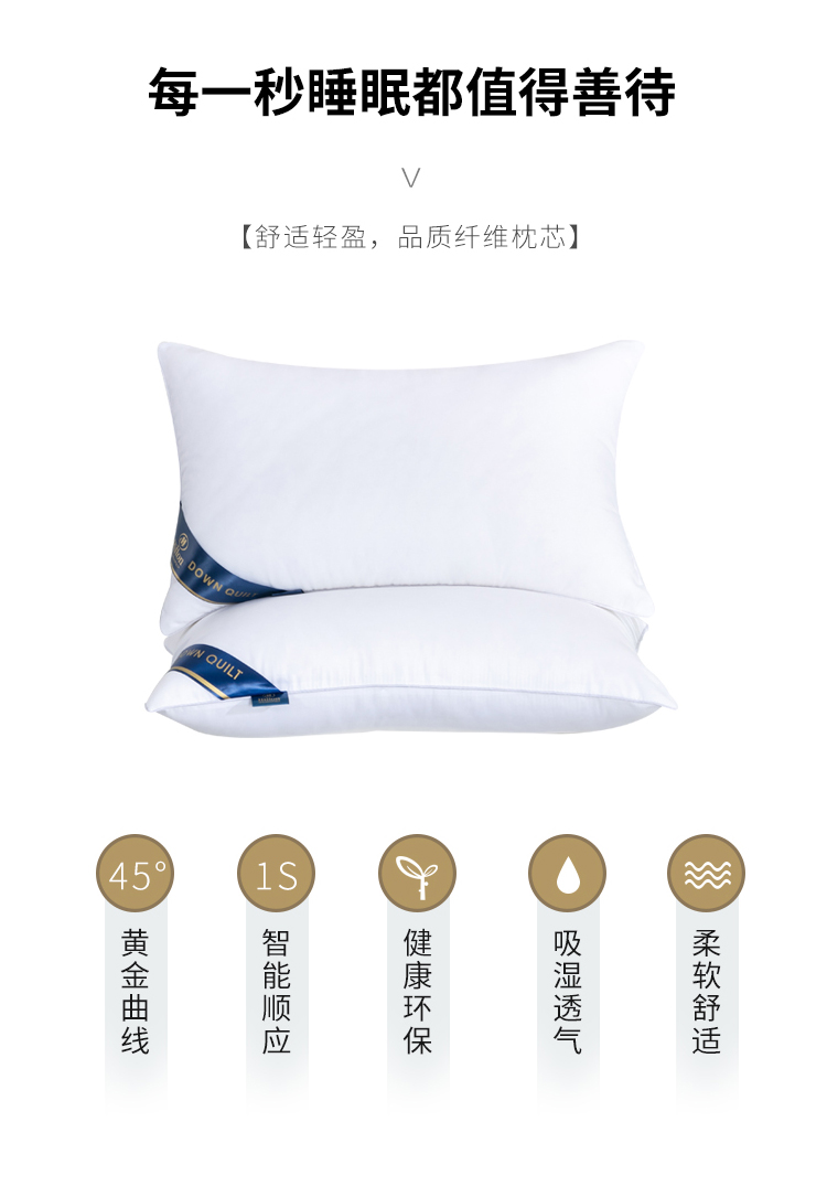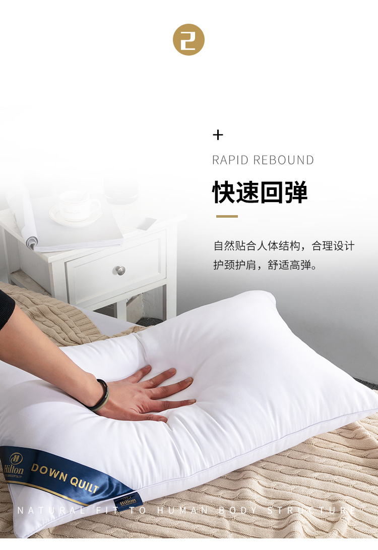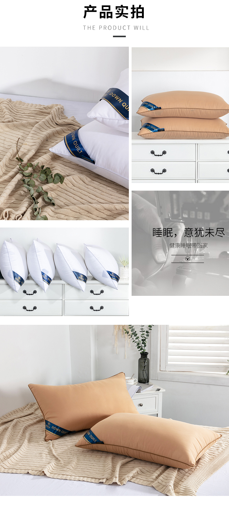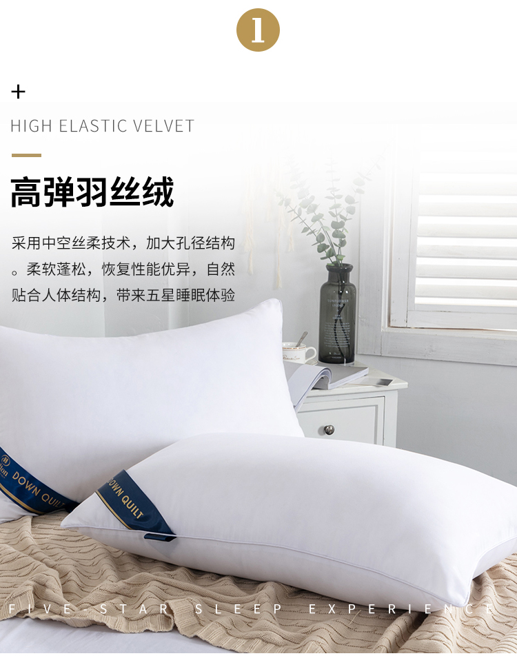 酒店总统套房专用款羽绒枕头,进口羽丝绒,护颈亲肤舒适,按压回弹不变形,甄选纯面料,亲肤,透气排汗吸湿,三层立体填充,蓬松柔软,贴合颈部曲线,舒服护颈,提高睡眠质量【赠运费险】