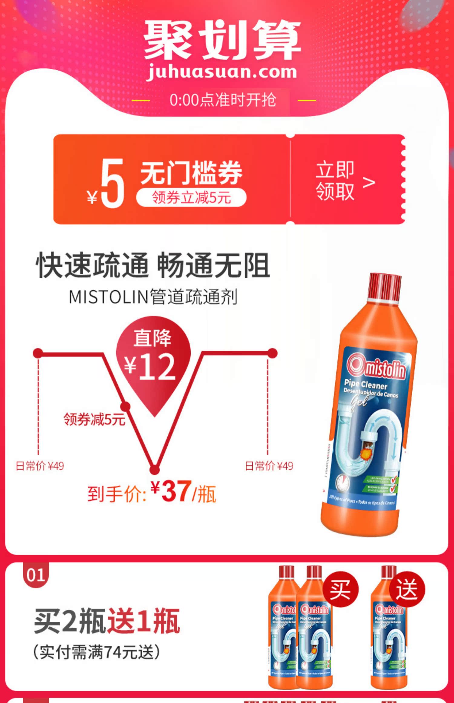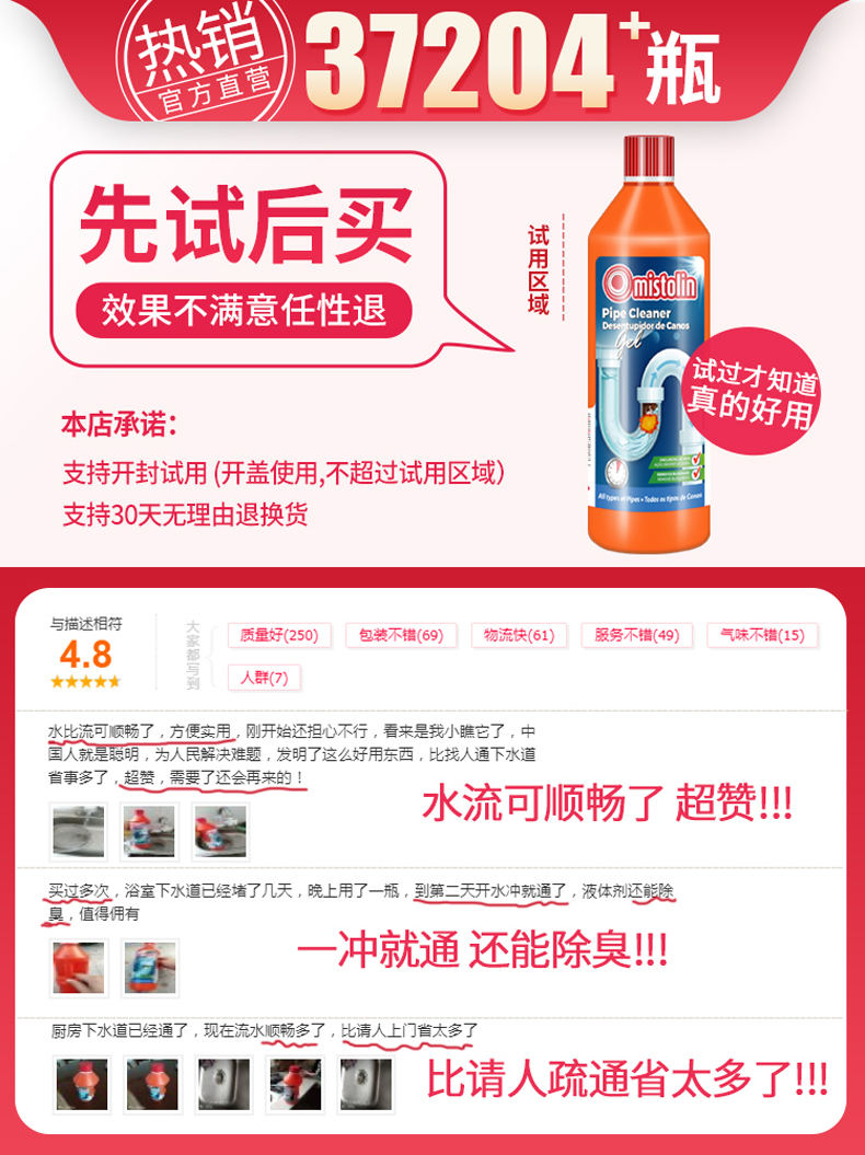 欧洲原装进口,1000ML大容量,有了它,管道从此不再堵塞了。亏本冲量,券后22元,超市里均有销售,线下随便一瓶都要好几十元。