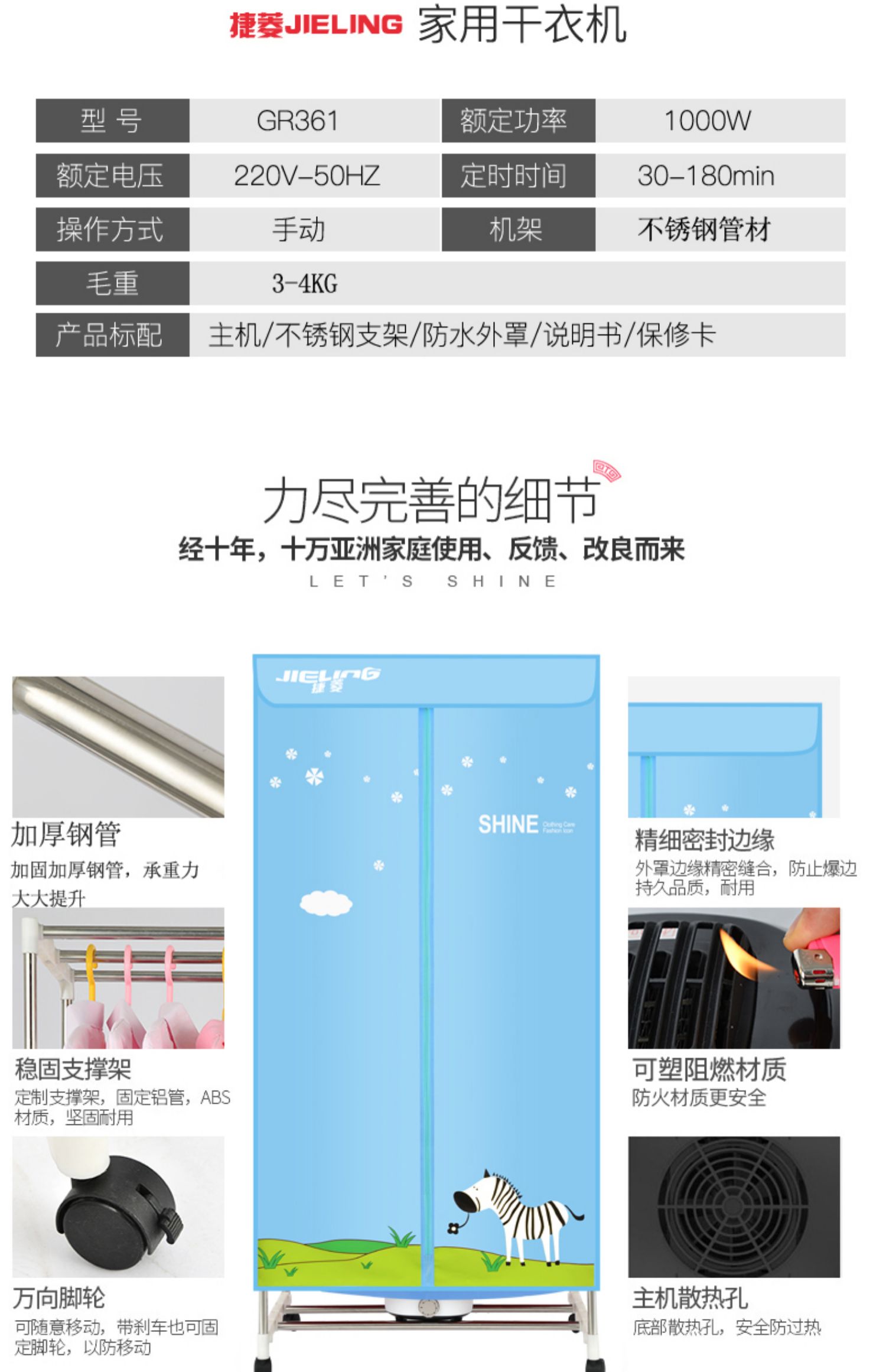 【三年坏了,免费换新】1000W大功率快干,即干即穿,不锈钢管材坚固耐用,双层加大空间,15公斤承重,恒温不伤衣,安装简单一机多用,雨水天气多,还你阳光让你每天好心情【赠运费险】